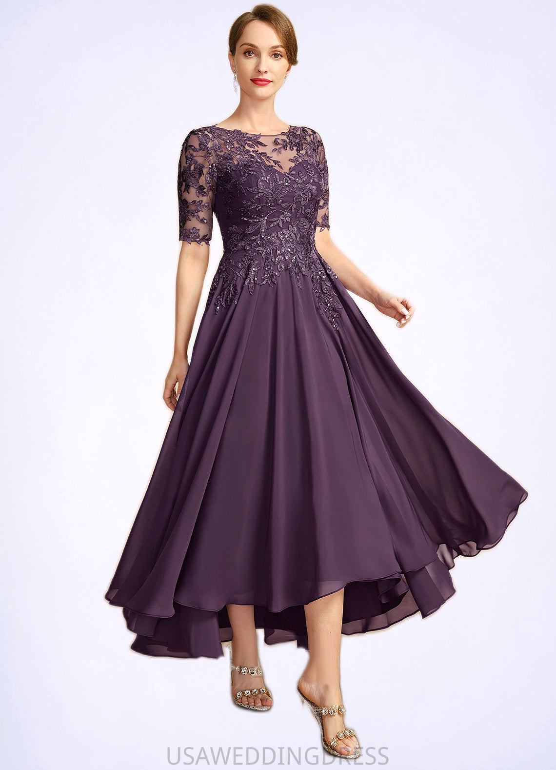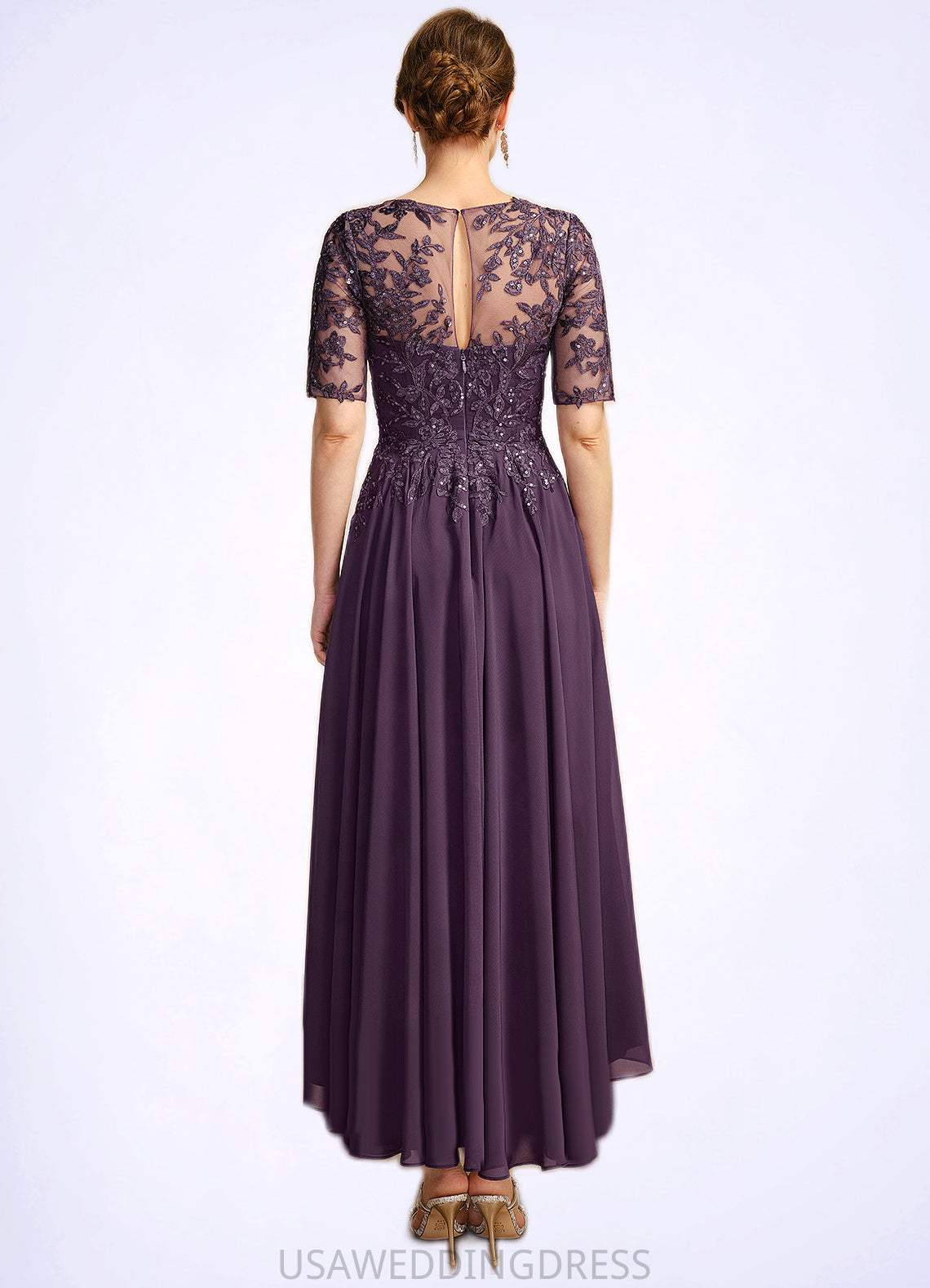 Marilyn A-line Scoop Illusion Asymmetrical Chiffon Lace Mother of the Bride Dress With Sequins DS126P0021630