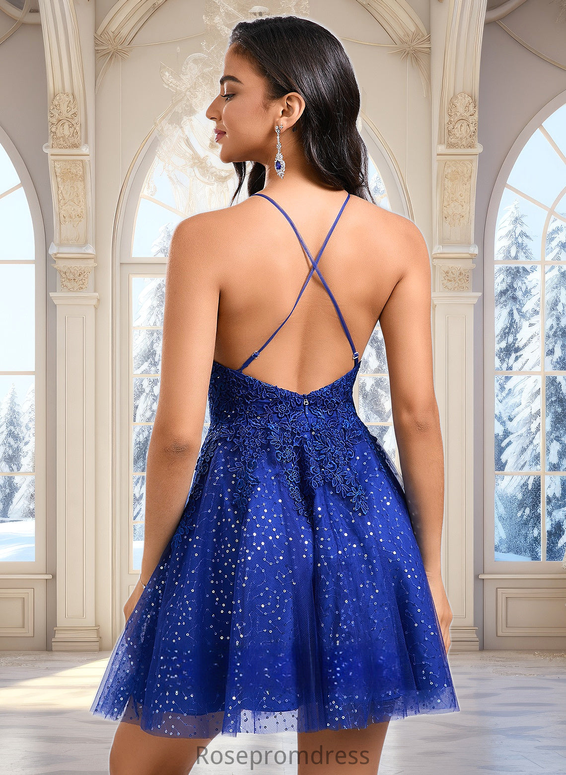 Marin A-line Scoop Short Tulle Lace Homecoming Dress With Sequins DSP0025688