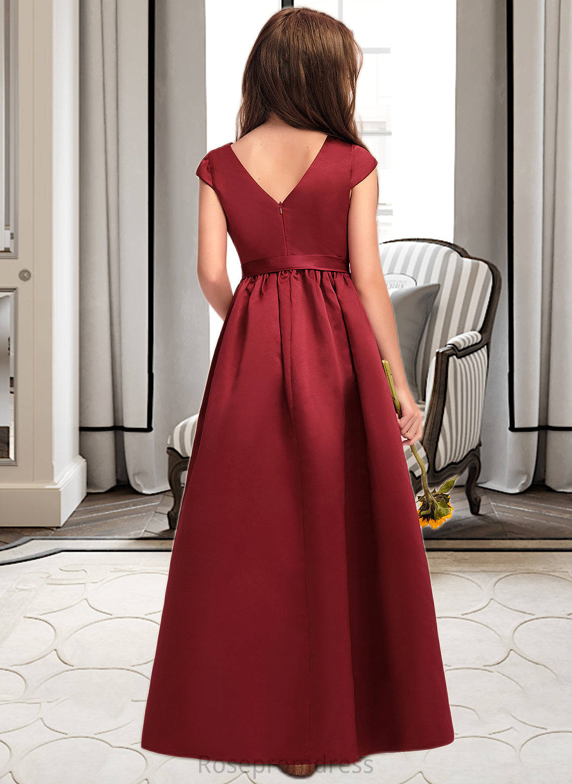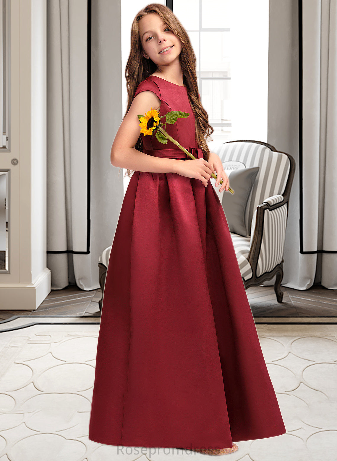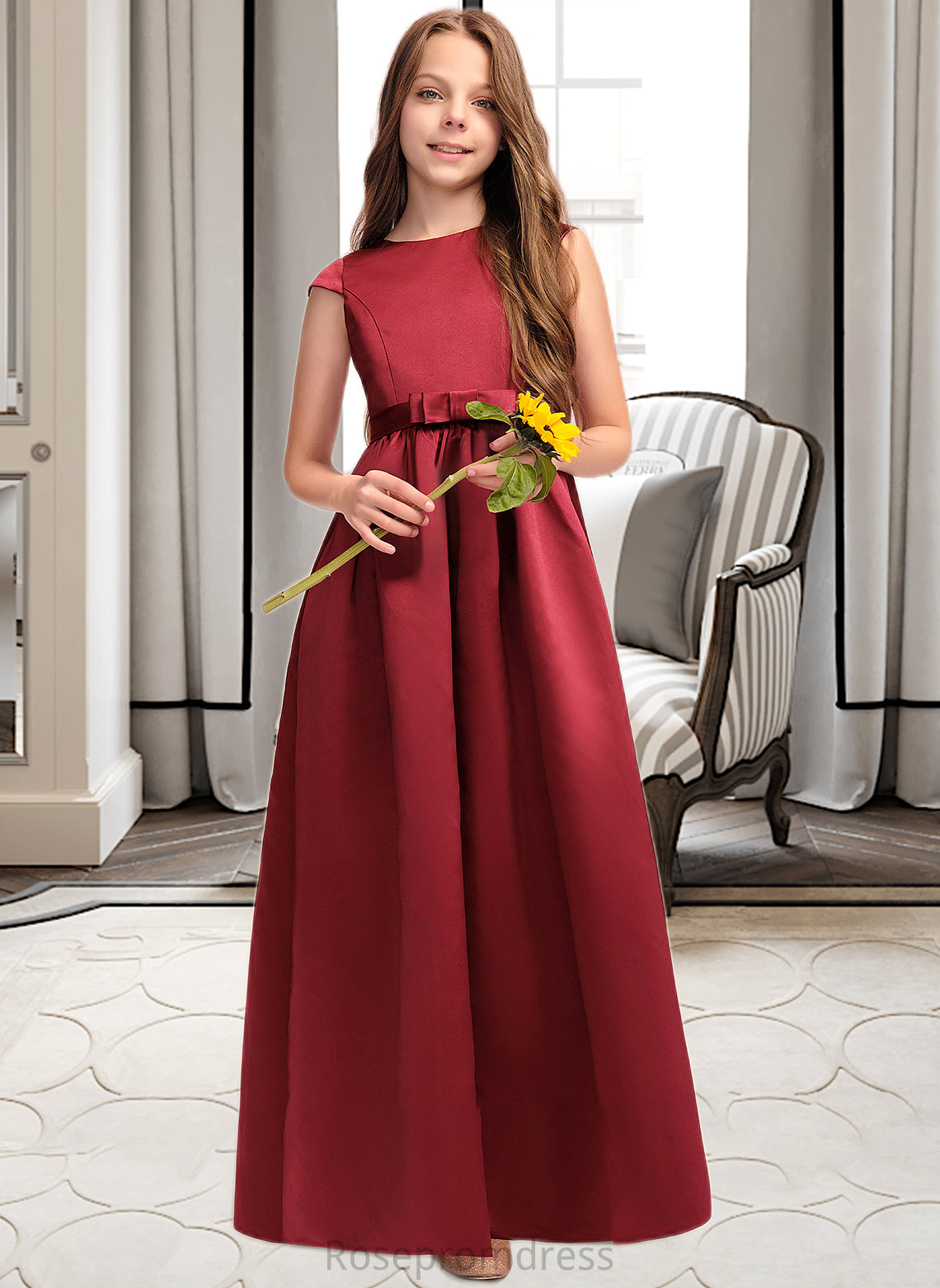 Marisa A-Line Scoop Neck Floor-Length Satin Junior Bridesmaid Dress With Bow(s) Pockets SRSP0013391