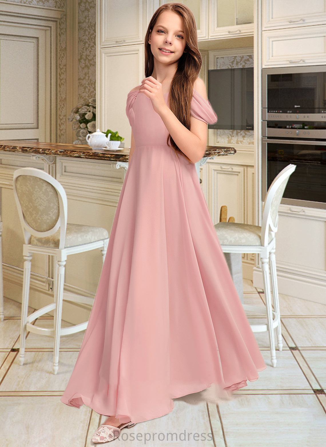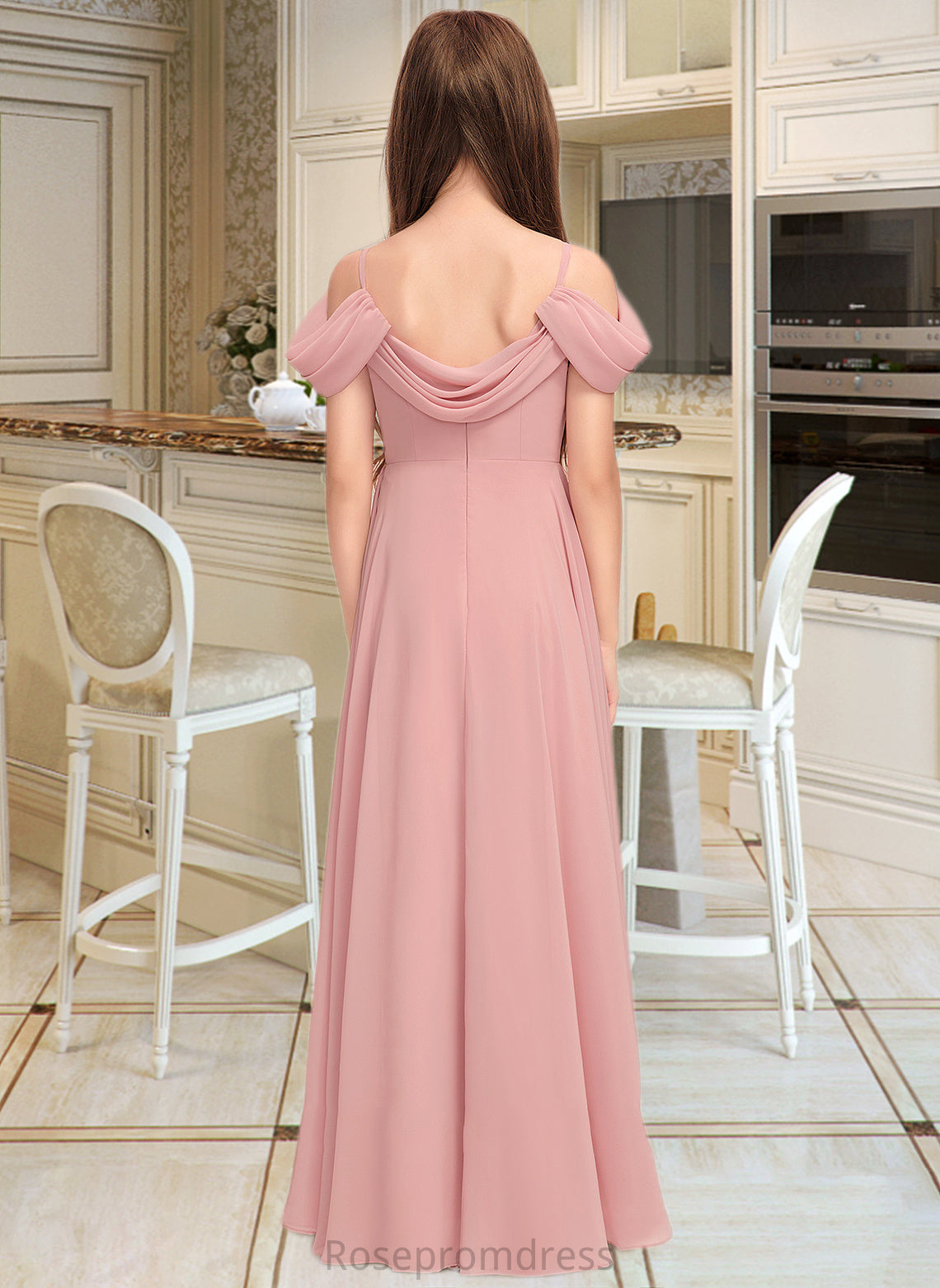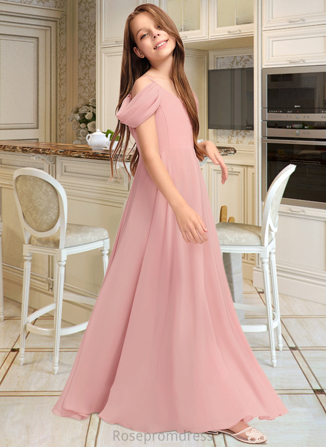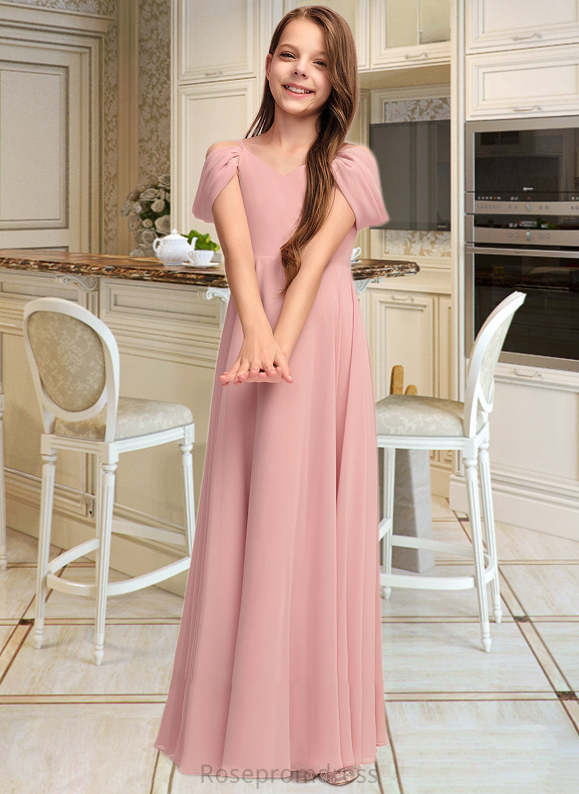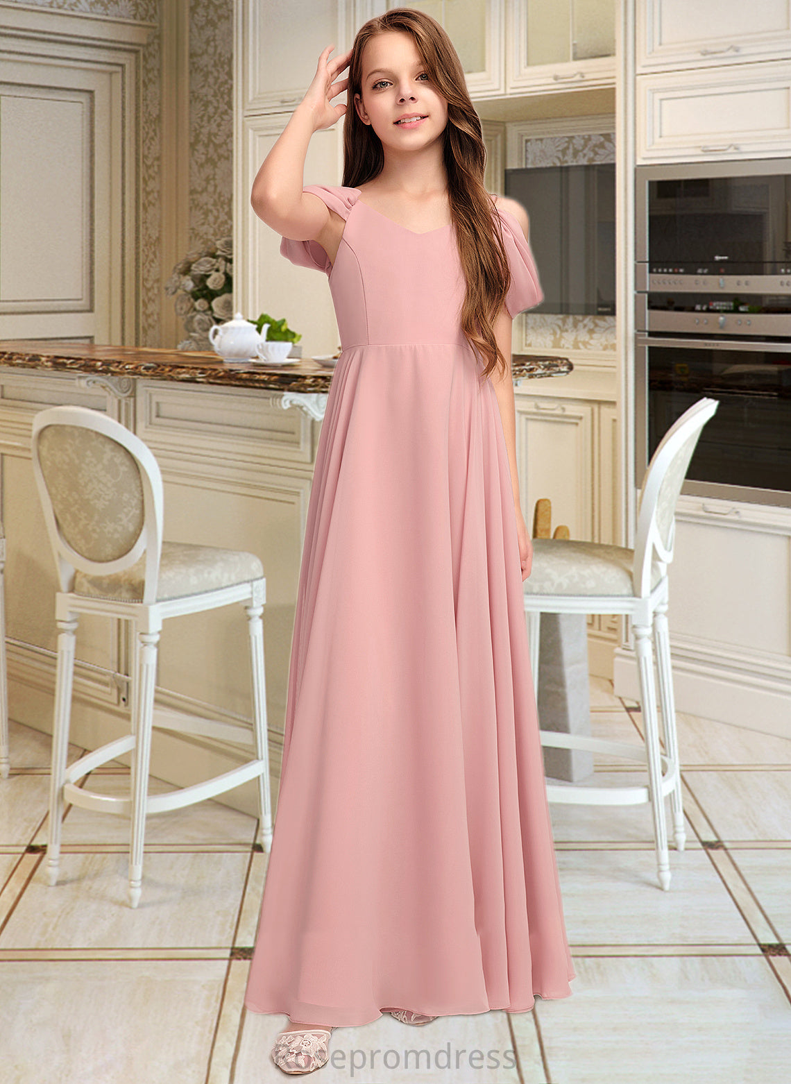 Marisol A-Line V-neck Floor-Length Chiffon Junior Bridesmaid Dress With Ruffle SRSP0013437