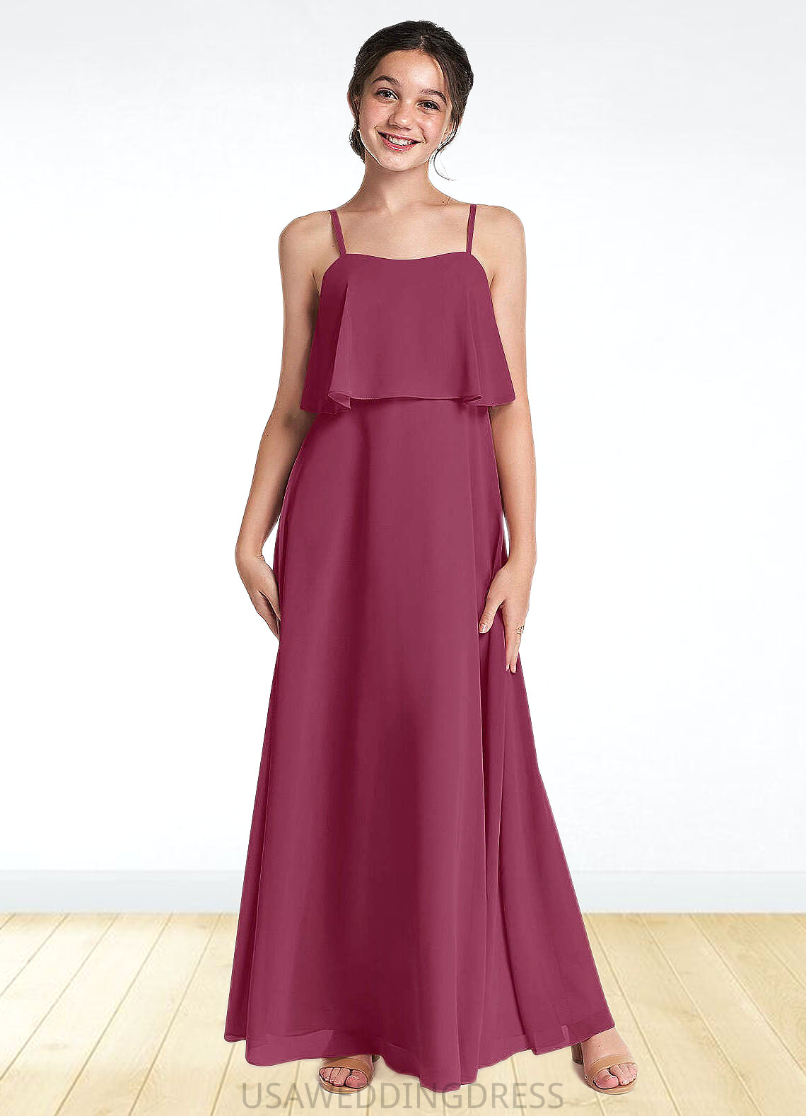 Maritza A-Line Ruched Chiffon Floor-Length Junior Bridesmaid Dress Mulberry DSP0022874