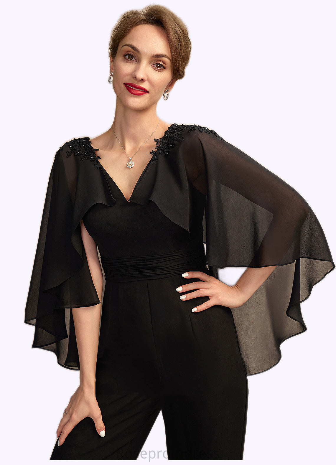 Marlee Jumpsuit/Pantsuit V-neck Floor-Length Chiffon Mother of the Bride Dress With Ruffle Beading Appliques Lace Sequins SRS126P0015033
