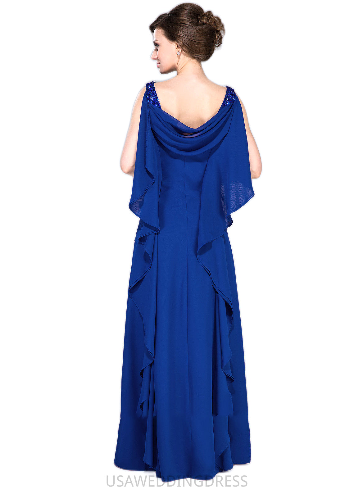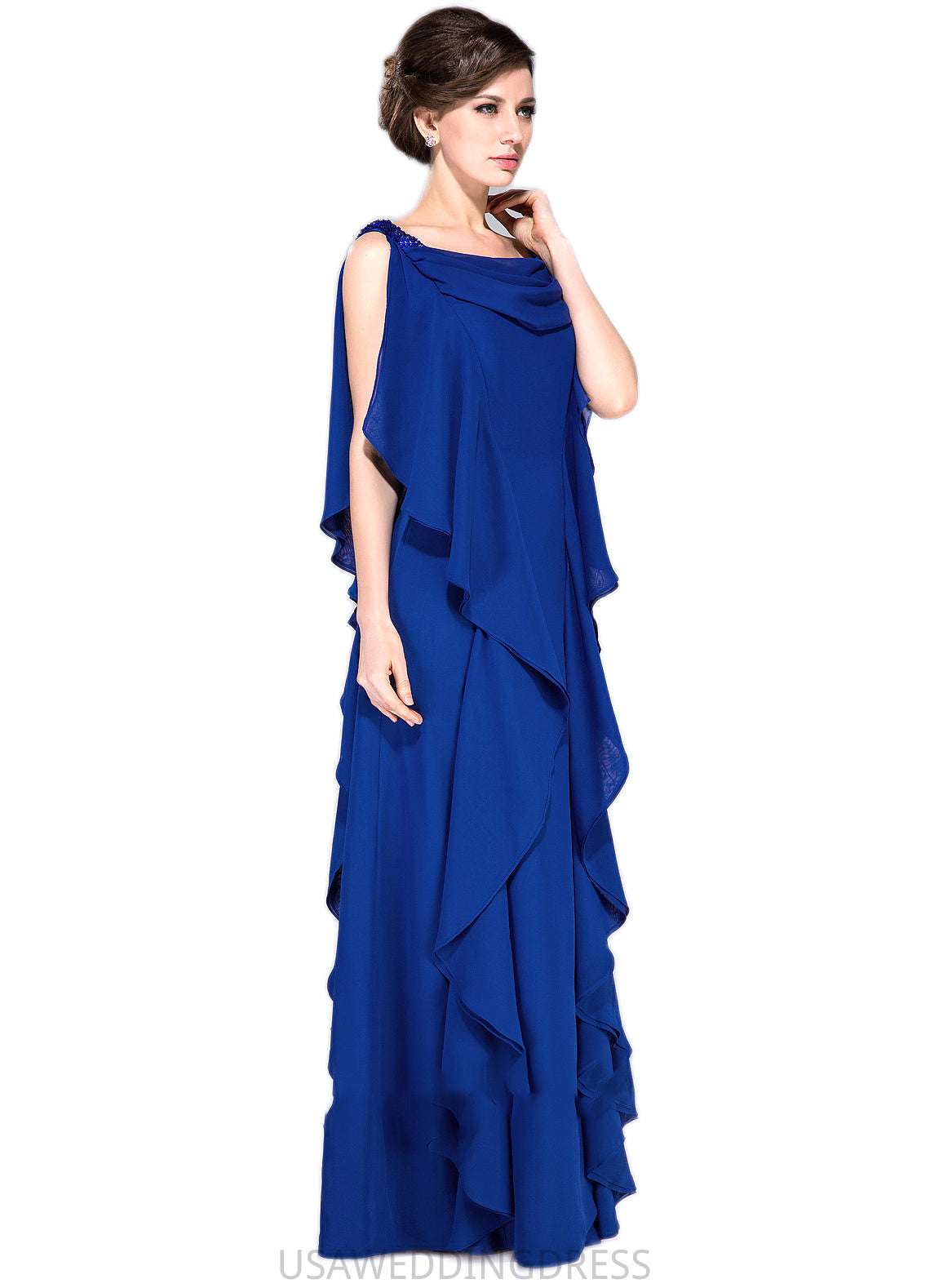 Mckenzie A-Line Cowl Neck Floor-Length Chiffon Mother of the Bride Dress With Beading Sequins Cascading Ruffles DS126P0014907