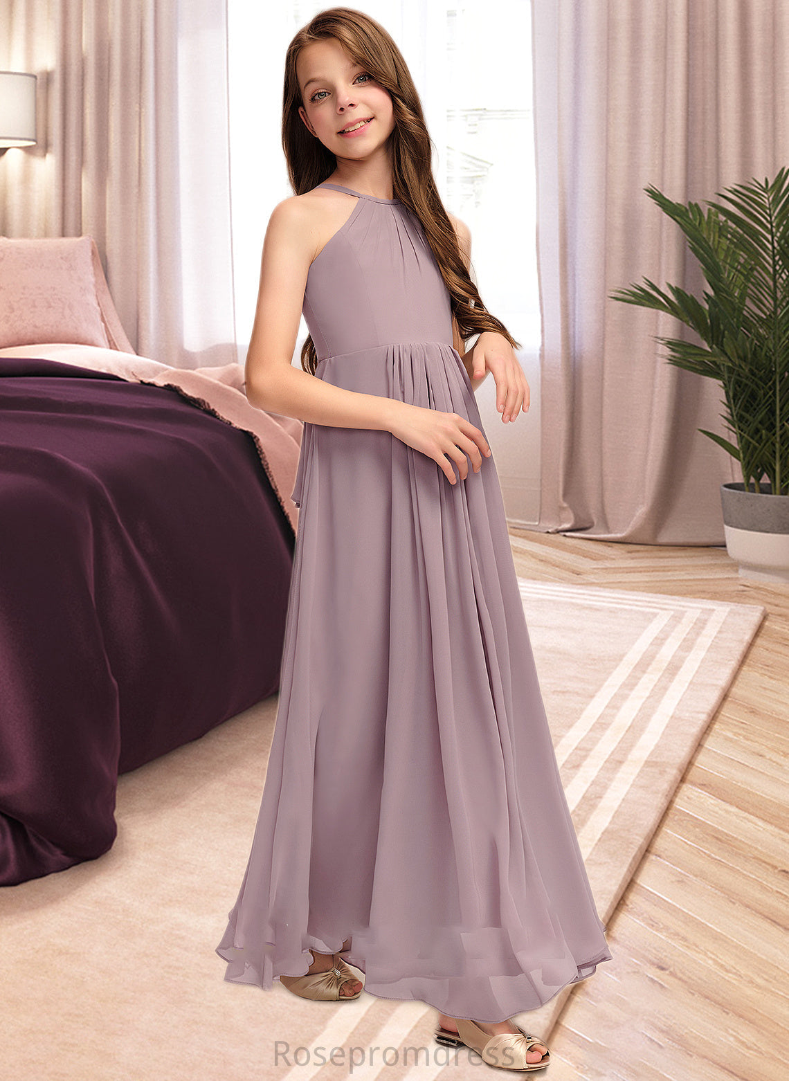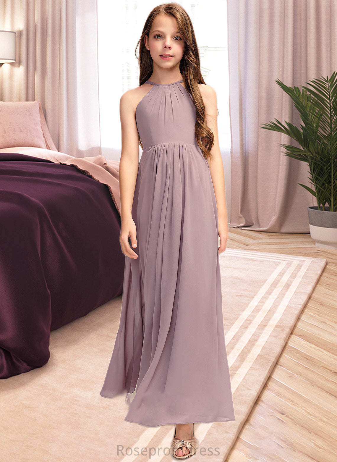 Meadow A-Line Scoop Neck Floor-Length Chiffon Junior Bridesmaid Dress With Cascading Ruffles SRSP0013492