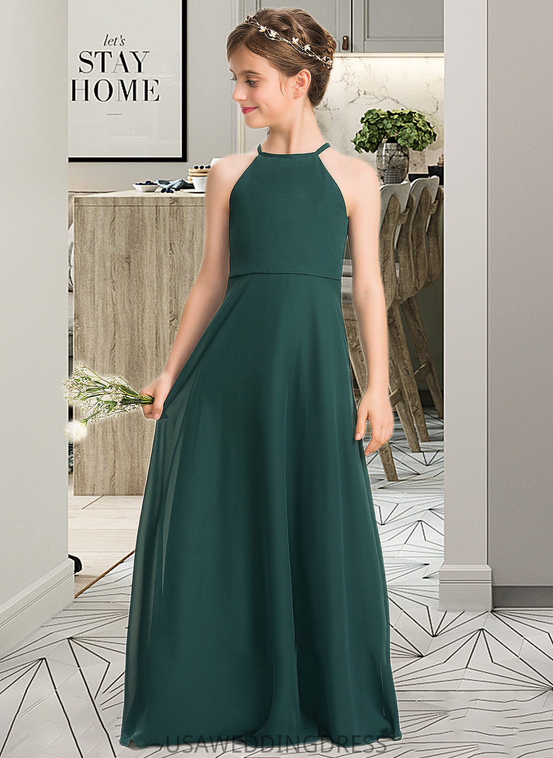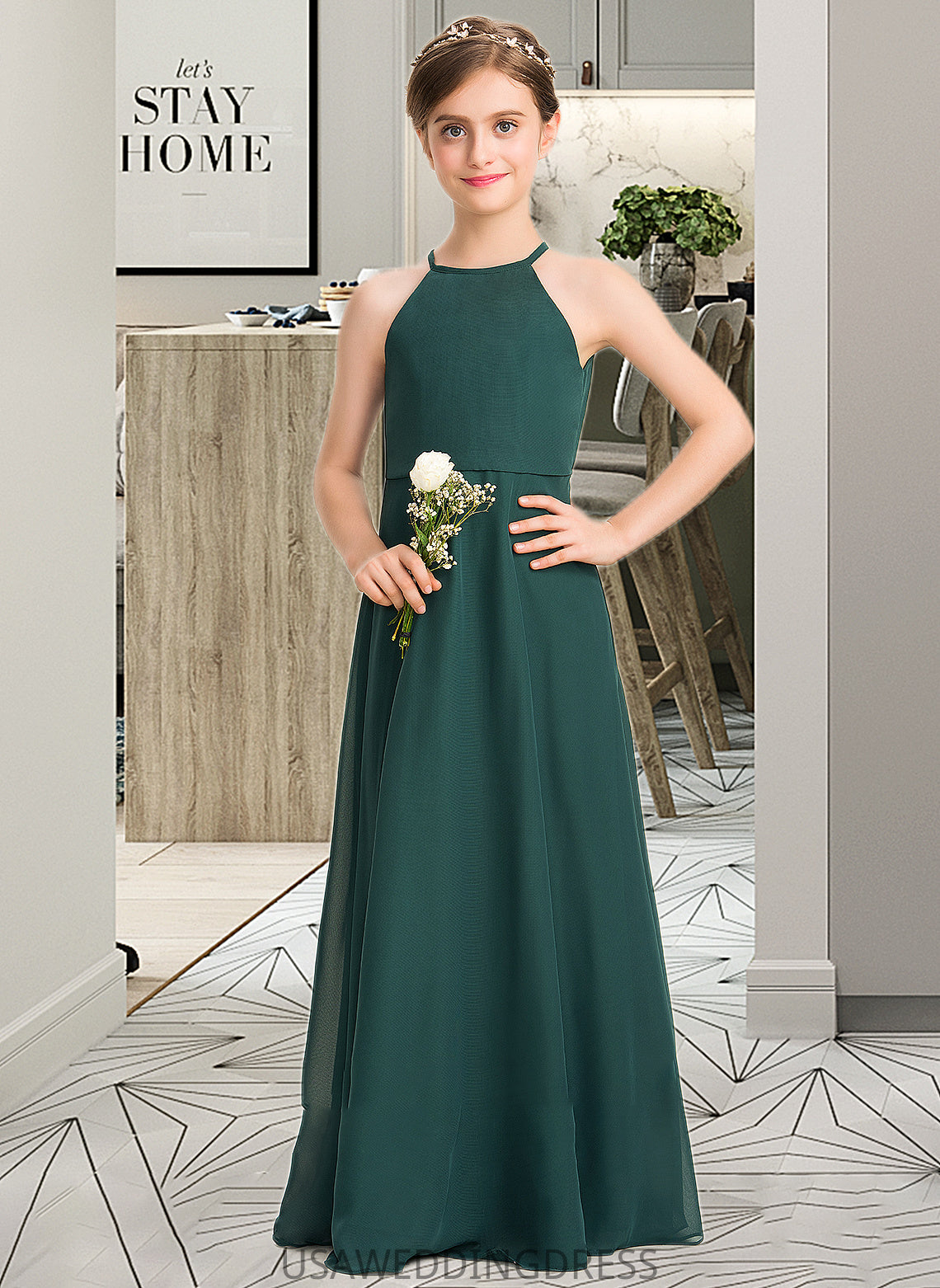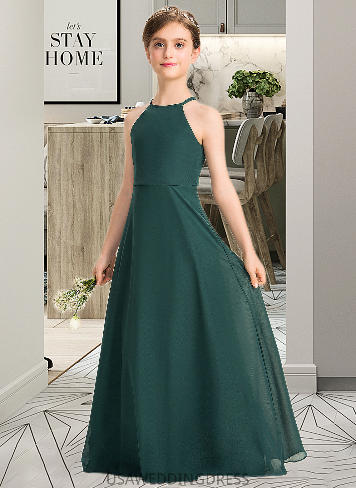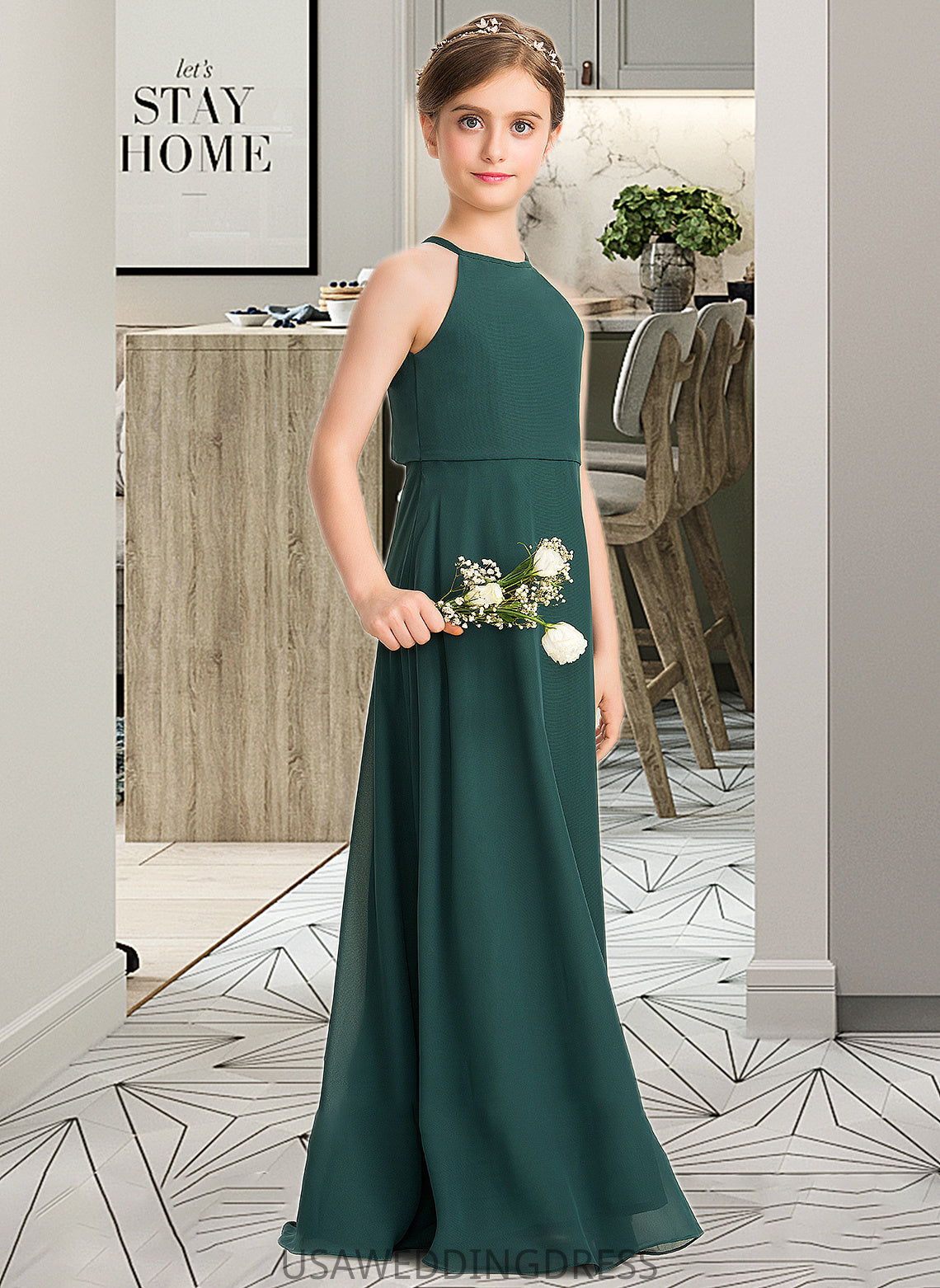 Meghan A-Line Scoop Neck Floor-Length Chiffon Junior Bridesmaid Dress DSP0013442