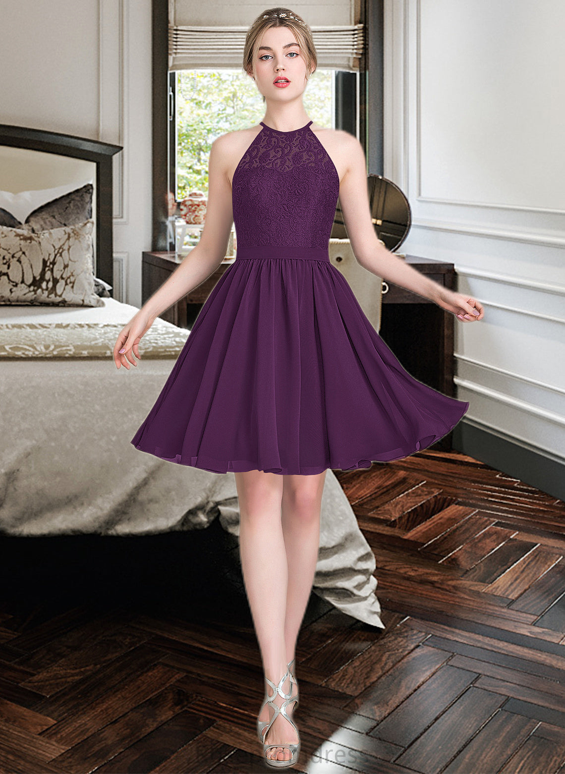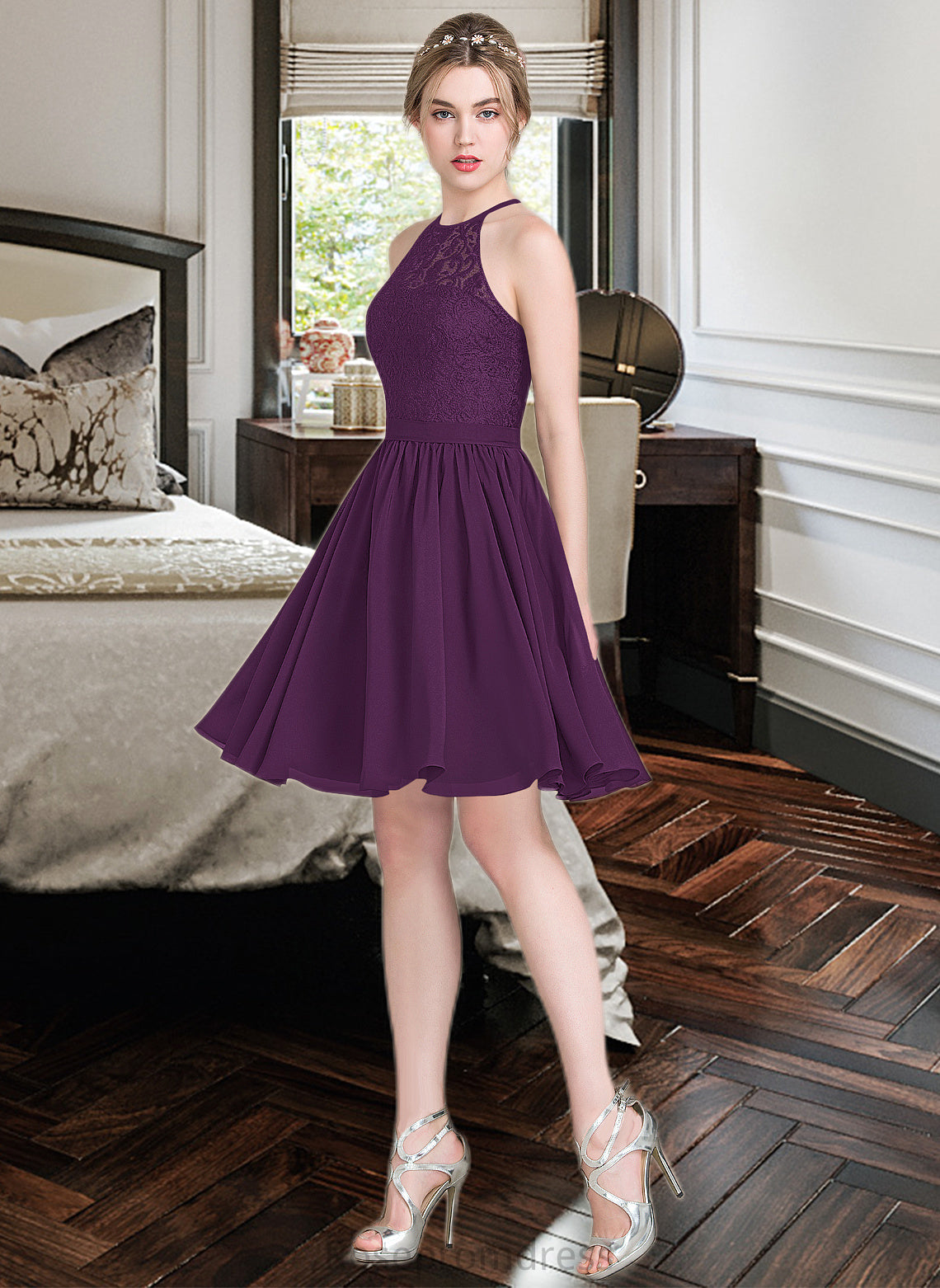 Melanie A-Line Scoop Neck Knee-Length Chiffon Lace Bridesmaid Dress SRSP0013090