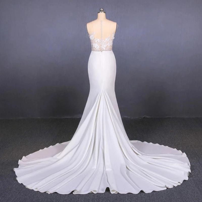 Mermaid Sheer Neck Mermaid Long Wedding Dress with Appliques, Wedding Gowns SRS15265