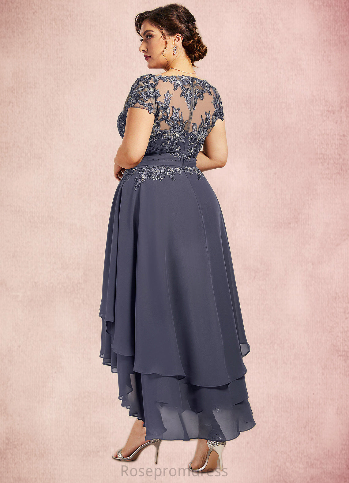 Micaela A-Line Scoop Neck Asymmetrical Chiffon Lace Mother of the Bride Dress With Beading SRSP0014534