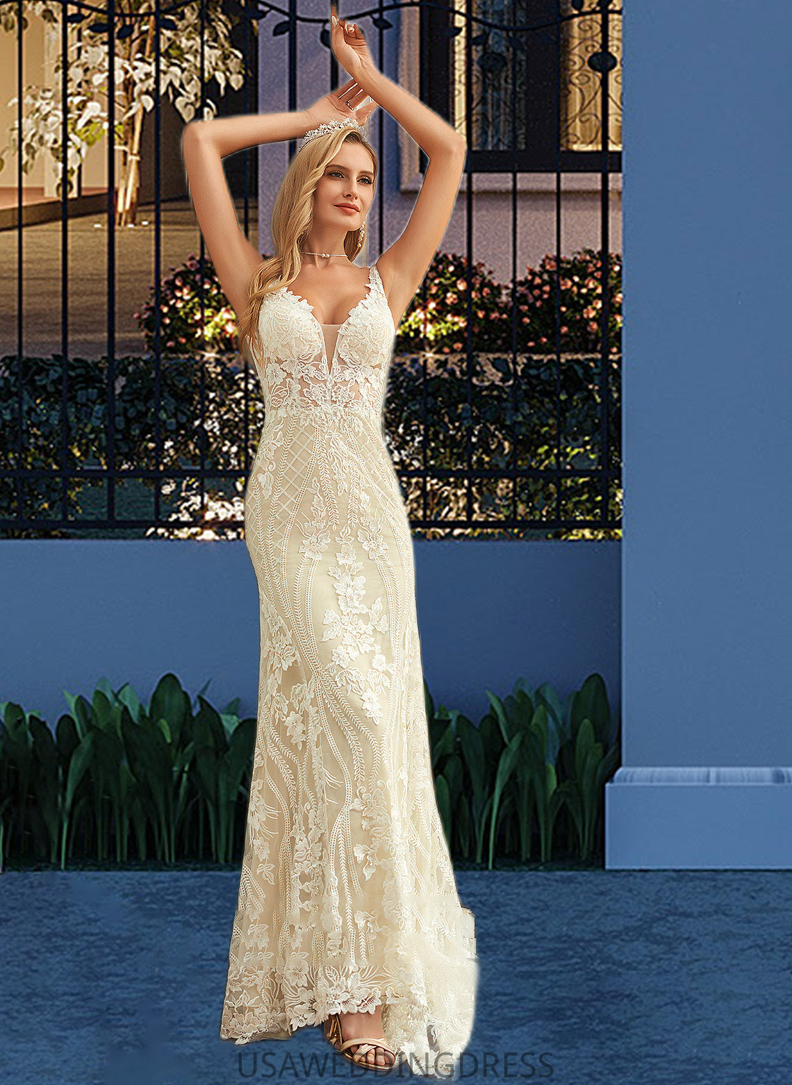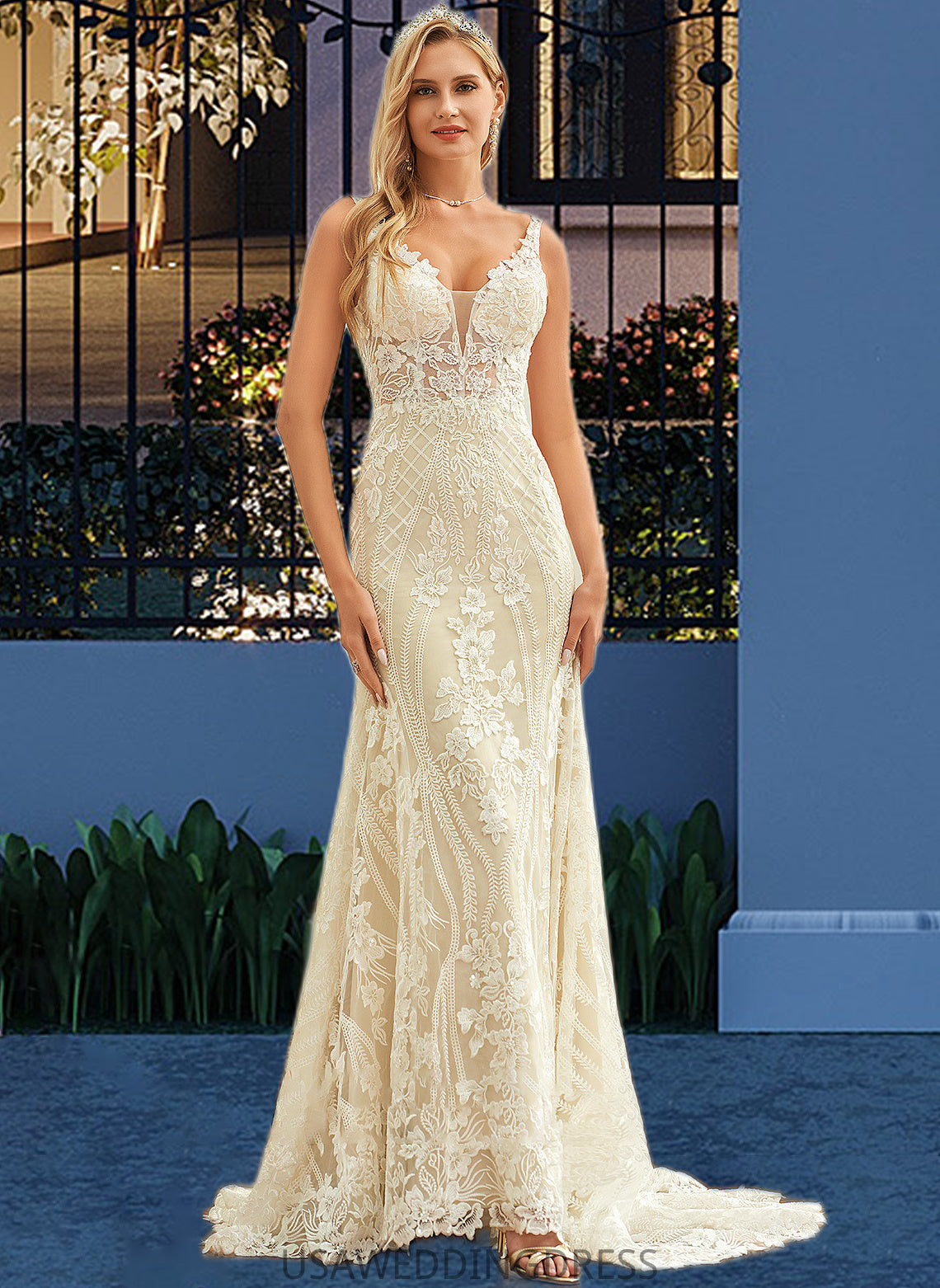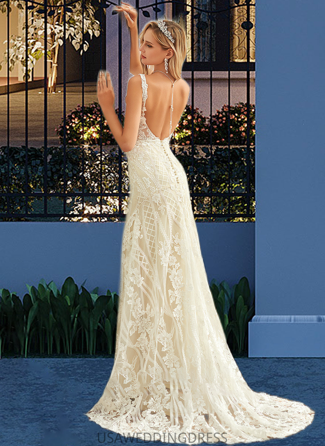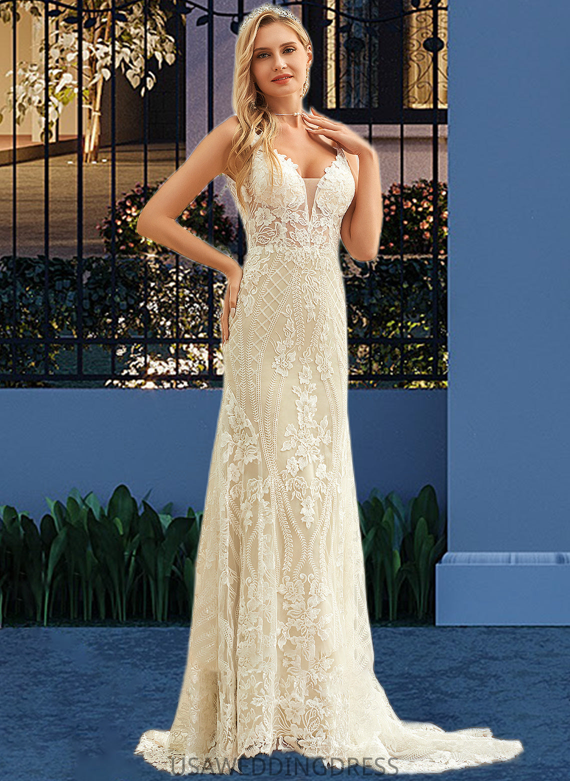 Micah Trumpet/Mermaid V-neck Court Train Tulle Lace Wedding Dress DSP0013708