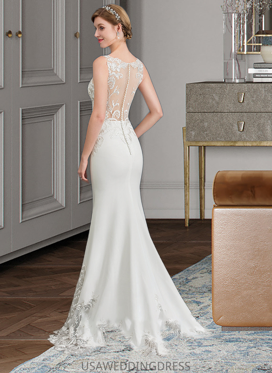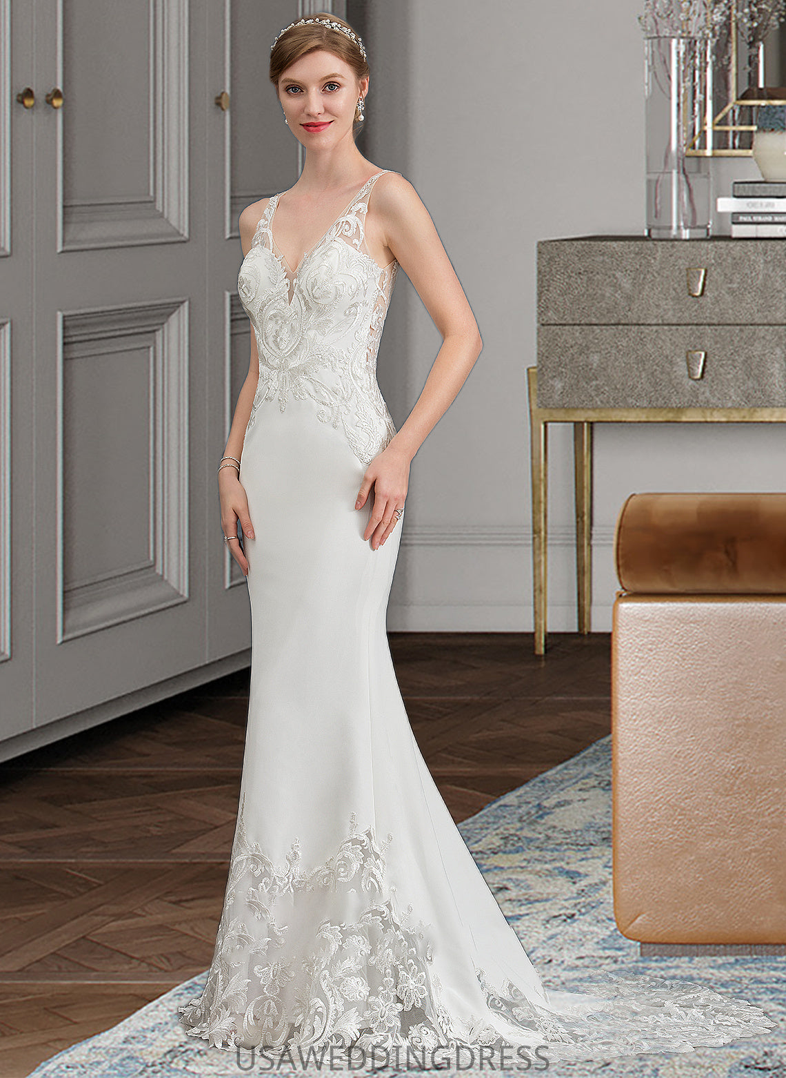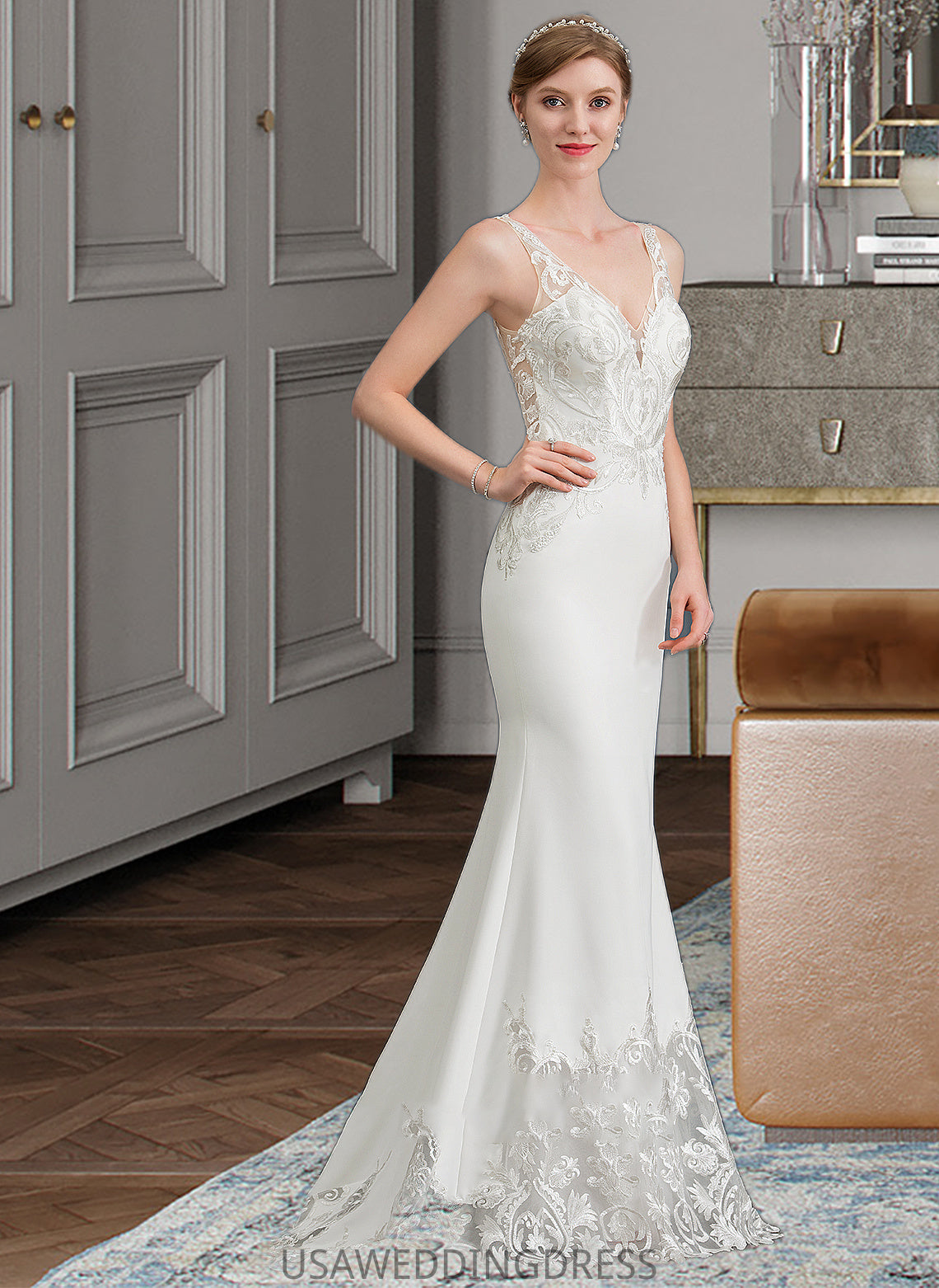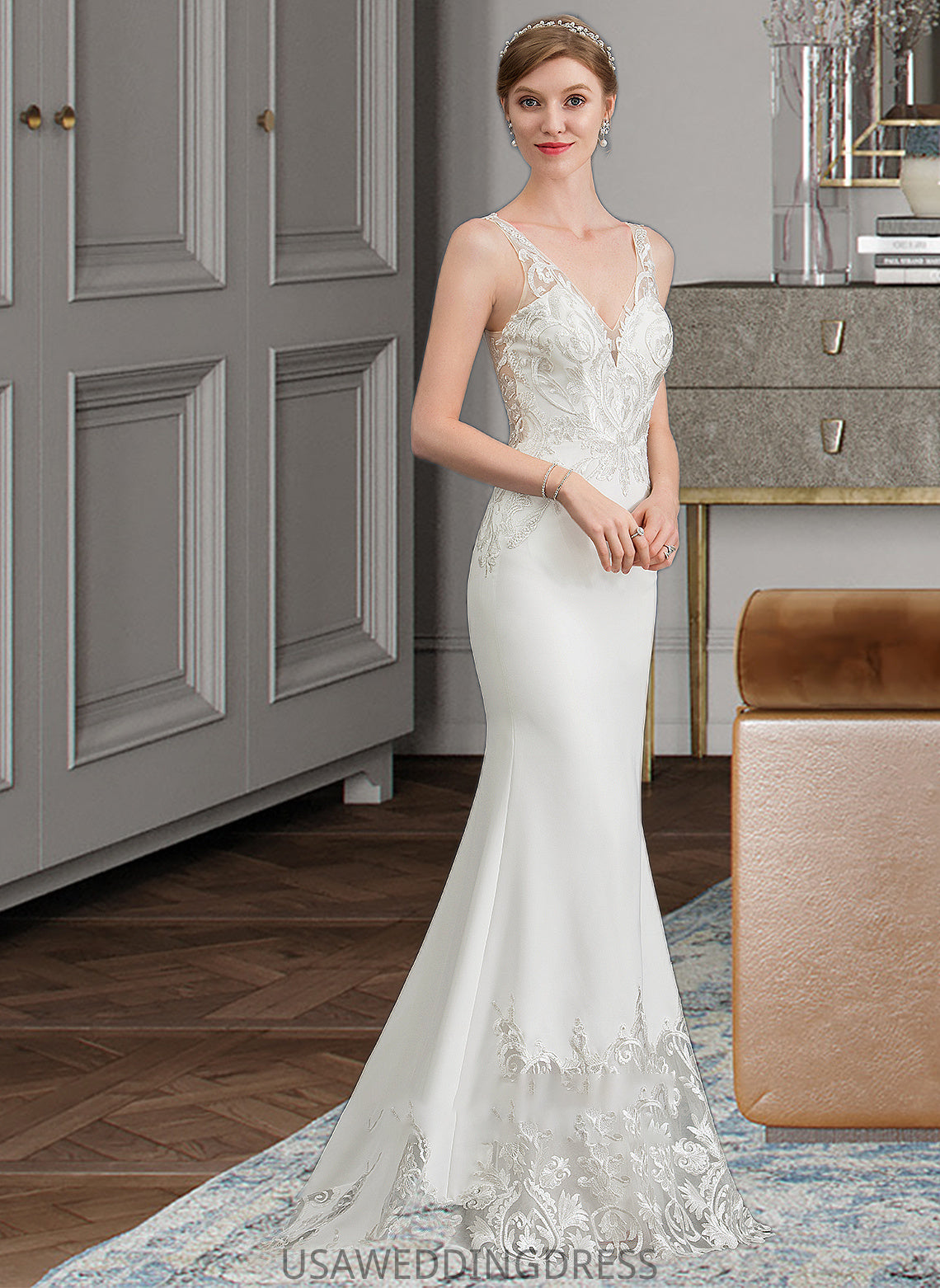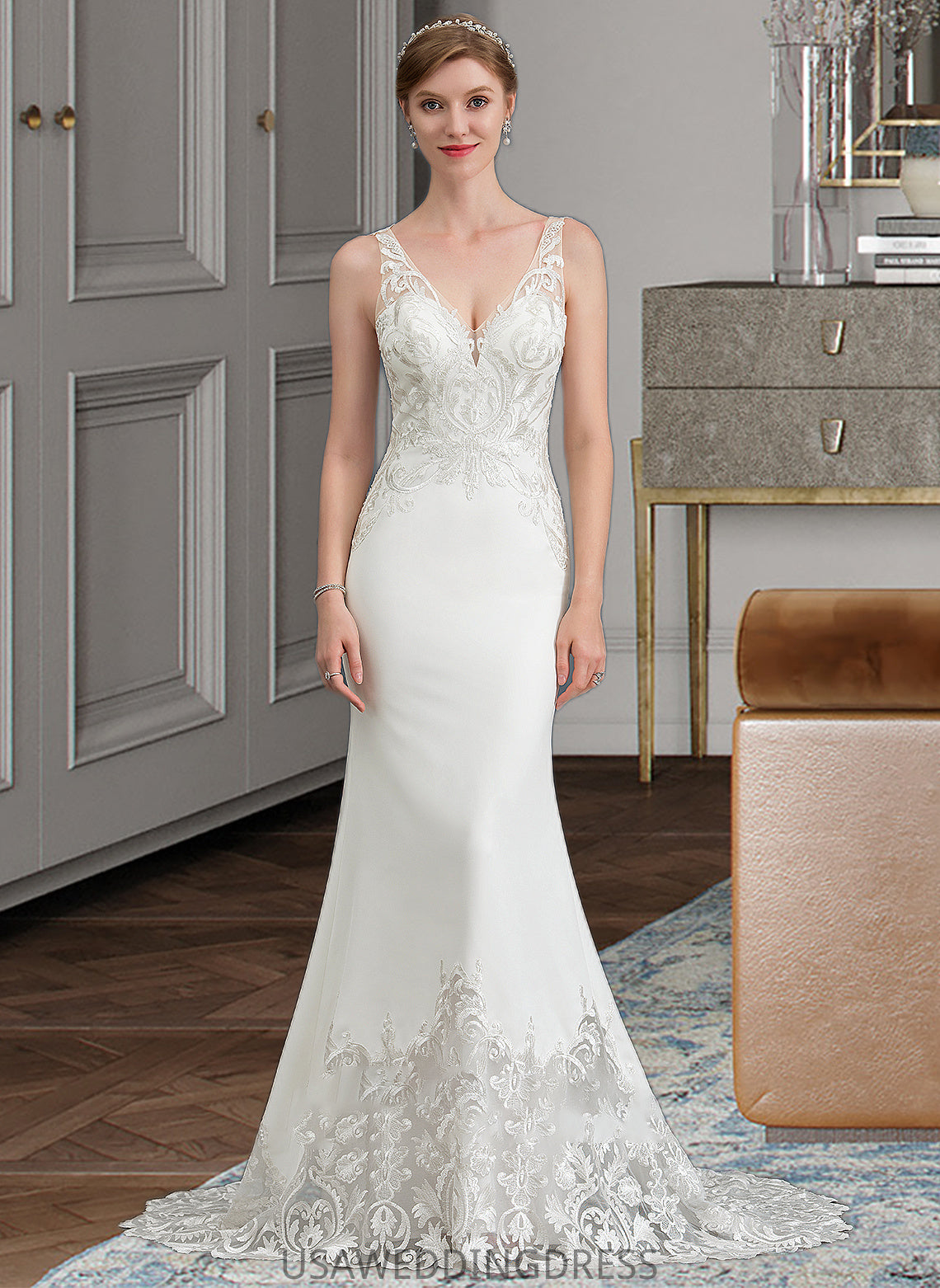 Michelle Trumpet/Mermaid V-neck Court Train Stretch Crepe Wedding Dress DSP0013803