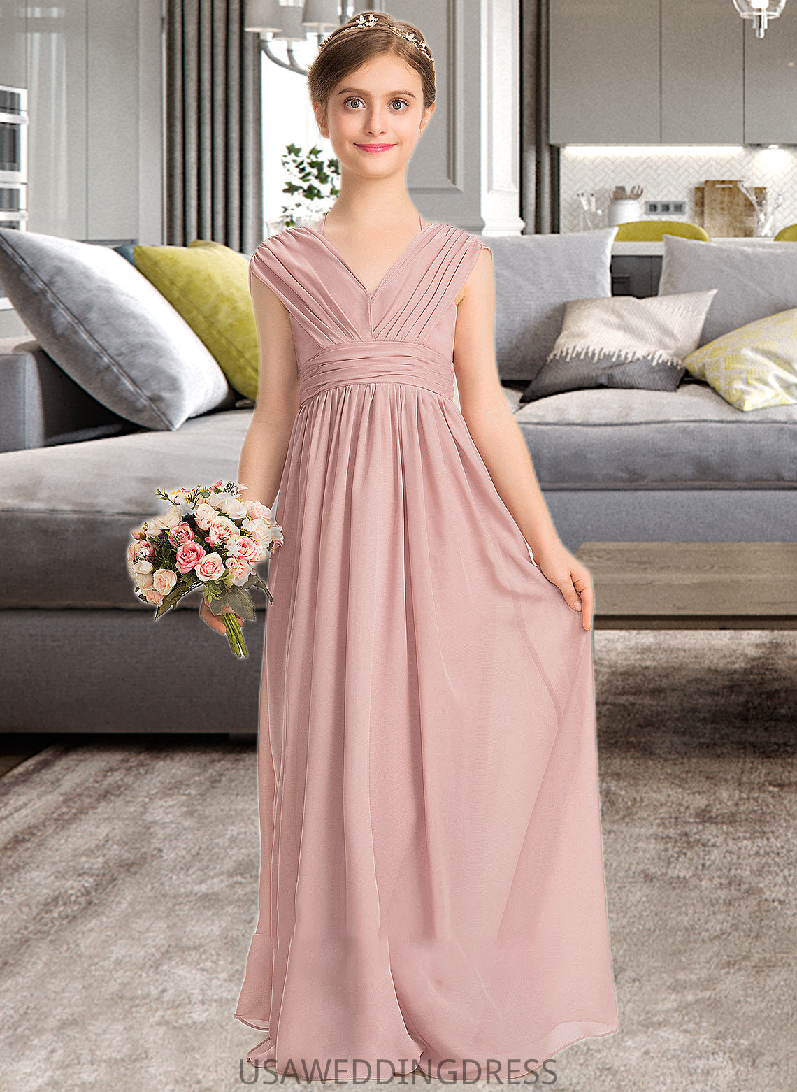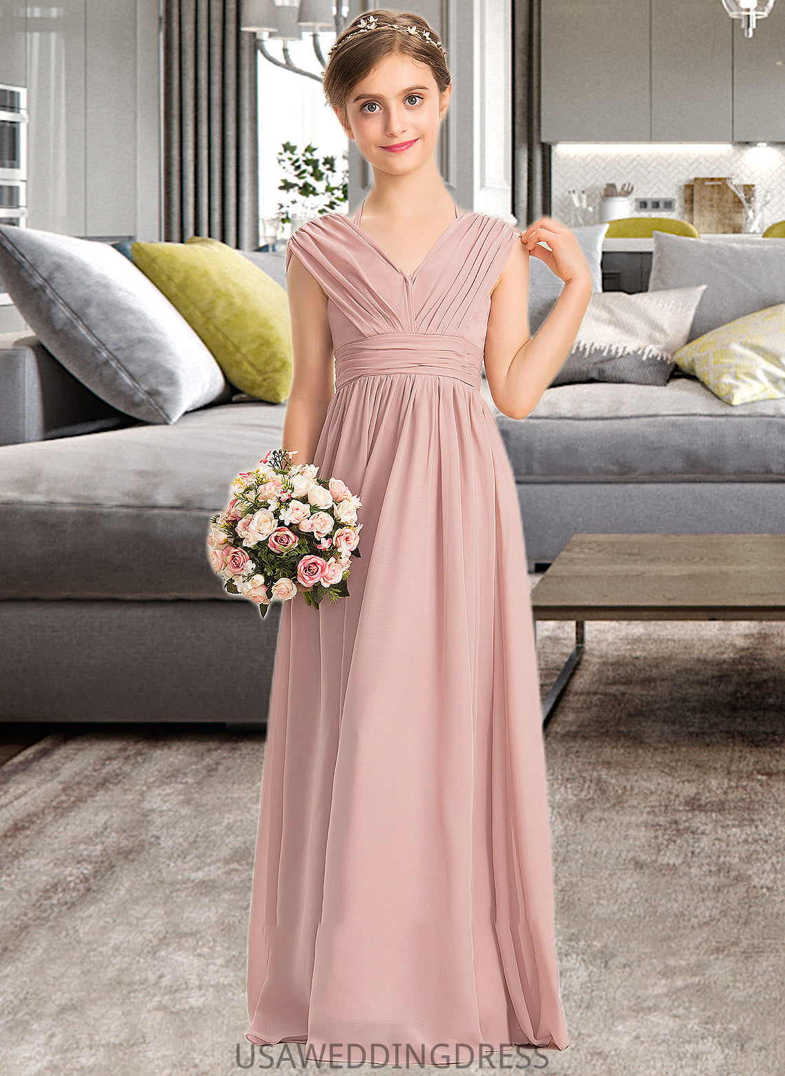 Mignon A-Line V-neck Floor-Length Chiffon Junior Bridesmaid Dress With Ruffle Bow(s) DSP0013378