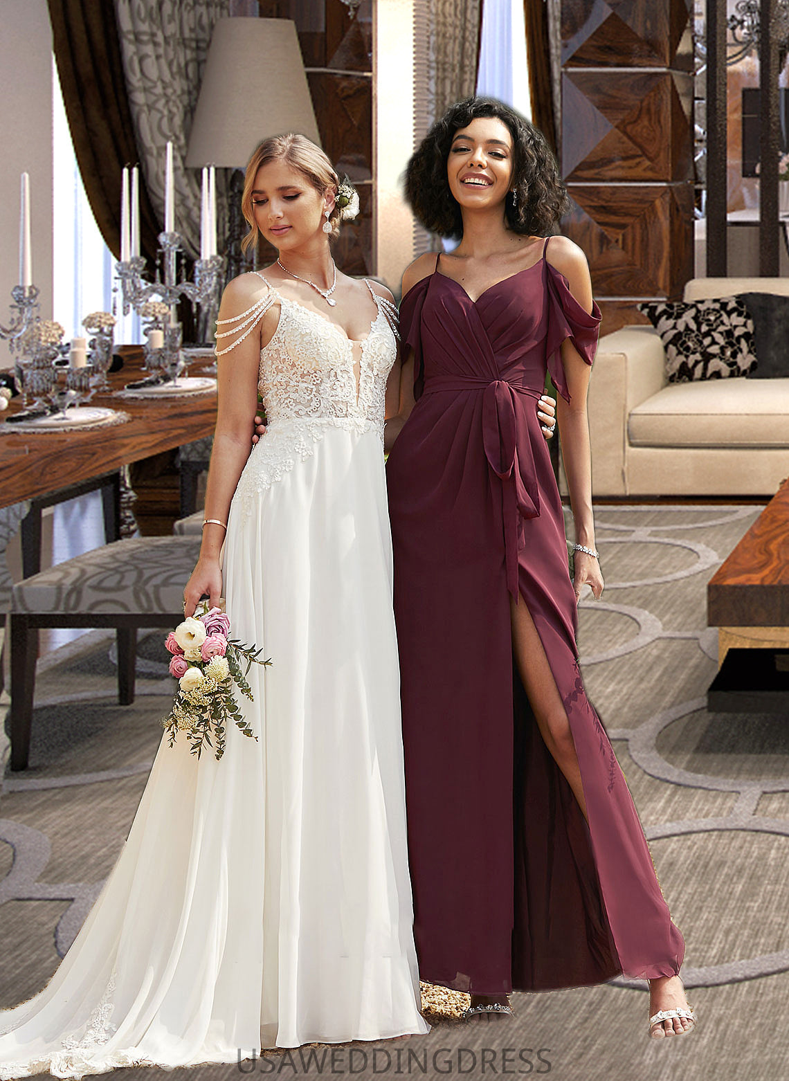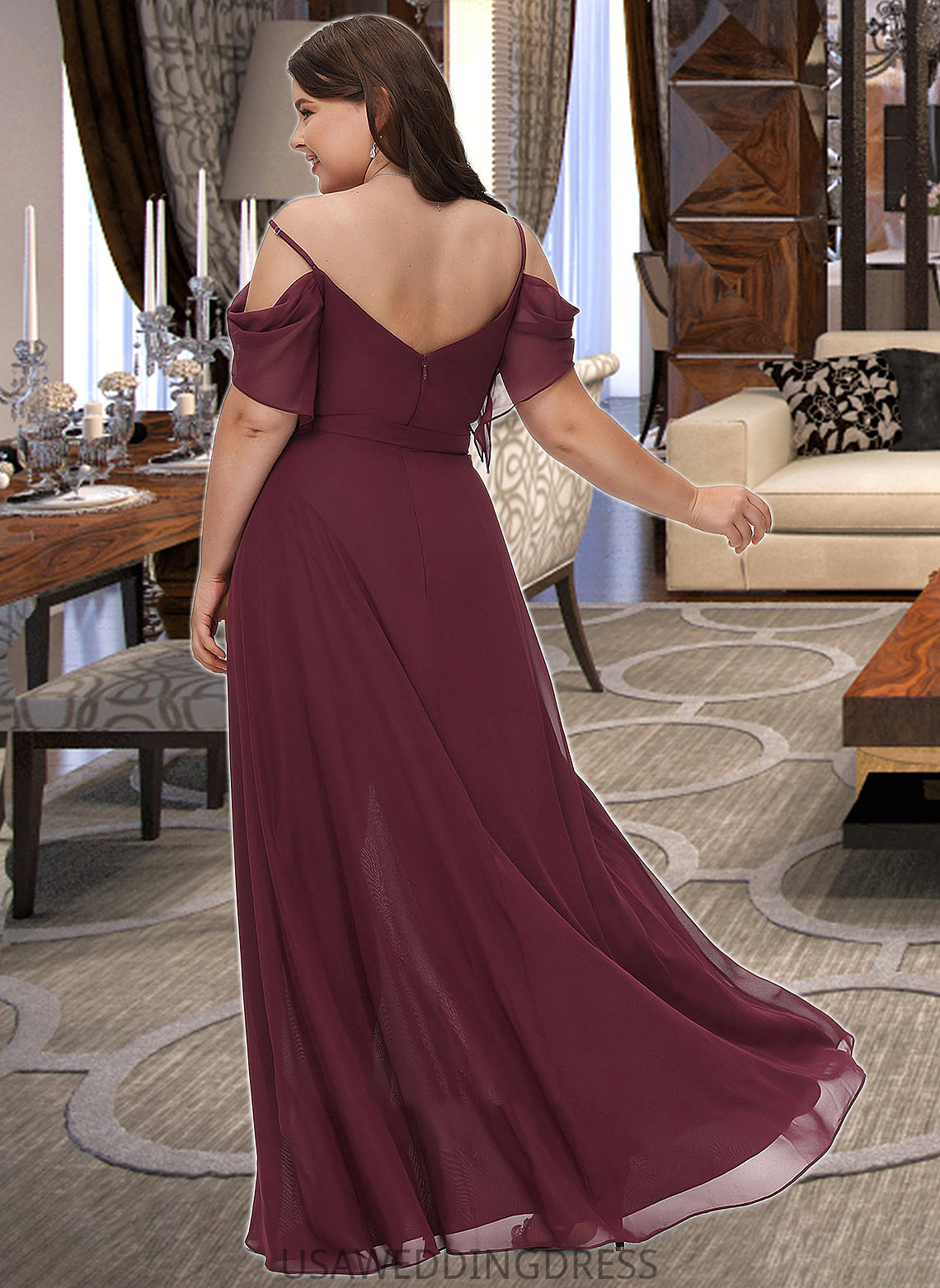 Mila A-Line V-neck Floor-Length Bridesmaid Dress With Ruffle Split Front DSP0012772