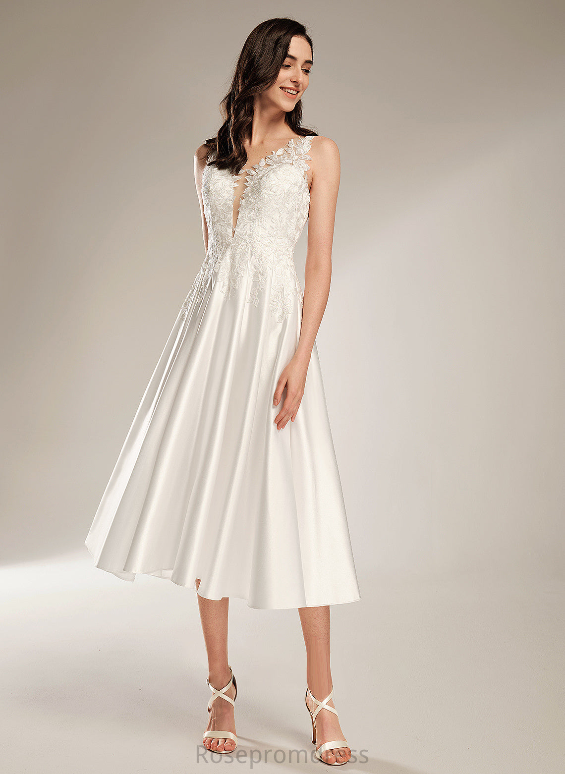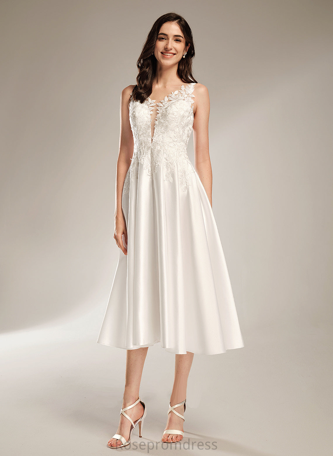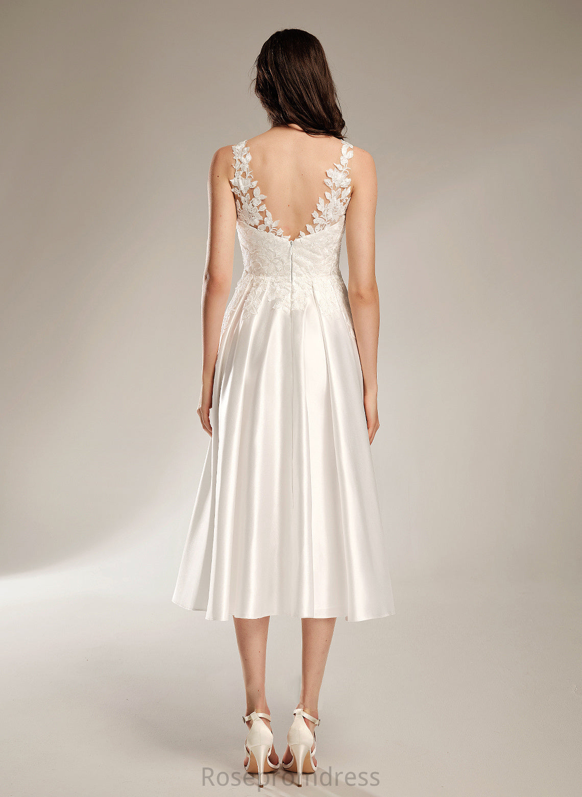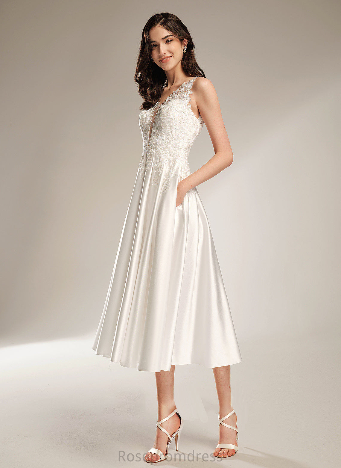Milagros V-neck Wedding Dresses Pockets With A-Line Dress Tea-Length Wedding