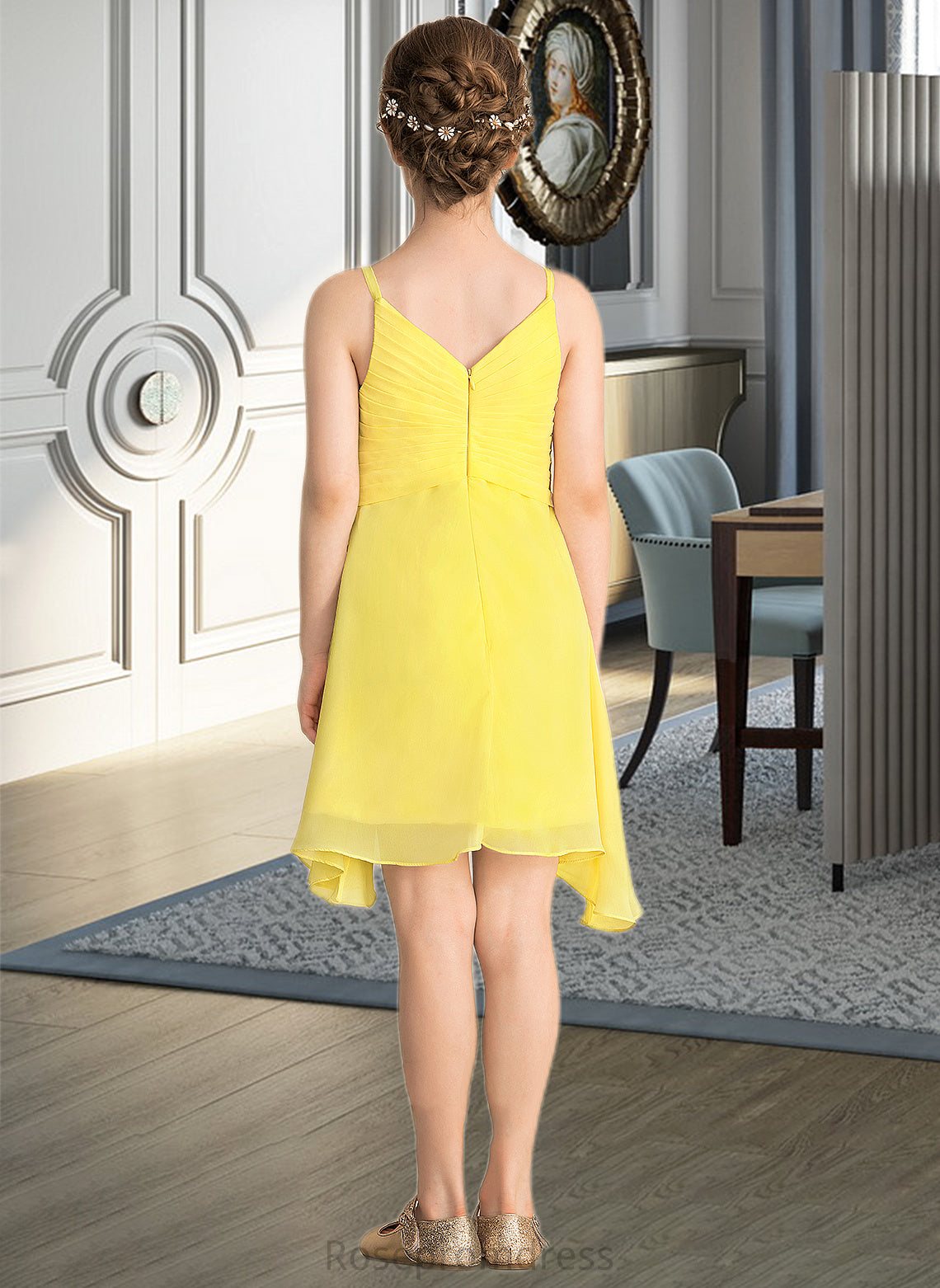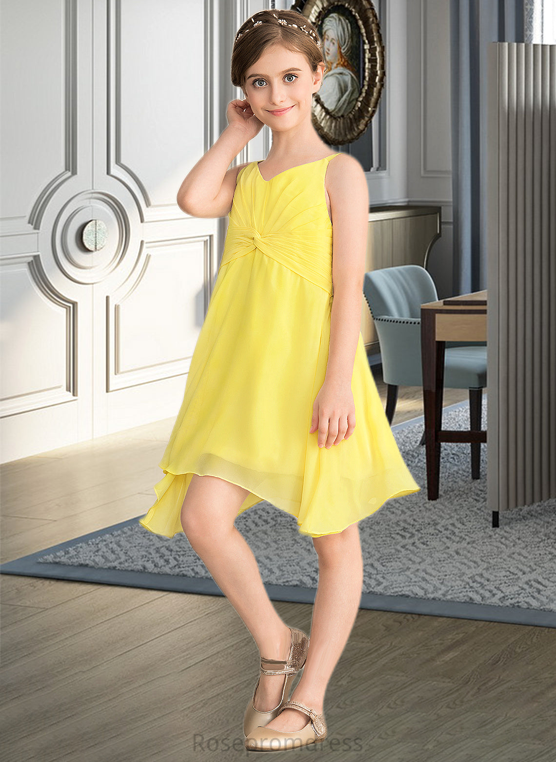 Miley A-Line V-neck Knee-Length Chiffon Junior Bridesmaid Dress With Ruffle SRSP0013664