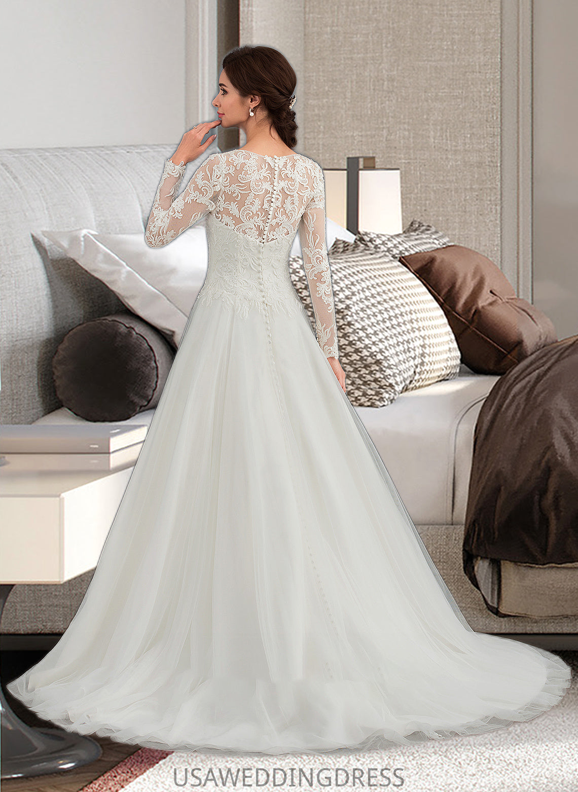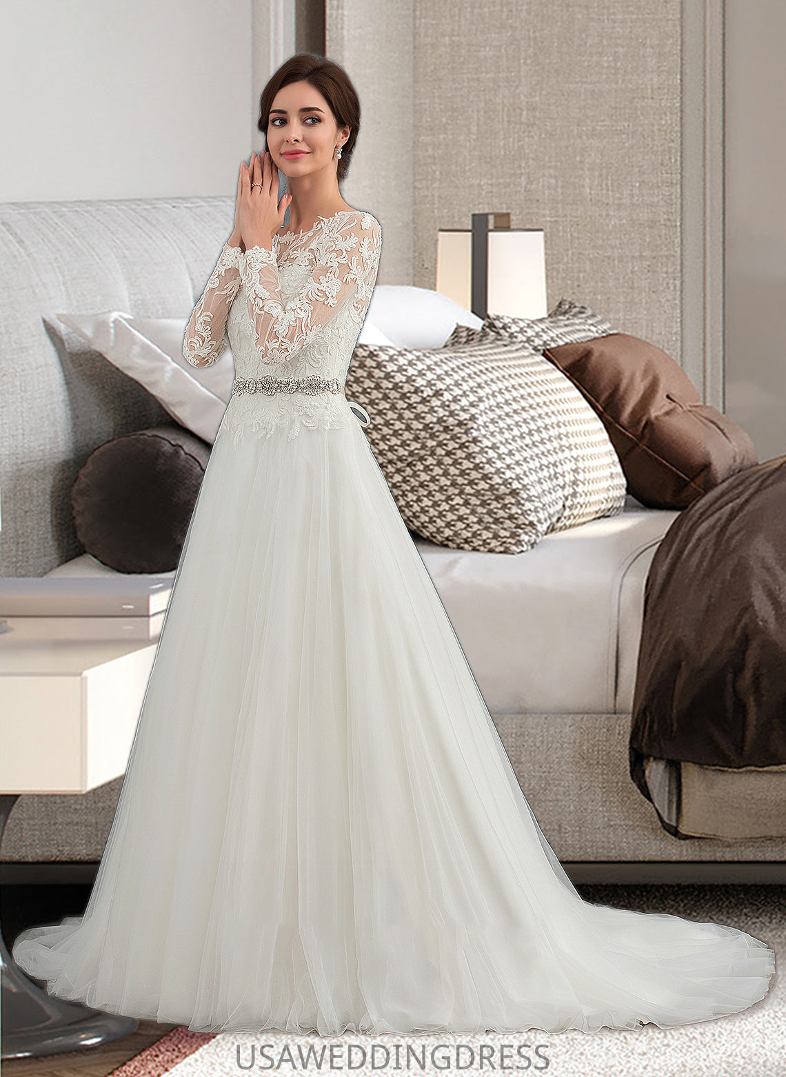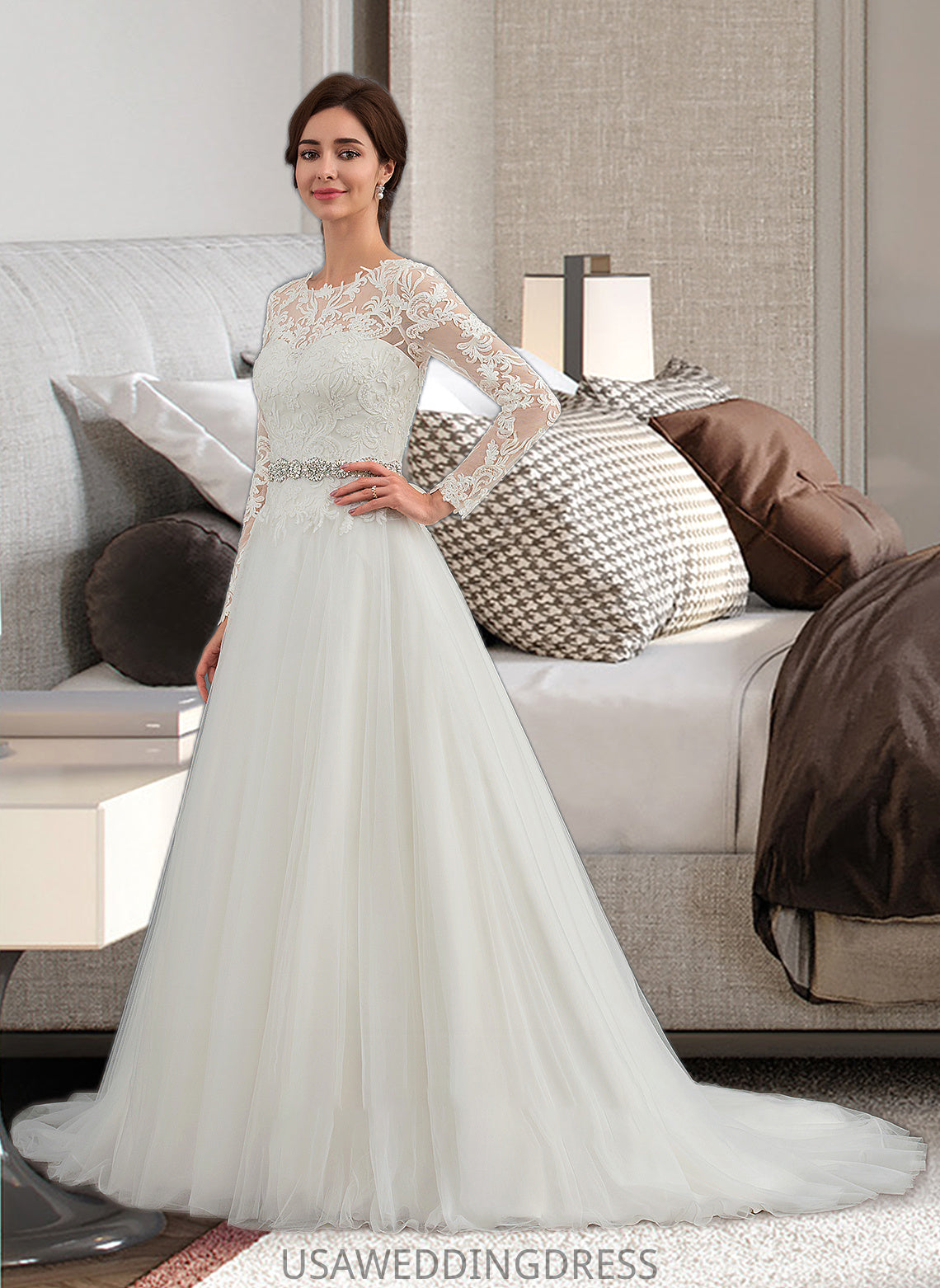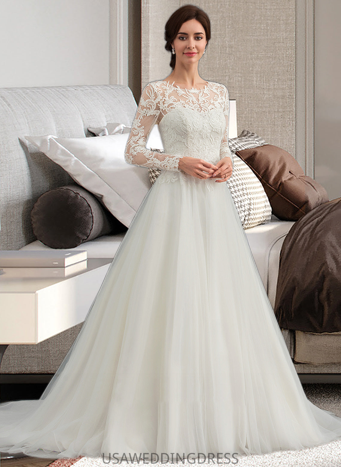 Mina Ball-Gown/Princess Scoop Neck Sweep Train Tulle Wedding Dress DSP0013759