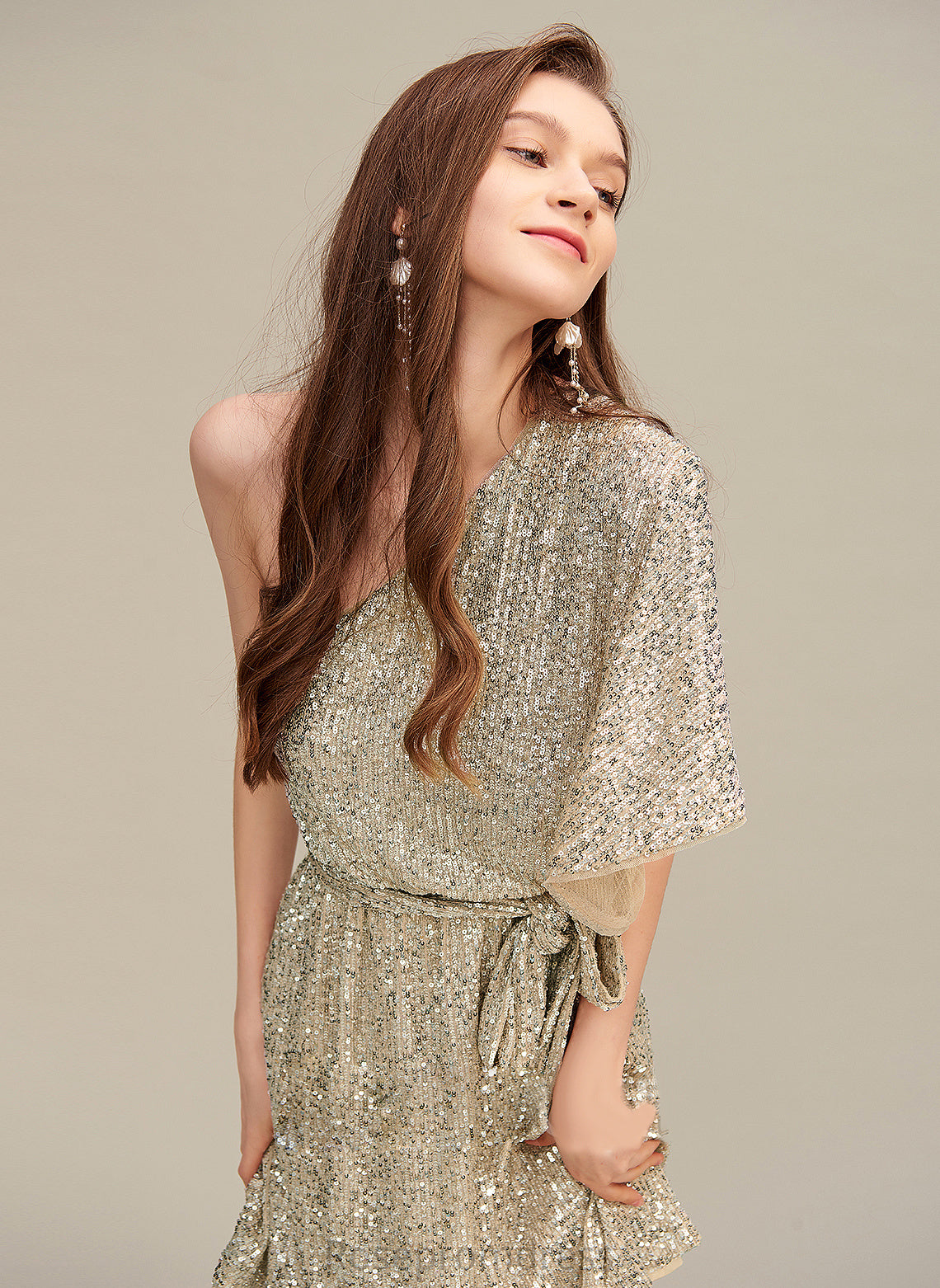 Mini Sequined Prudence Sleeves Sexy A-line Shoulder Dresses One Short Club Dresses