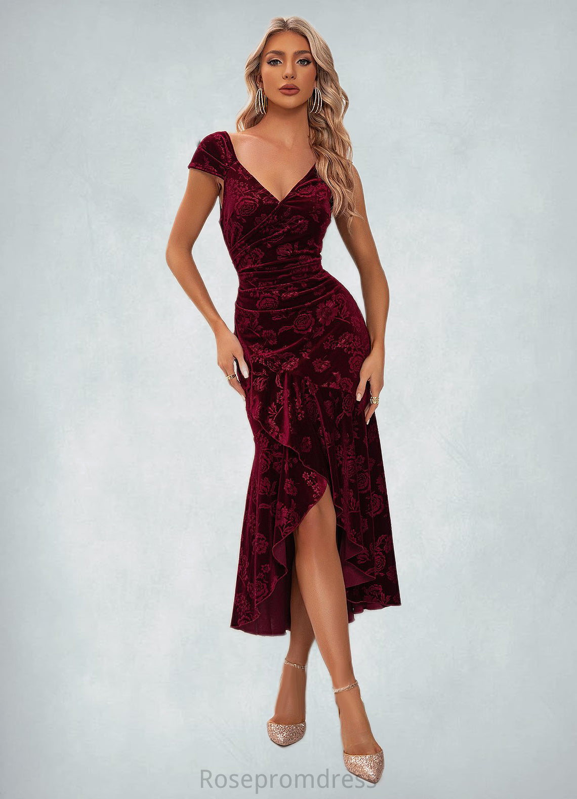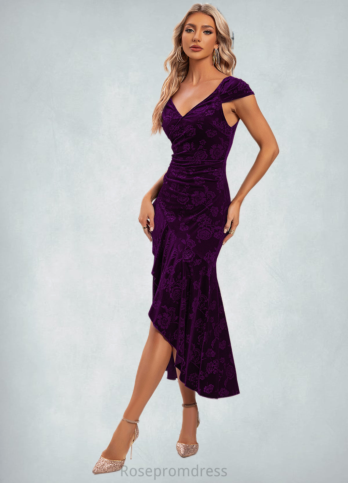 Miranda Flower Sweetheart Elegant Trumpet/Mermaid Velvet Asymmetrical Dresses SRSP0022284