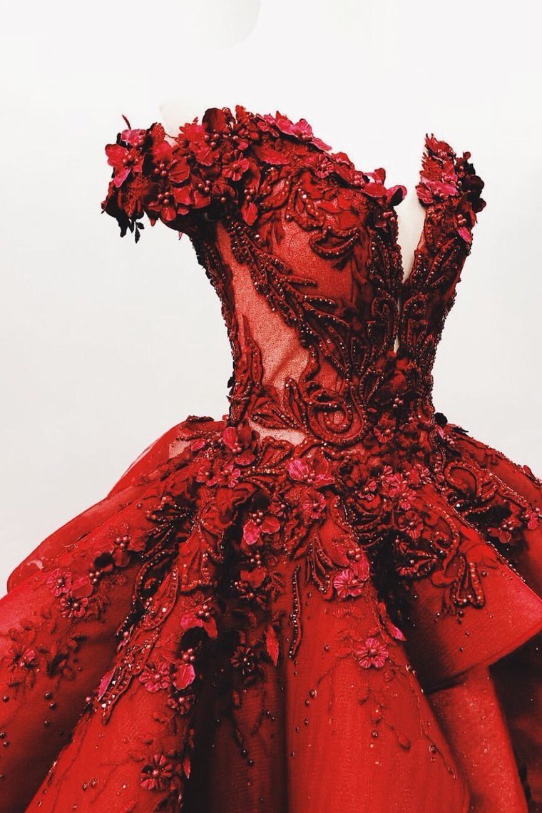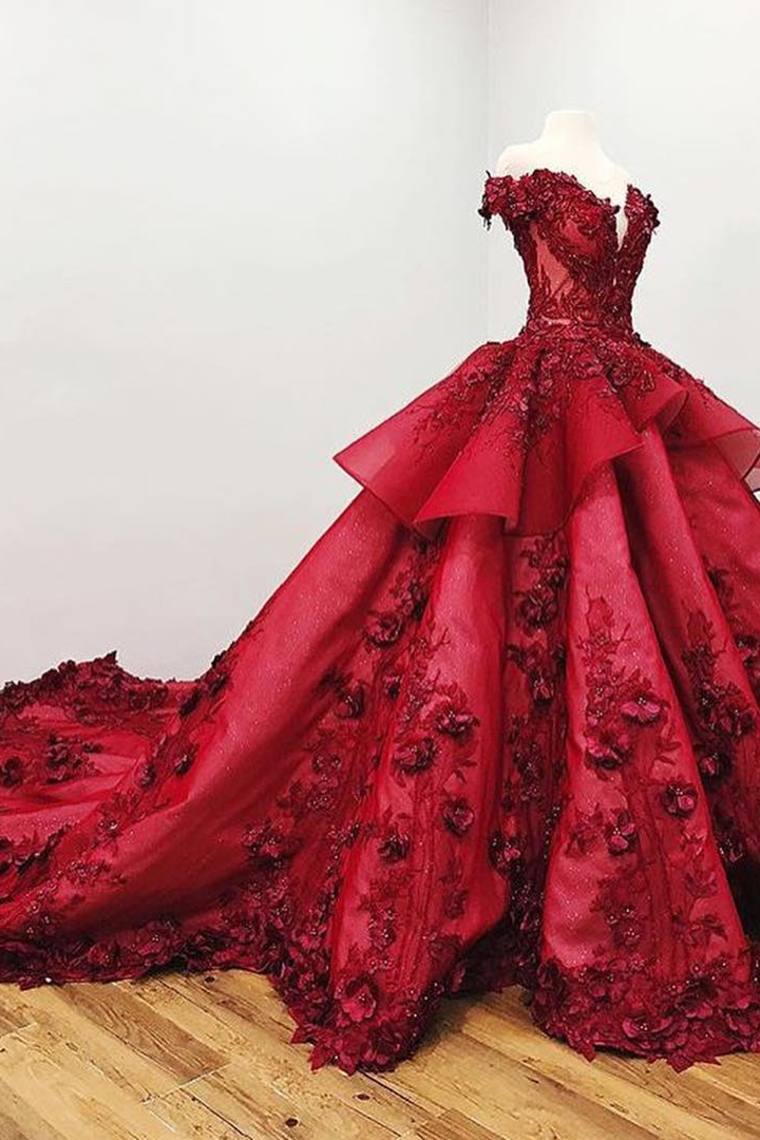 Modest Ball Gown Burgundy Lace Beading Princess Prom Dresses With Appliques
