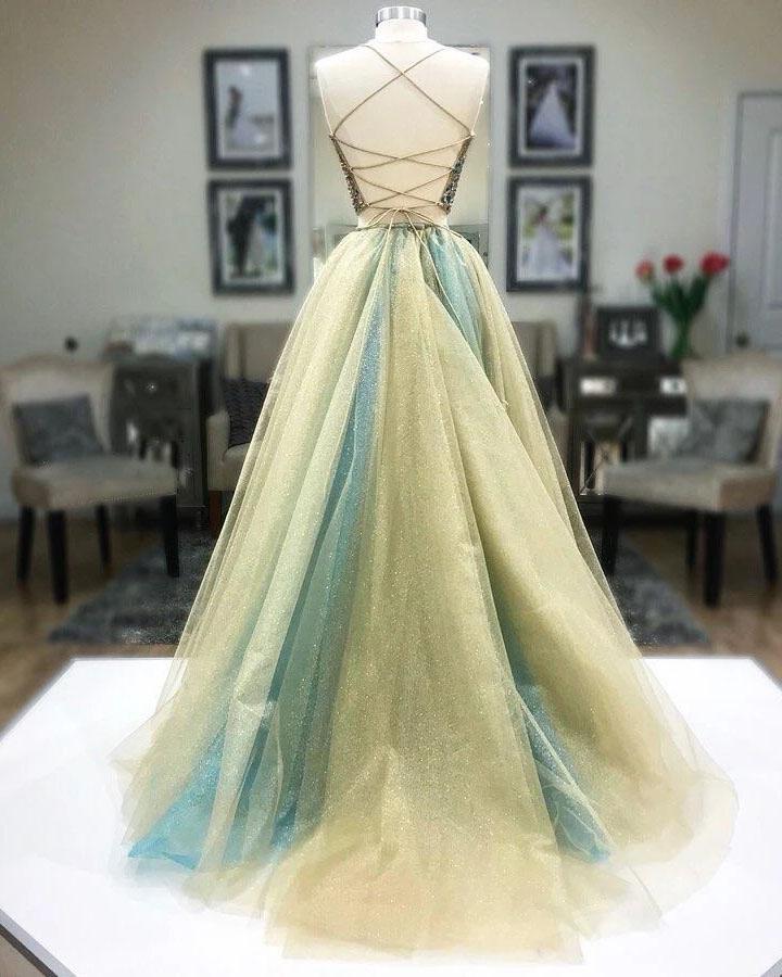 Modest Two Pieces Spaghetti Straps Beads Long Prom Dresses Cheap Formal Dresses SRS15523