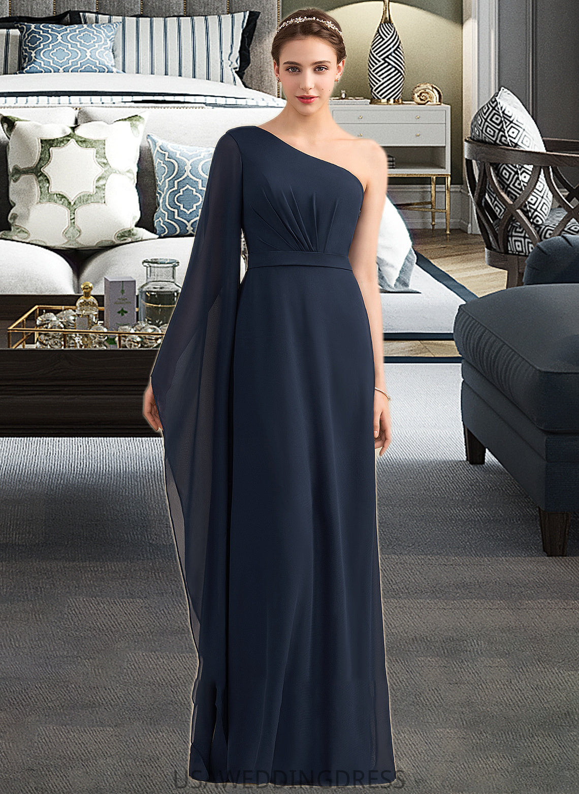 Monique A-line One Shoulder Floor-Length Chiffon Bridesmaid Dress With Ruffle DSP0012920