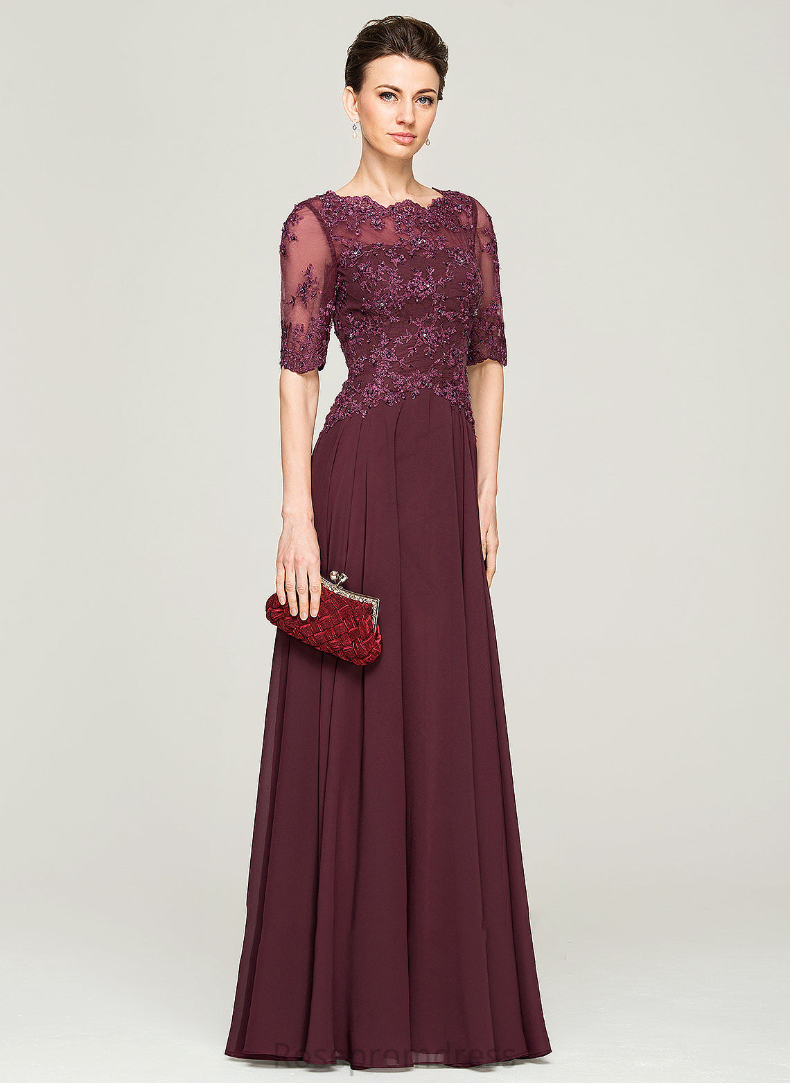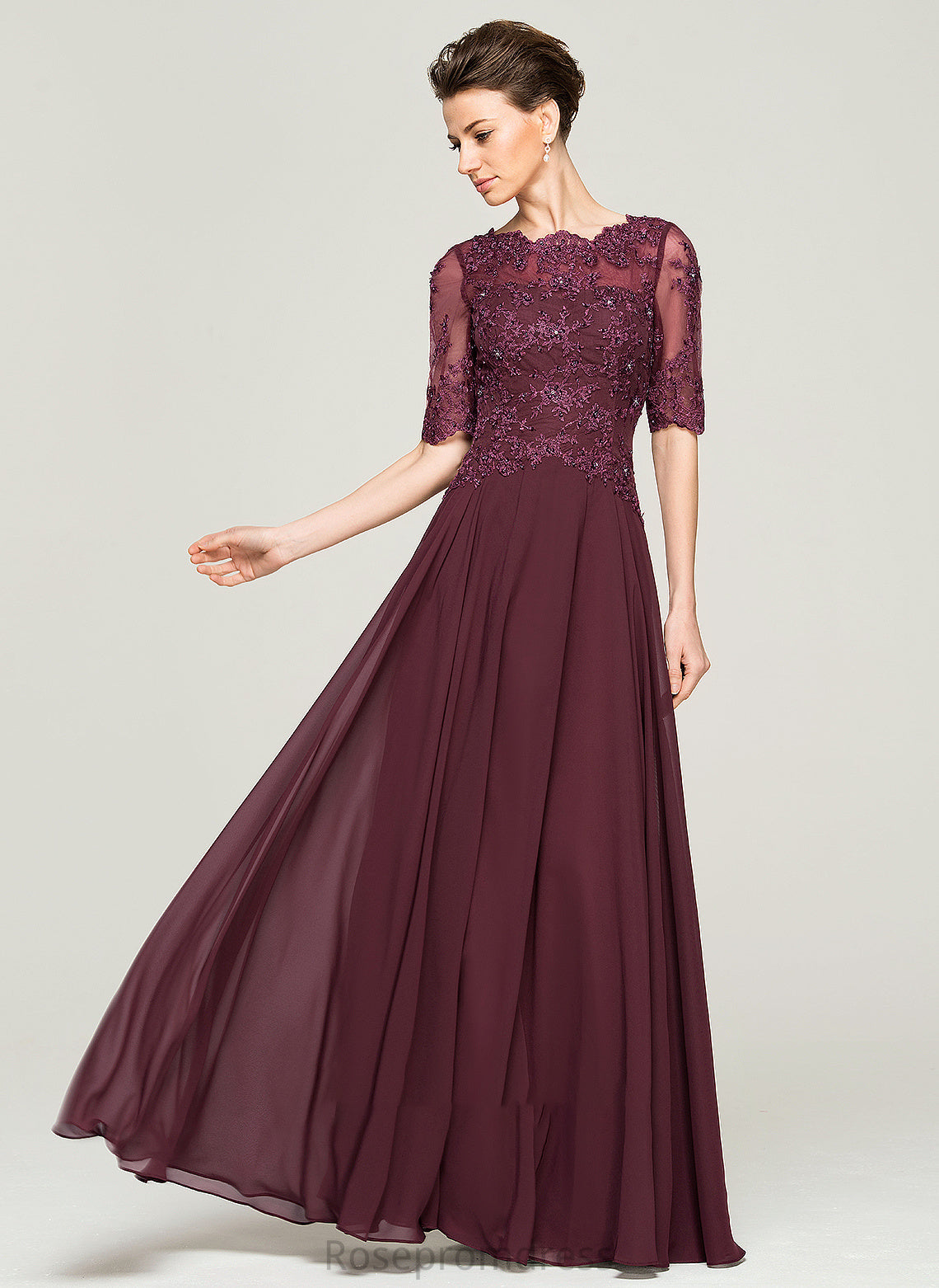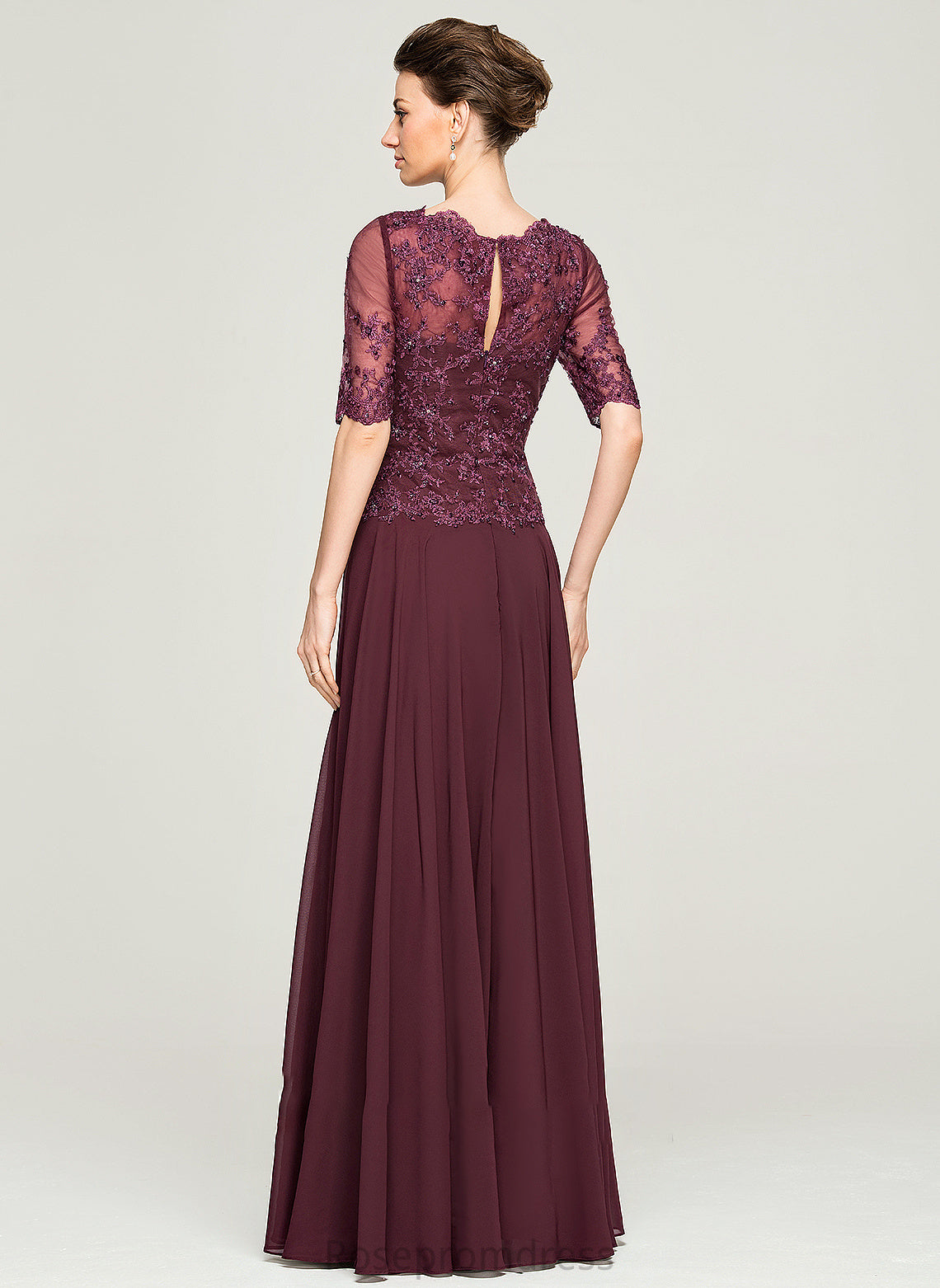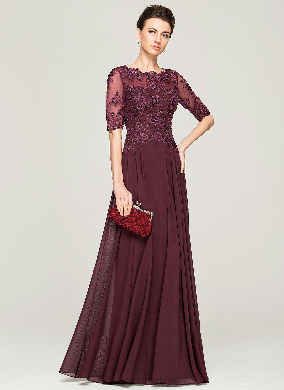 Mother Bride Beading With Sal of Mother of the Bride Dresses the Floor-Length Sequins Lace Chiffon Neck Dress Scoop A-Line