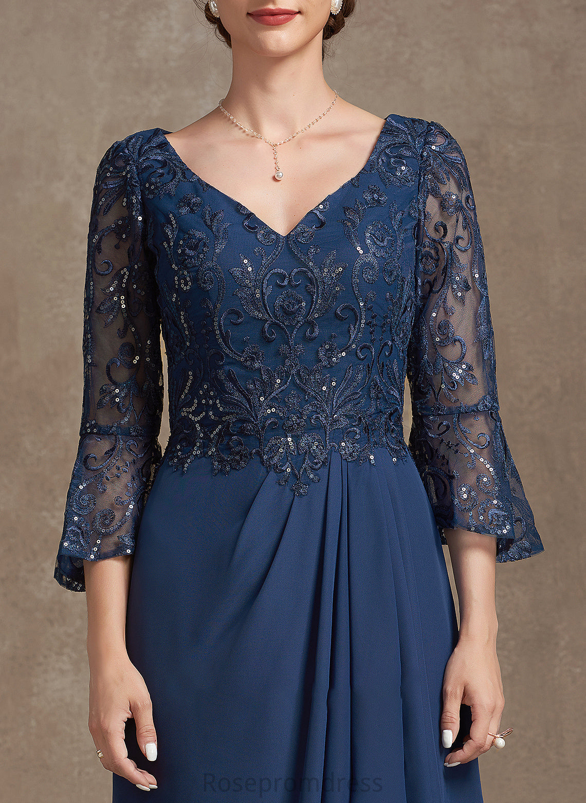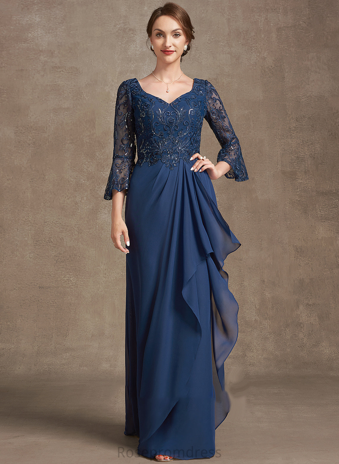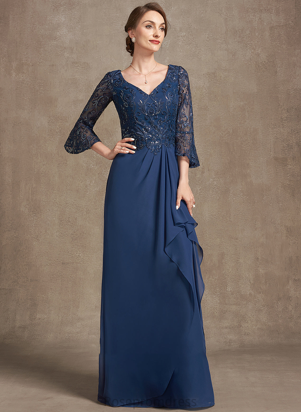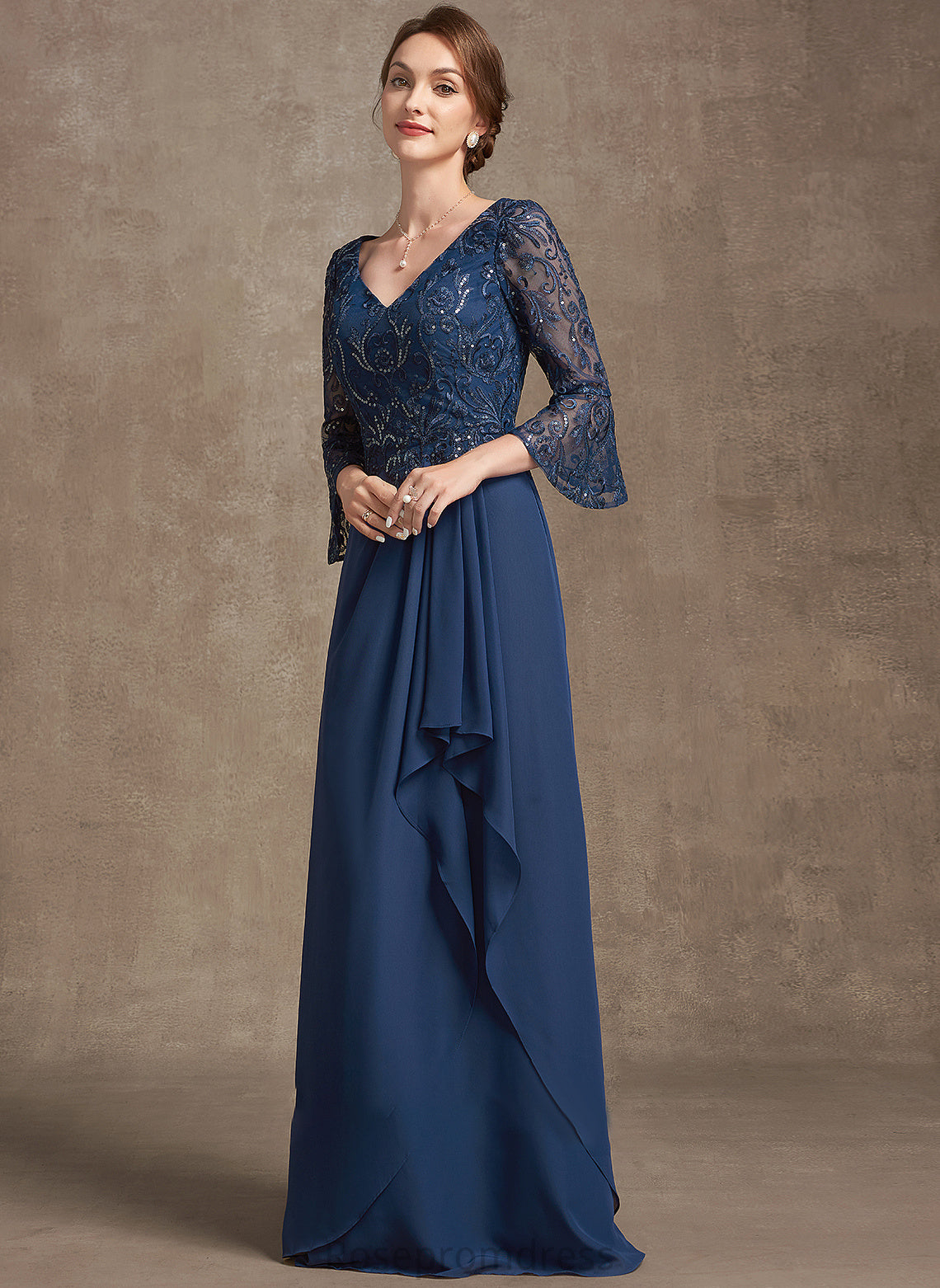 Mother Floor-Length Lailah Sequins Ruffles Lace V-neck Dress the A-Line Mother of the Bride Dresses Bride of With Cascading Chiffon