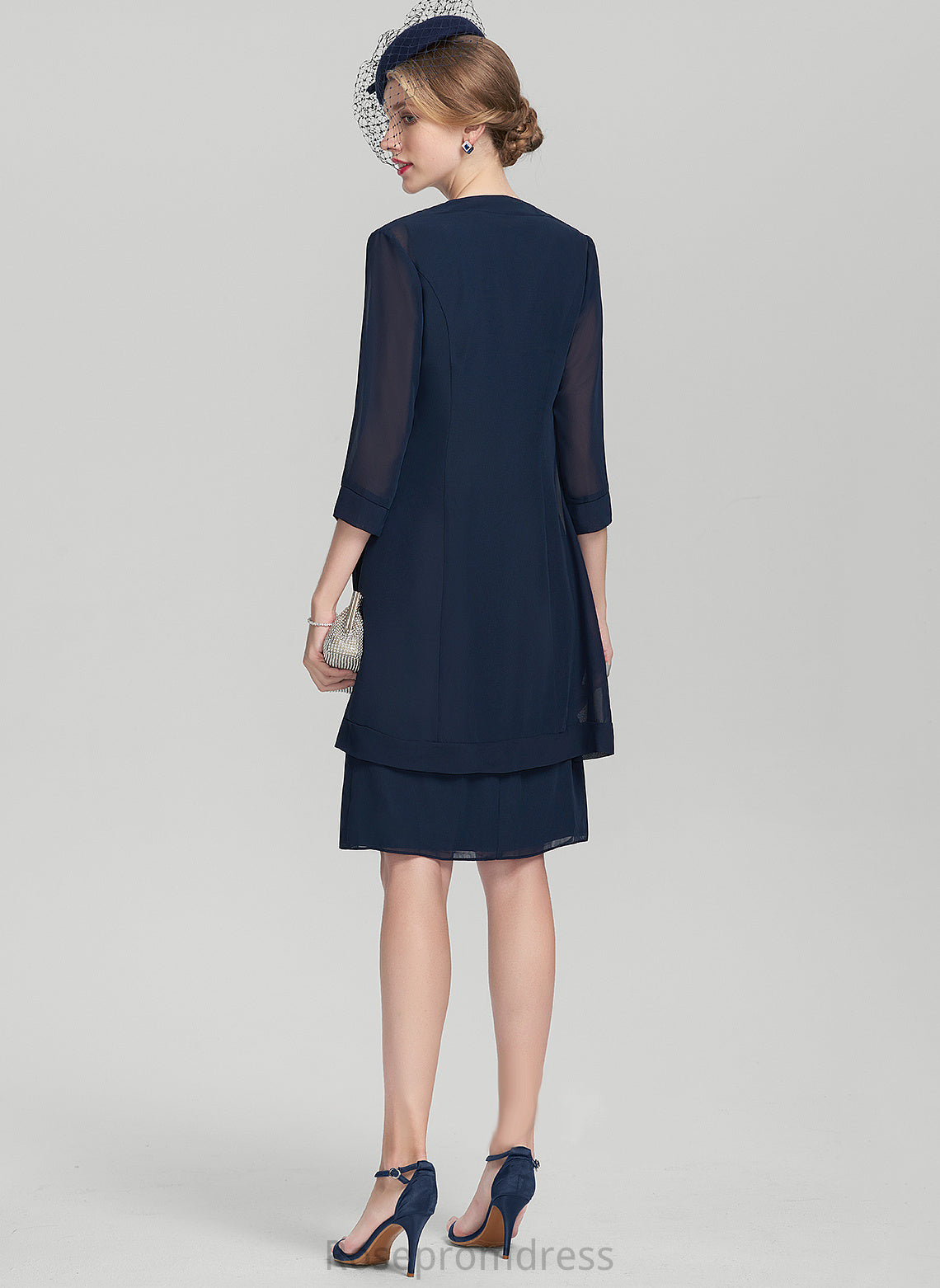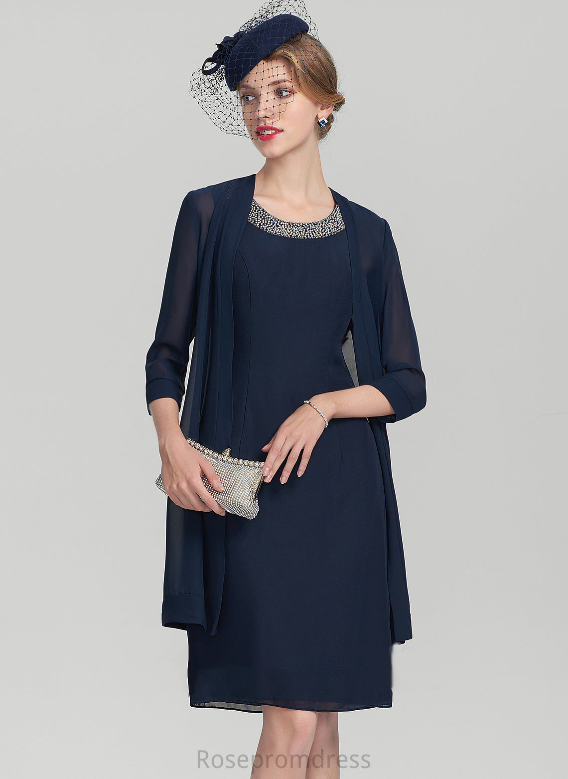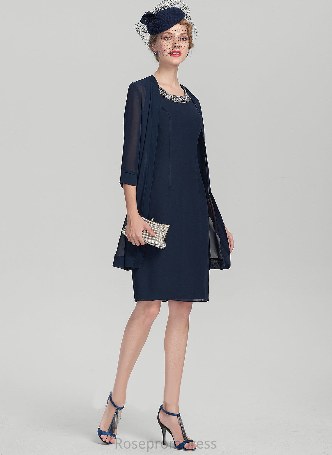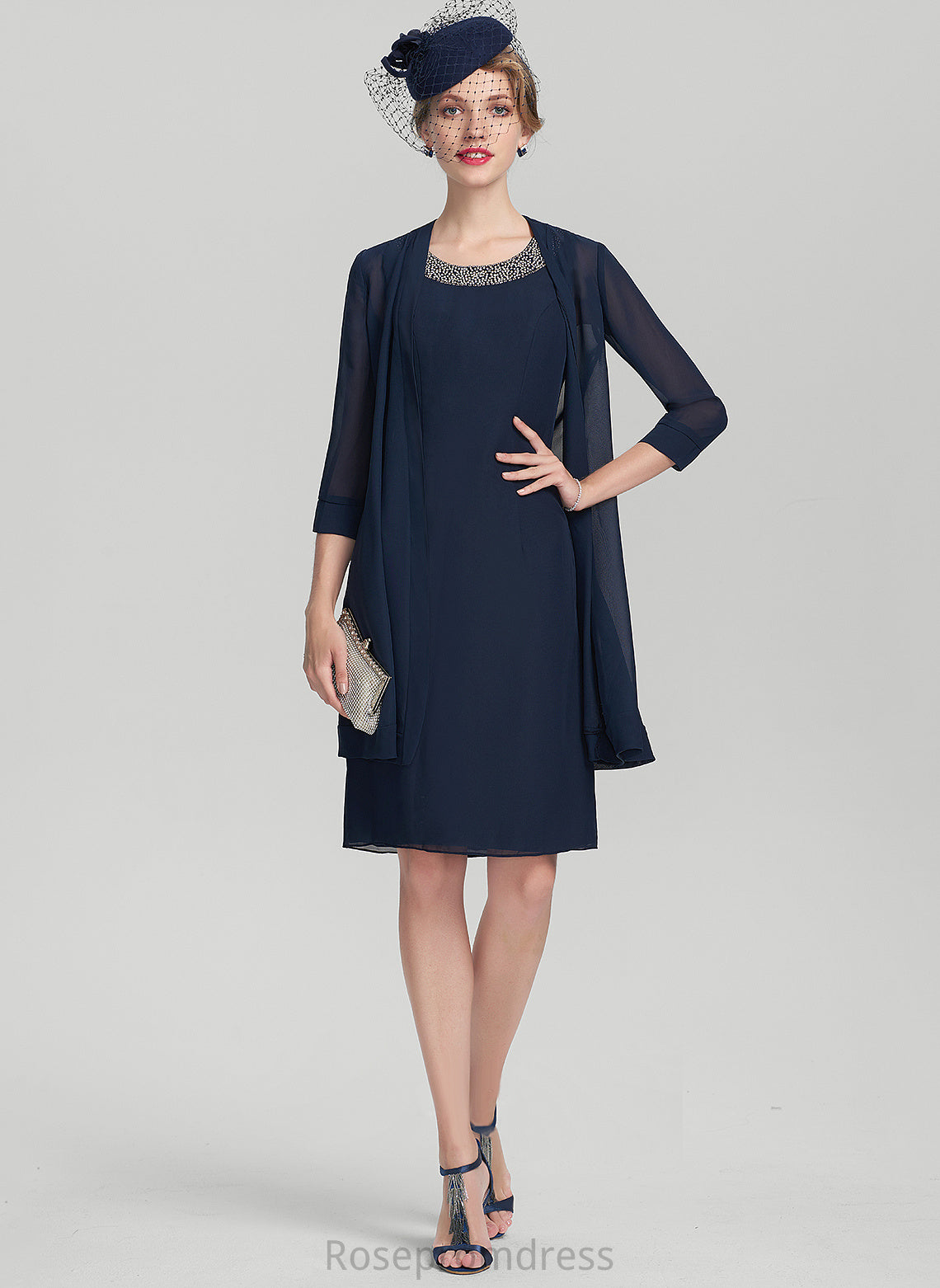 Mother Mother of the Bride Dresses Neck Dakota A-Line Chiffon Beading Scoop Bride Knee-Length Dress the of With
