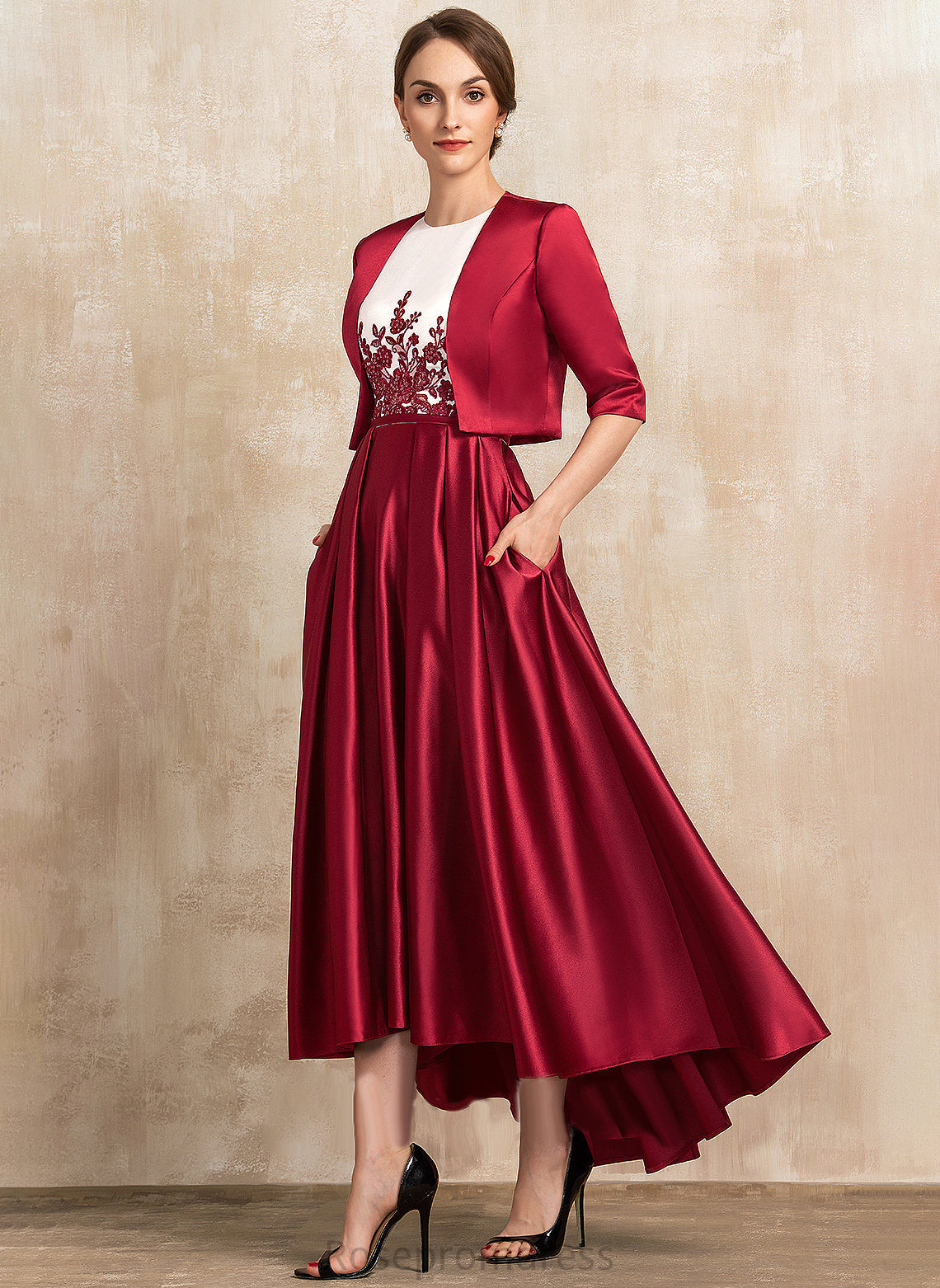Mother of the Bride Dresses A-Line Lace Sequins the Satin of Scoop Mother Neck Bianca Pockets With Dress Ruffle Bride Asymmetrical