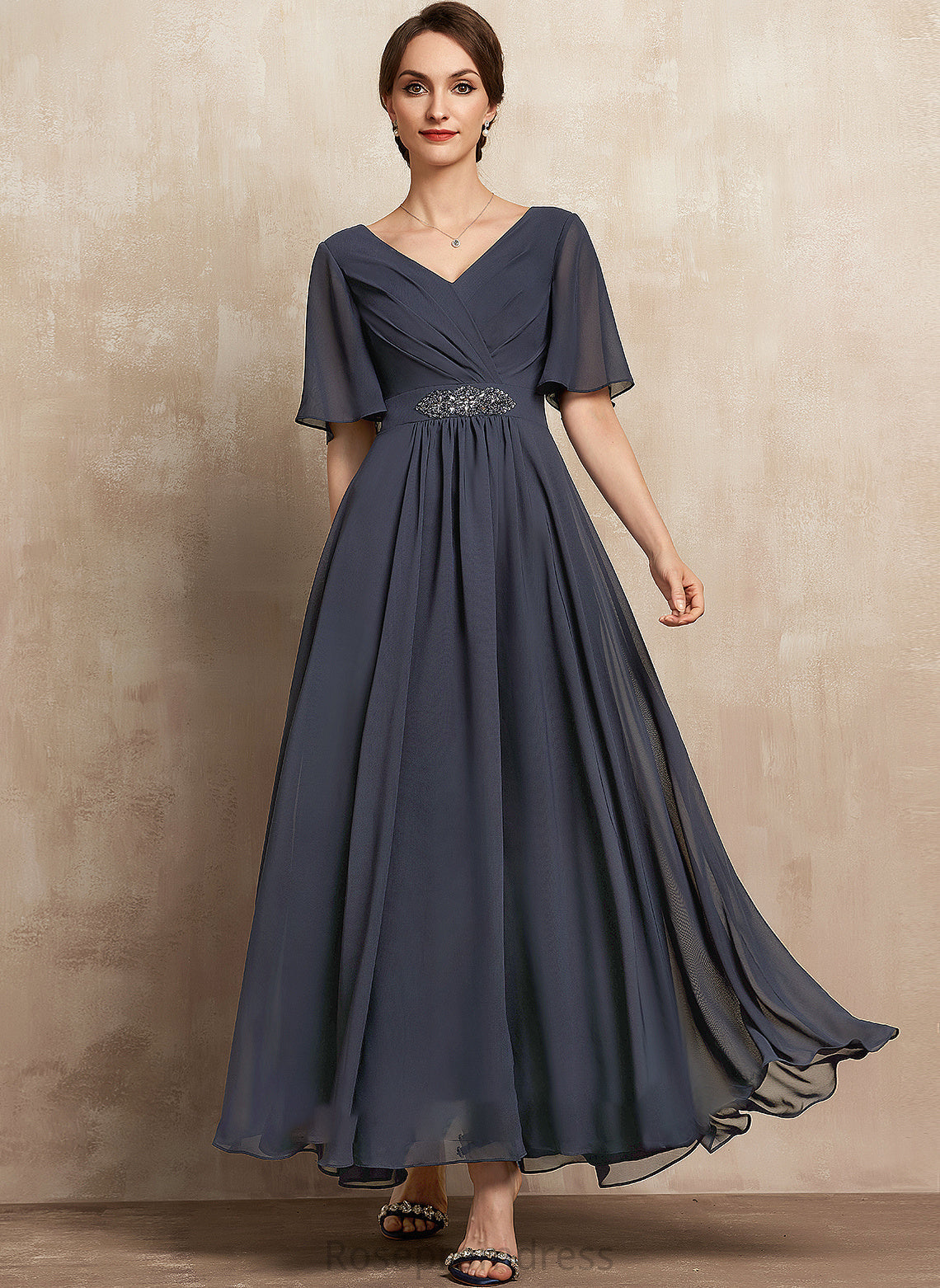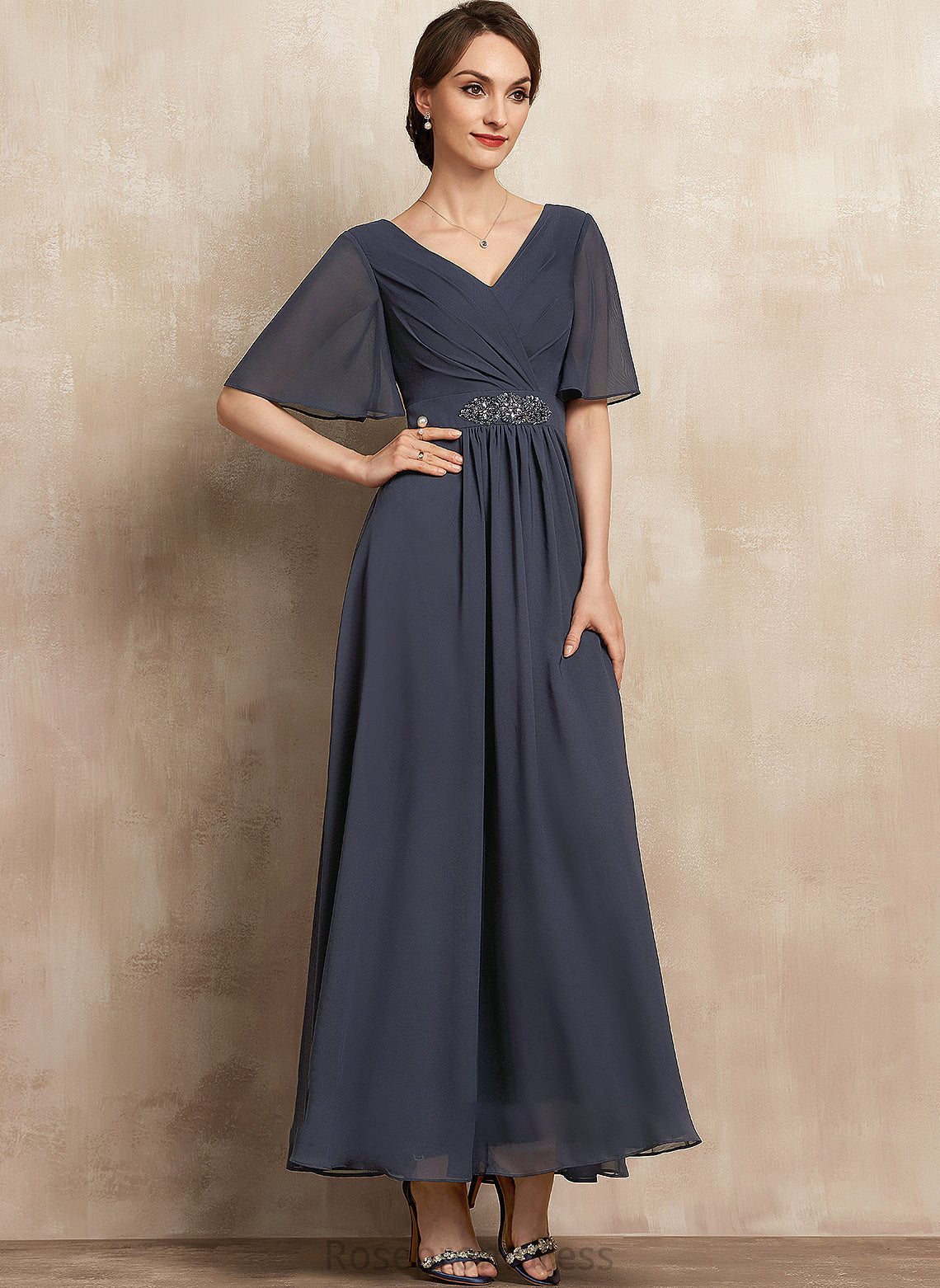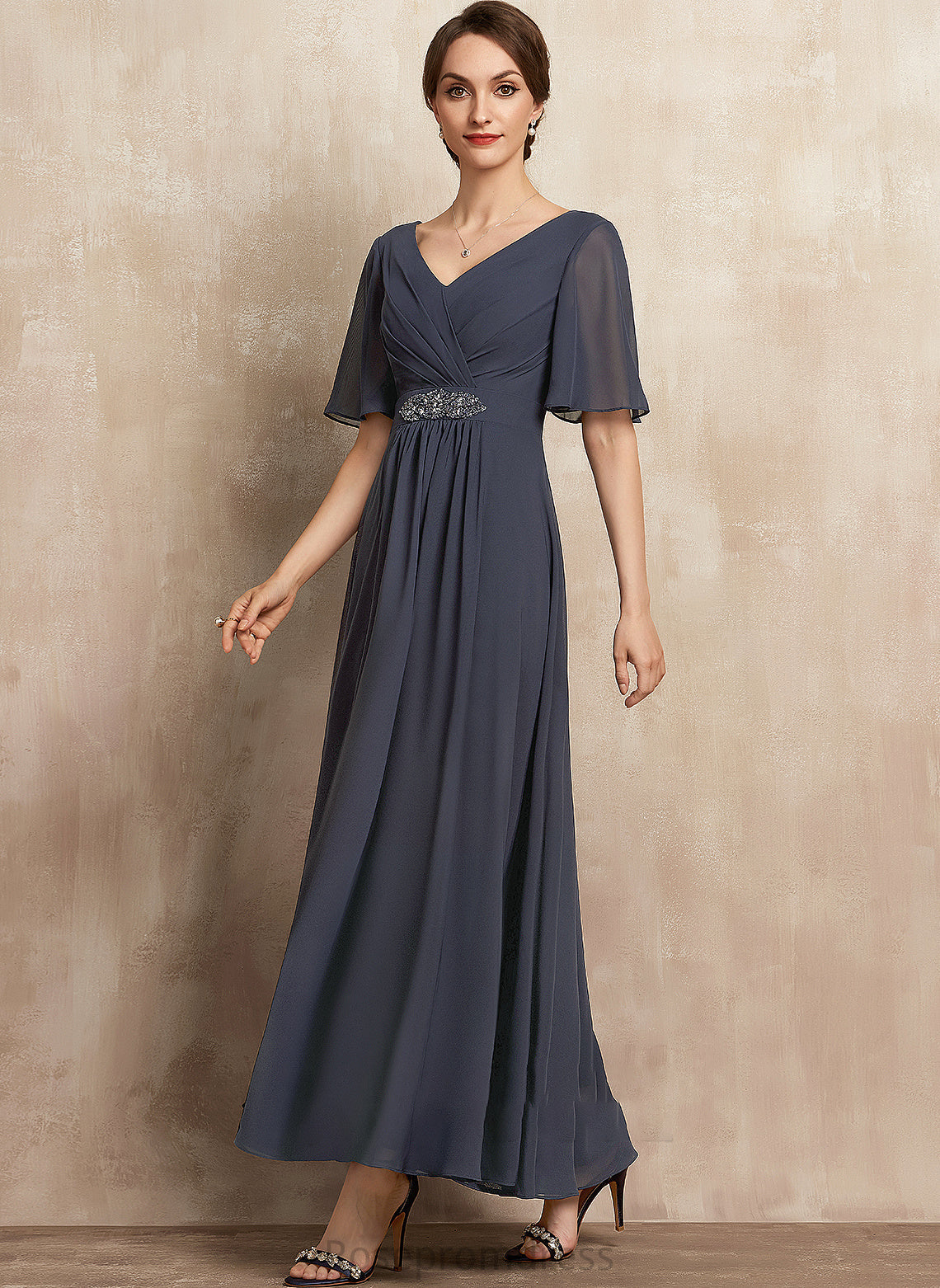 Mother of the Bride Dresses A-Line Parker Ankle-Length of Chiffon Sequins With V-neck Dress Ruffle the Bride Beading Mother