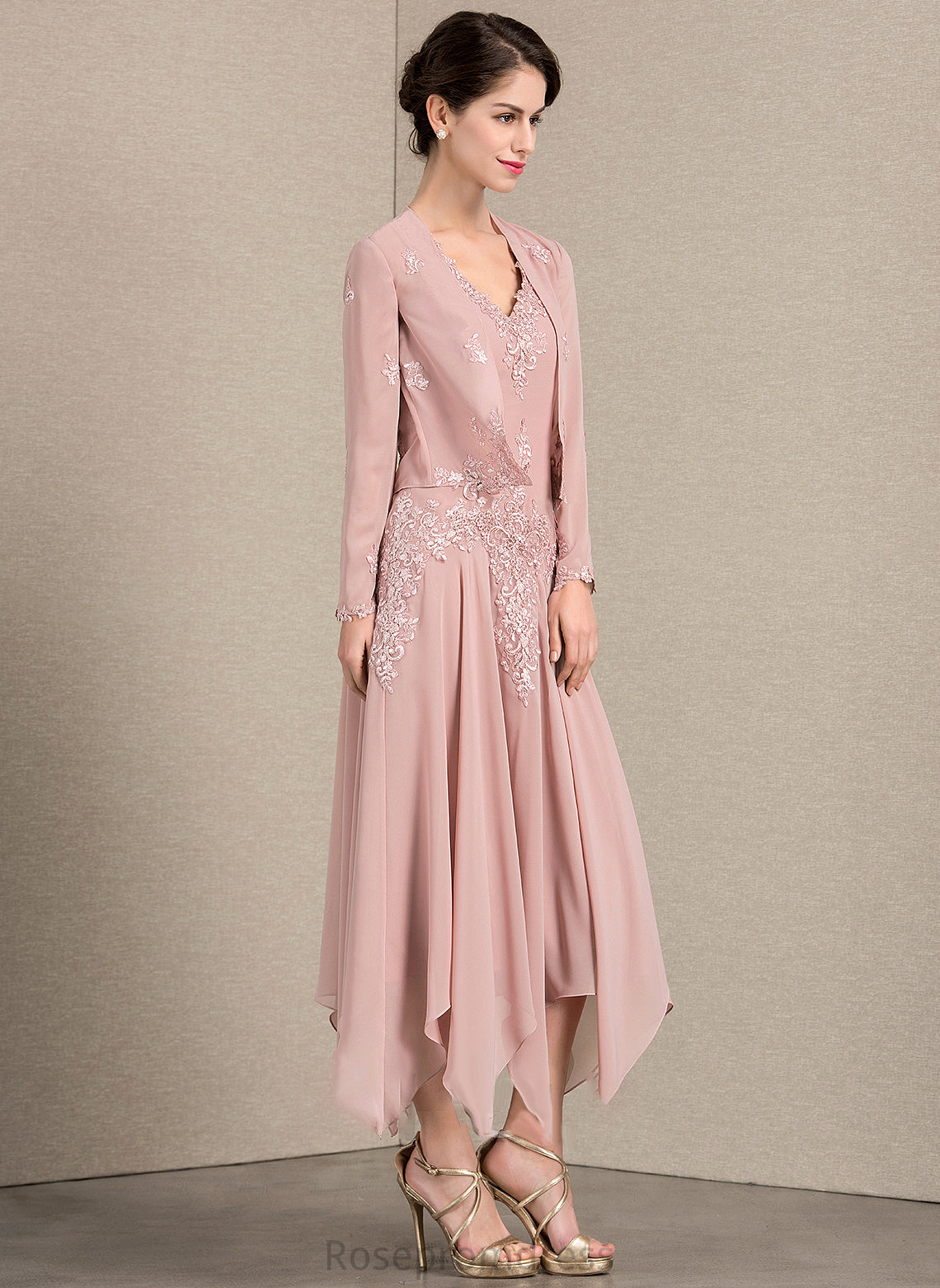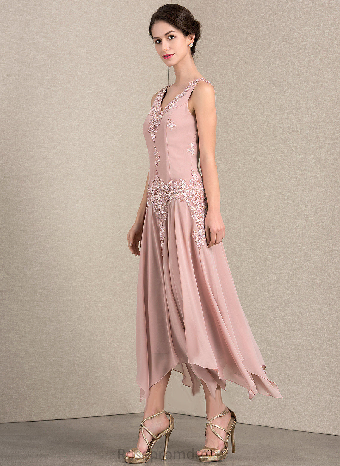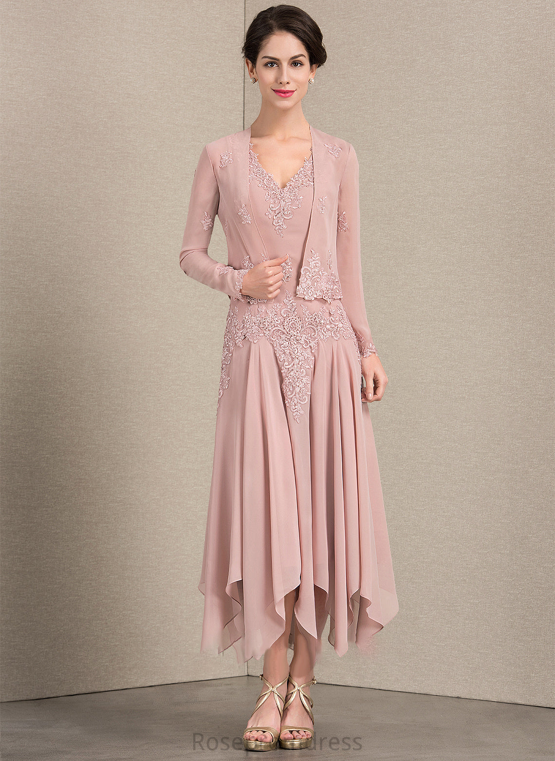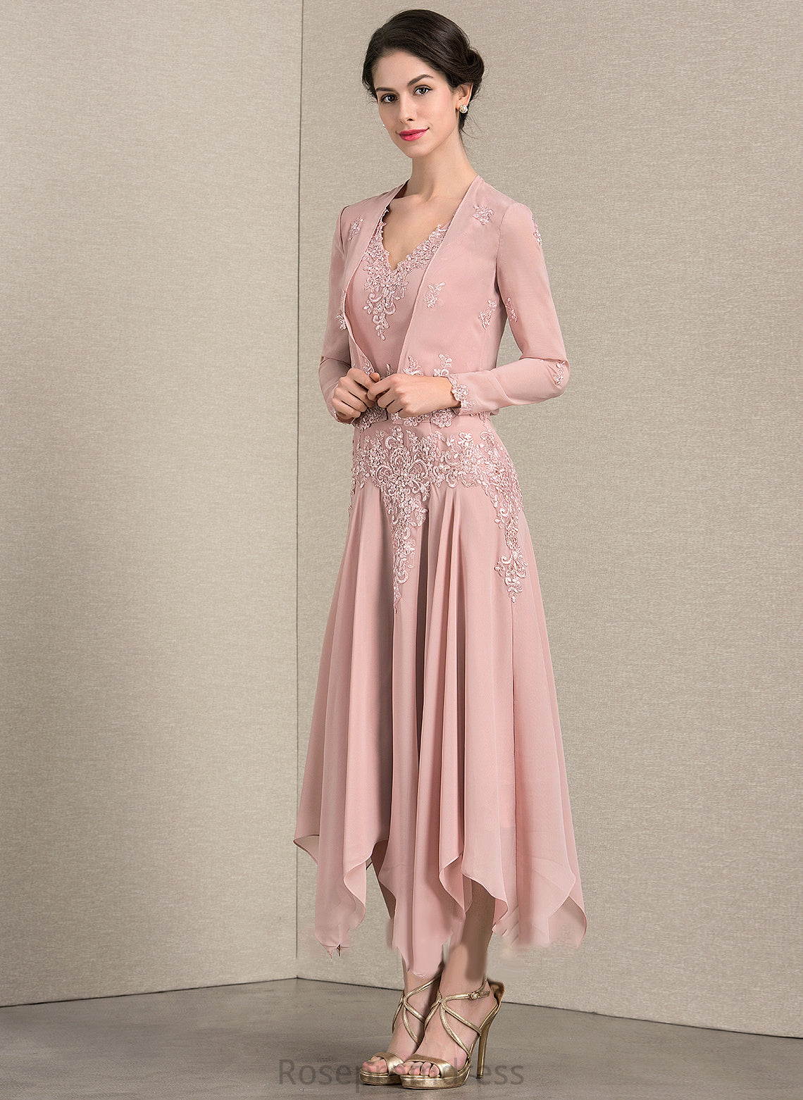 Mother of the Bride Dresses Bride Chiffon With Dress Sequins Carissa the V-neck A-Line Mother Appliques Lace Ankle-Length of