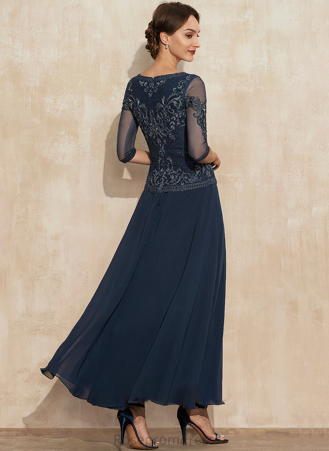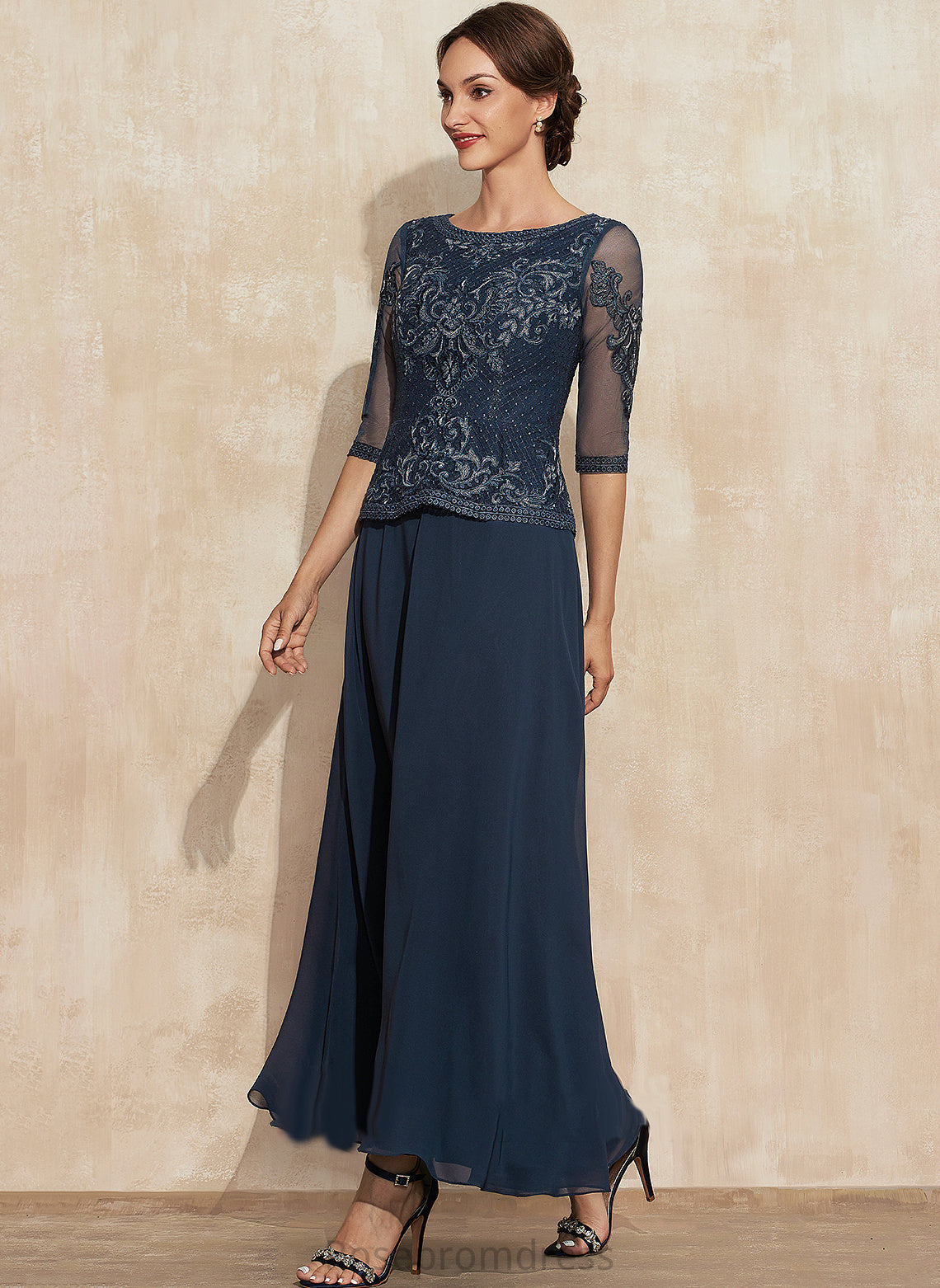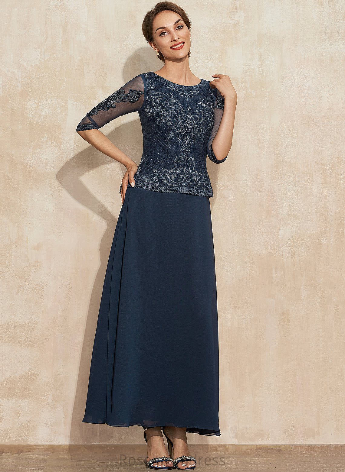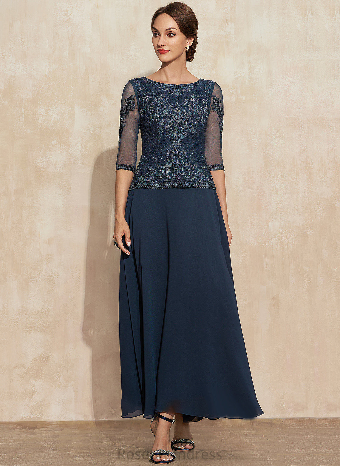 Mother of the Bride Dresses Chiffon Bride of Dress A-Line Mother Ankle-Length Lace Scoop Aubrie the Neck