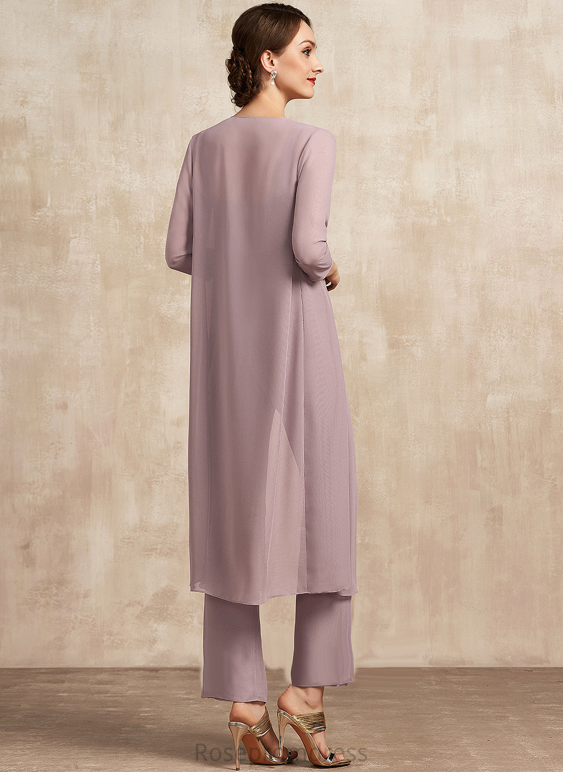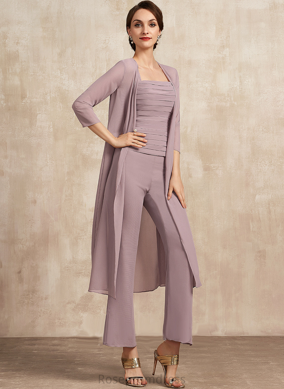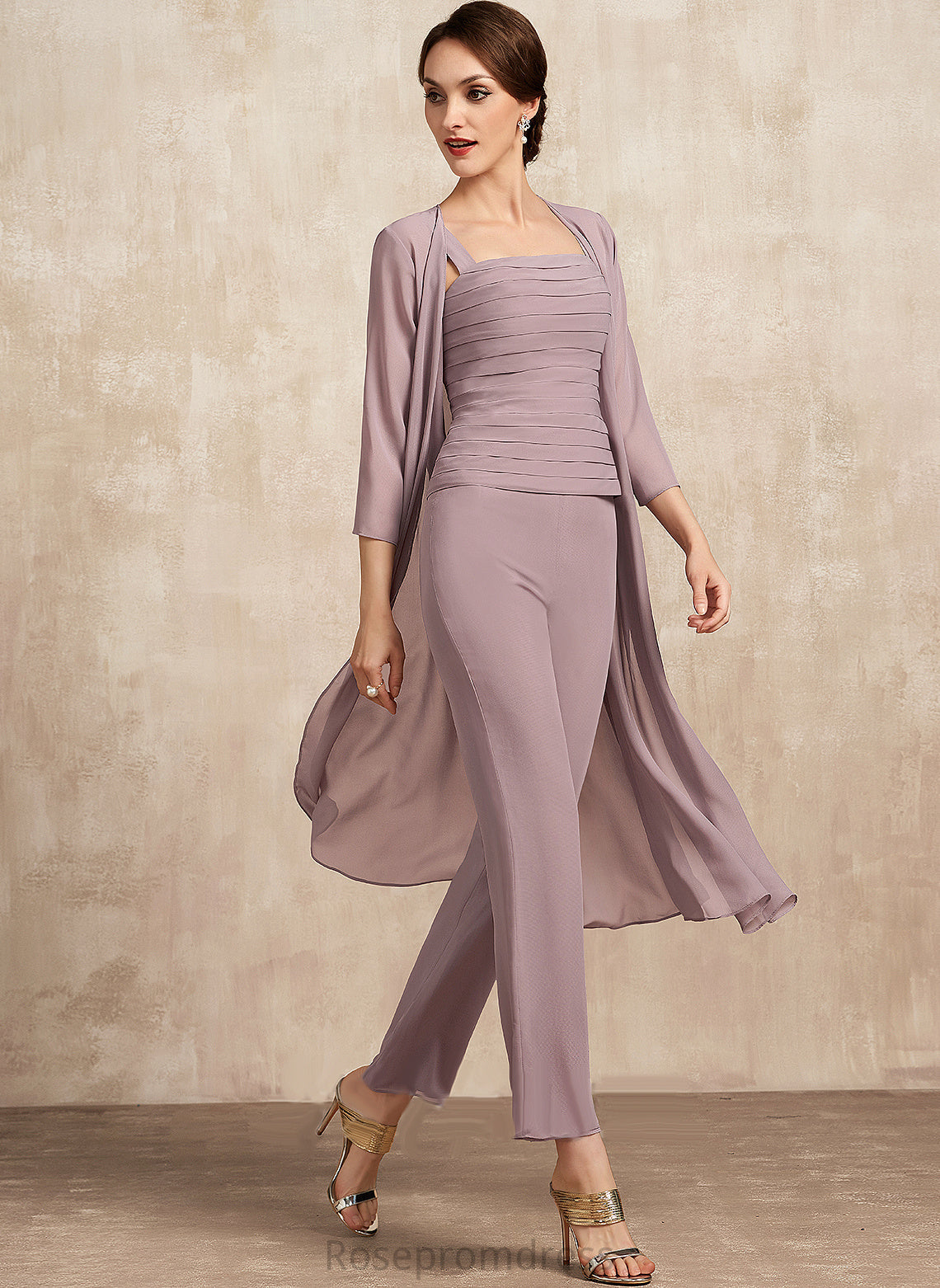 Mother of the Bride Dresses Jumpsuit/Pantsuit Bride Ankle-Length With the Neckline Ruffle Dress of Square Izabelle Chiffon Mother