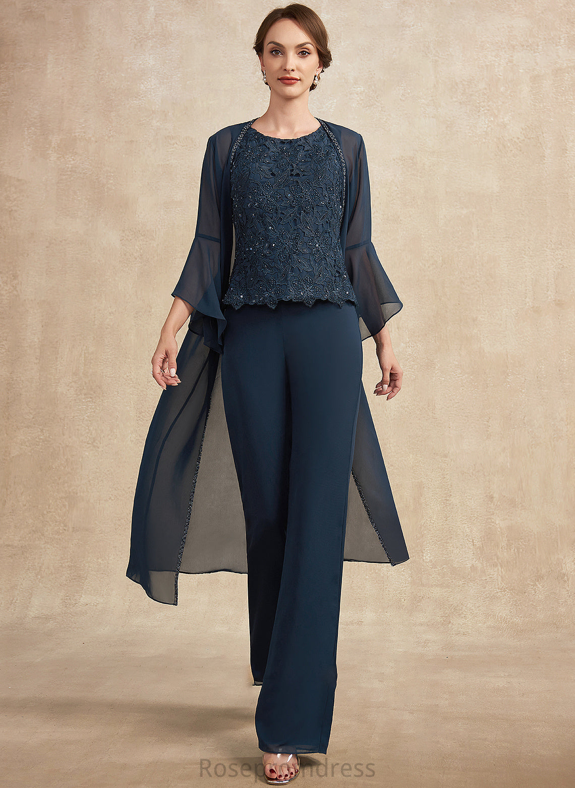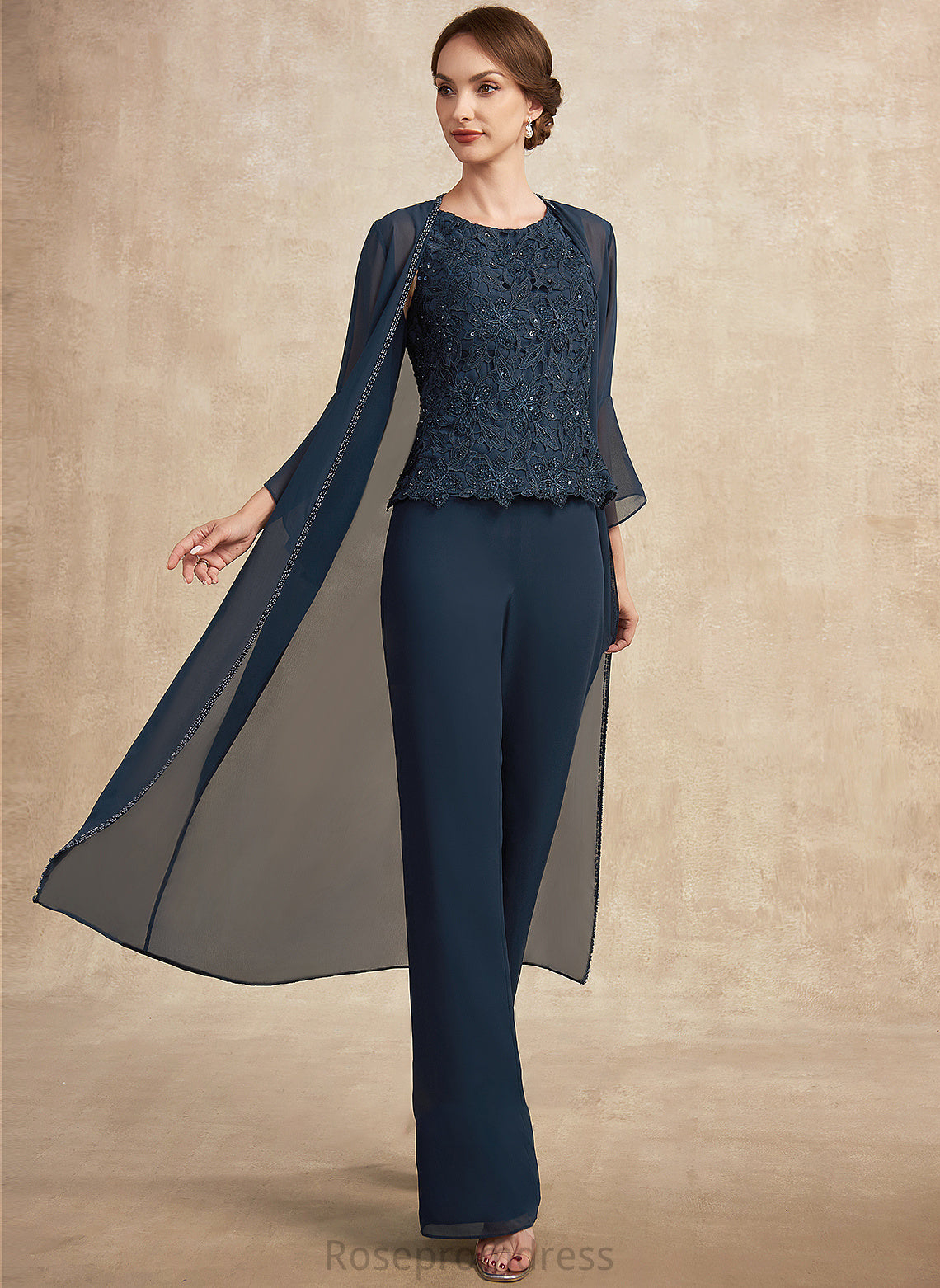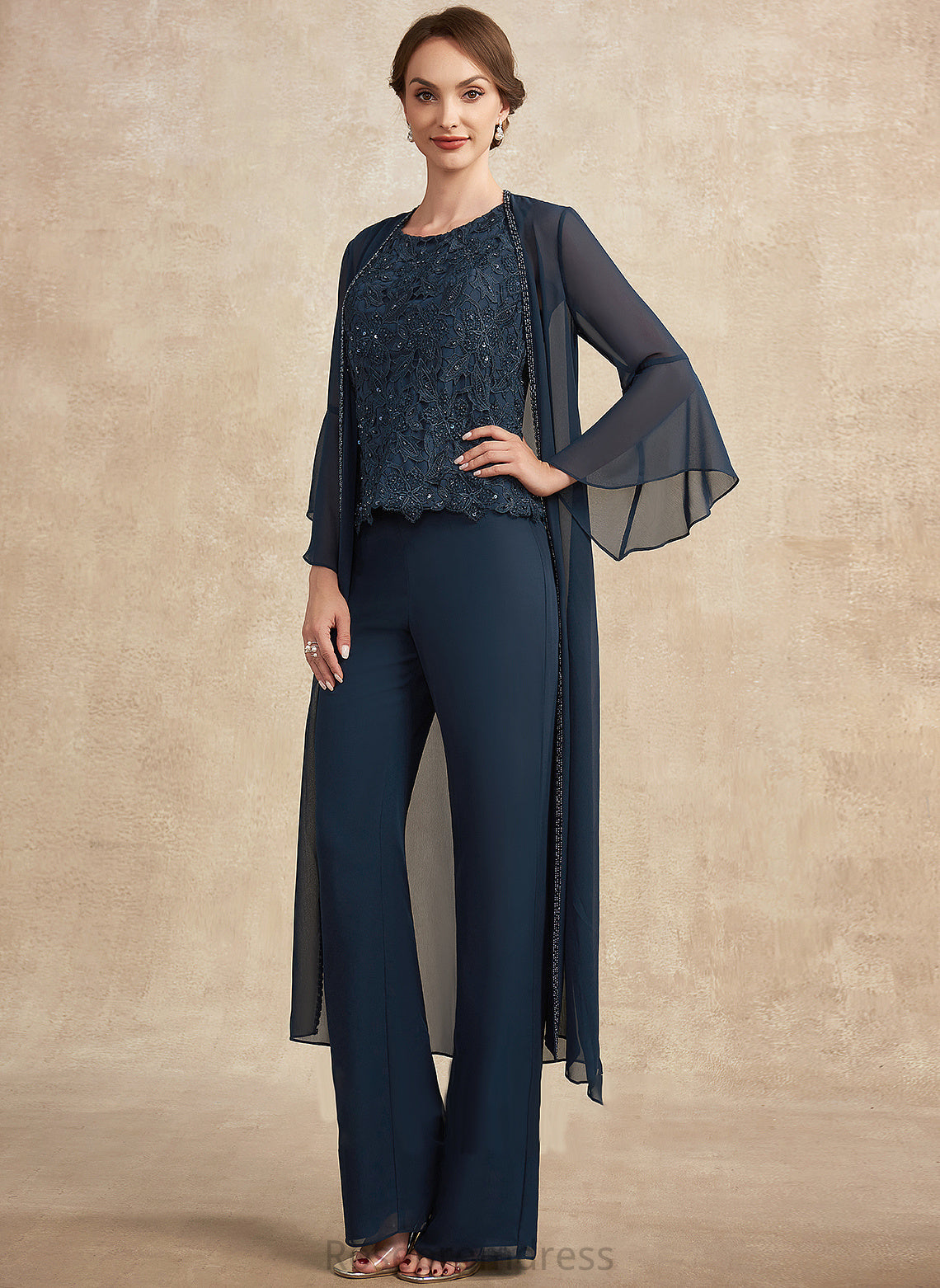 Mother of the Bride Dresses Lace the Jumpsuit/Pantsuit Scoop Mother Neck Bride Chiffon With Floor-Length Beading Bria Sequins of Dress