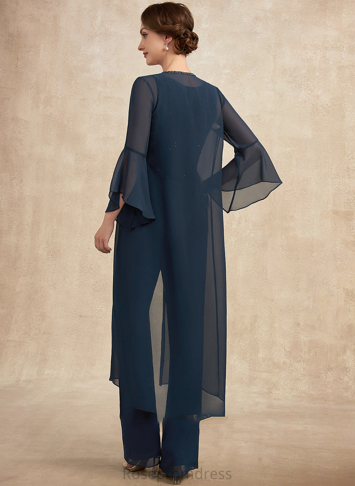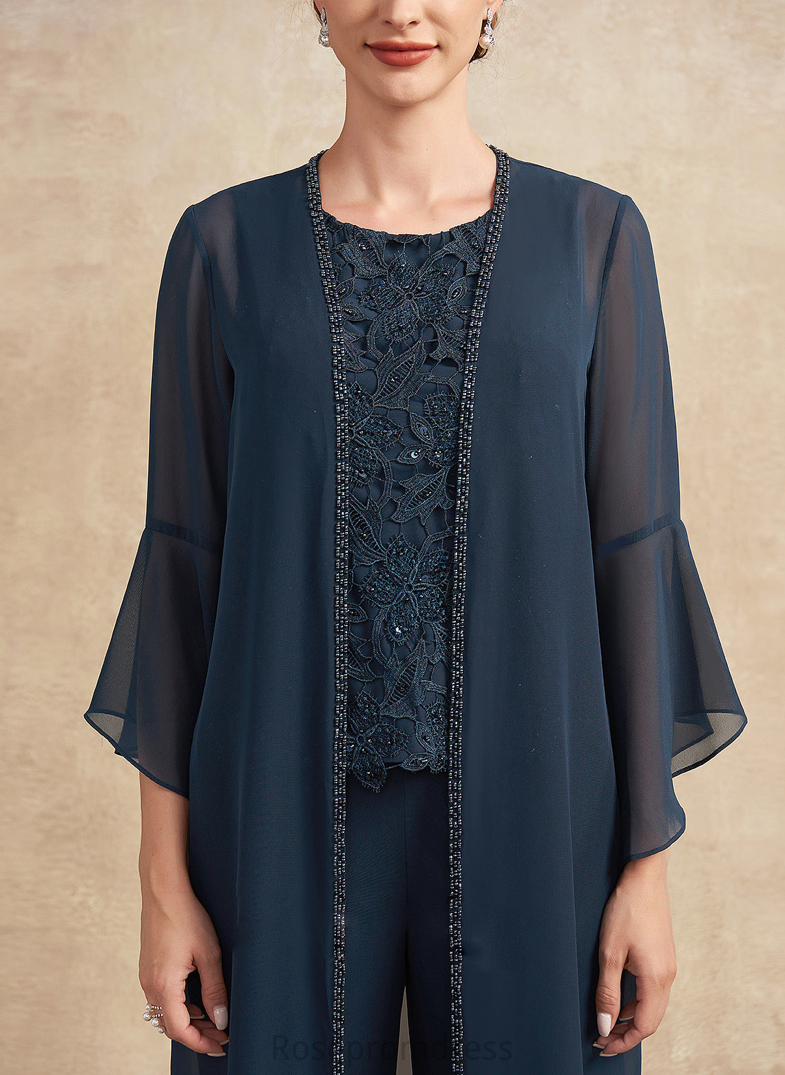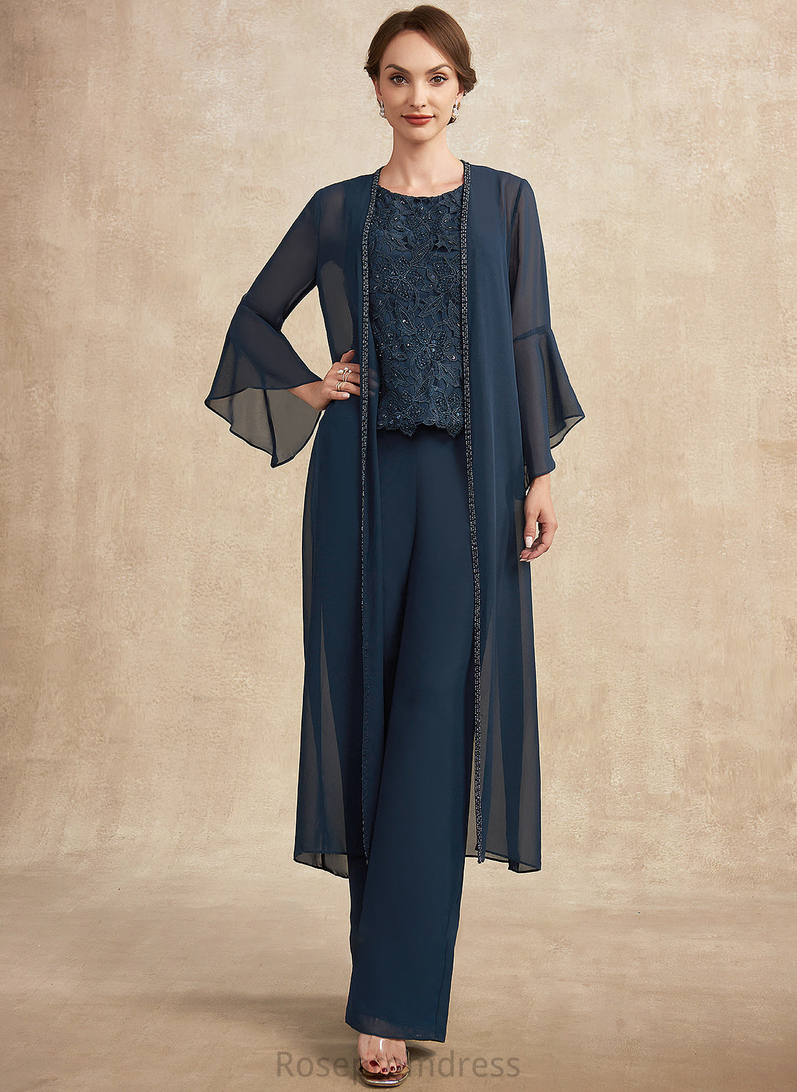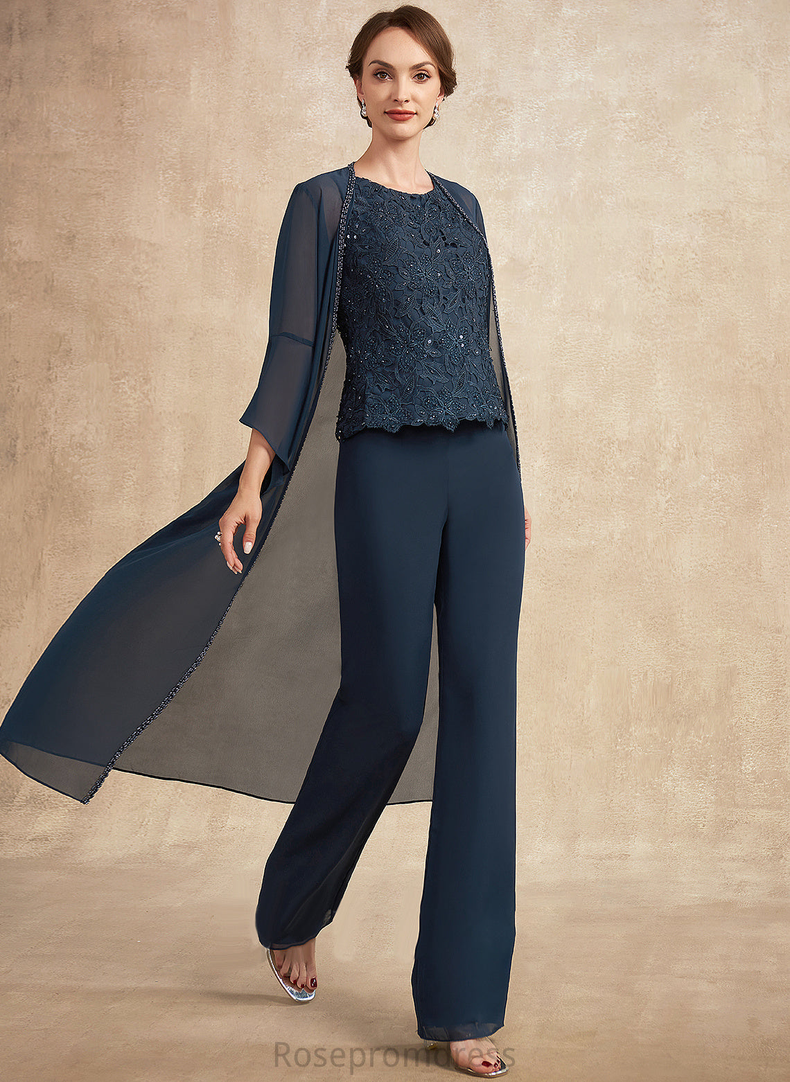 Mother of the Bride Dresses Lace the Jumpsuit/Pantsuit Scoop Mother Neck Bride Chiffon With Floor-Length Beading Bria Sequins of Dress