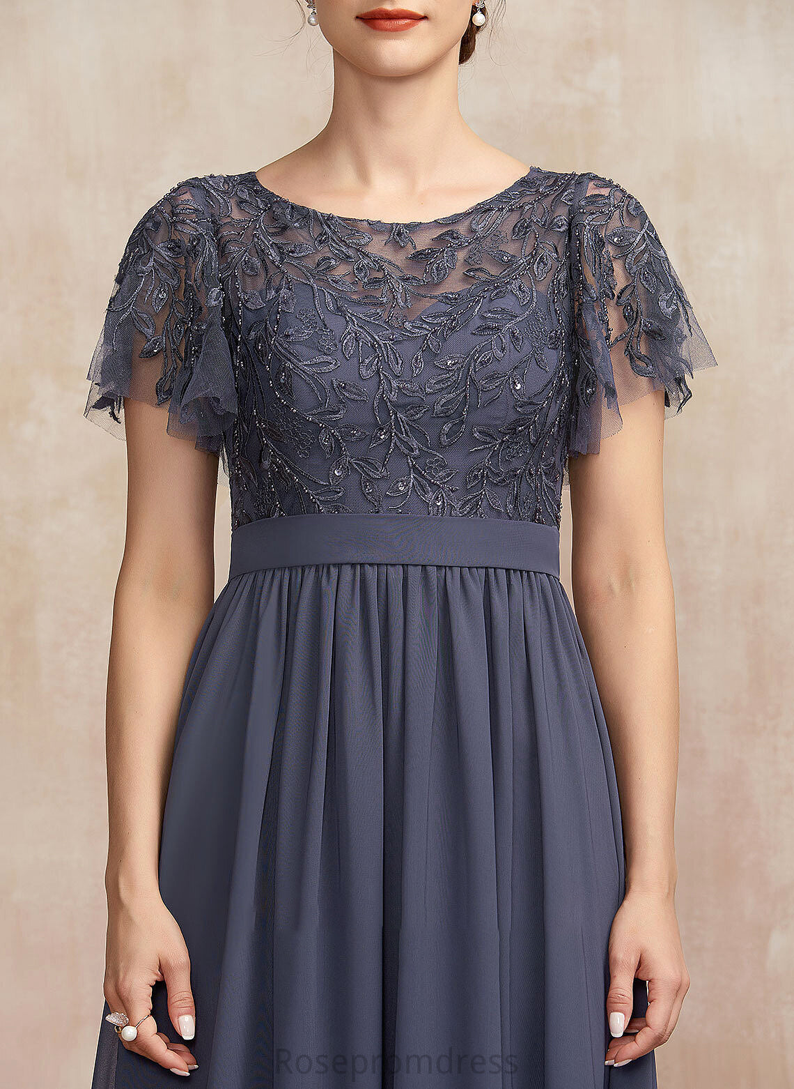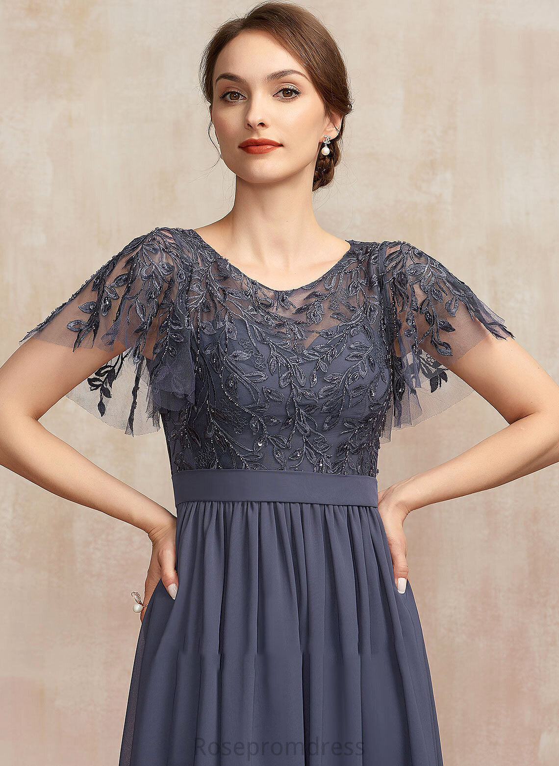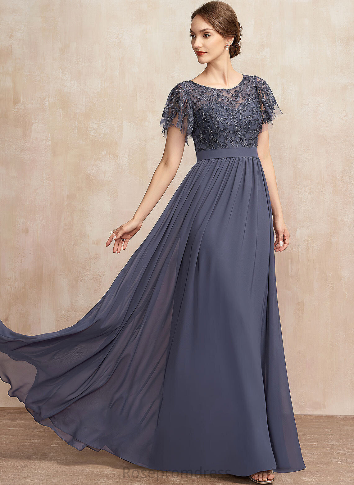 Mother of the Bride Dresses Mother Dress Scoop Neck Chiffon Nadia Sequins With Lace A-Line Bride the Floor-Length of
