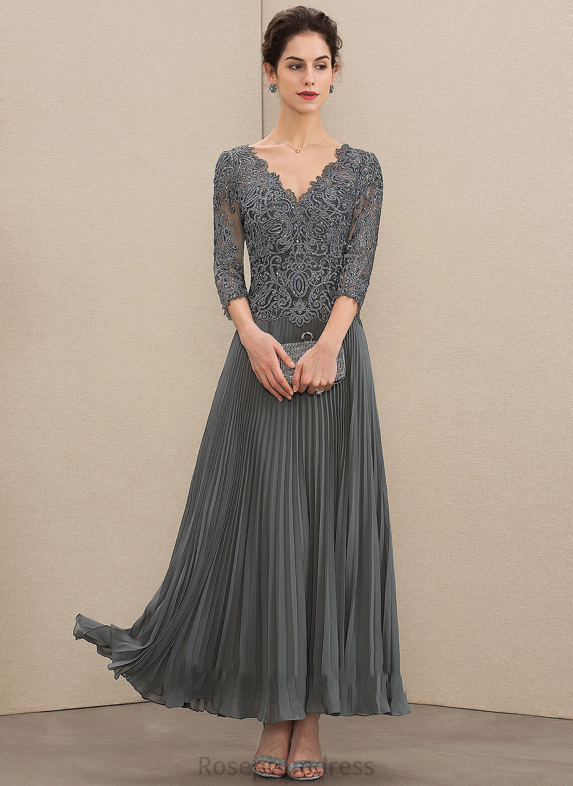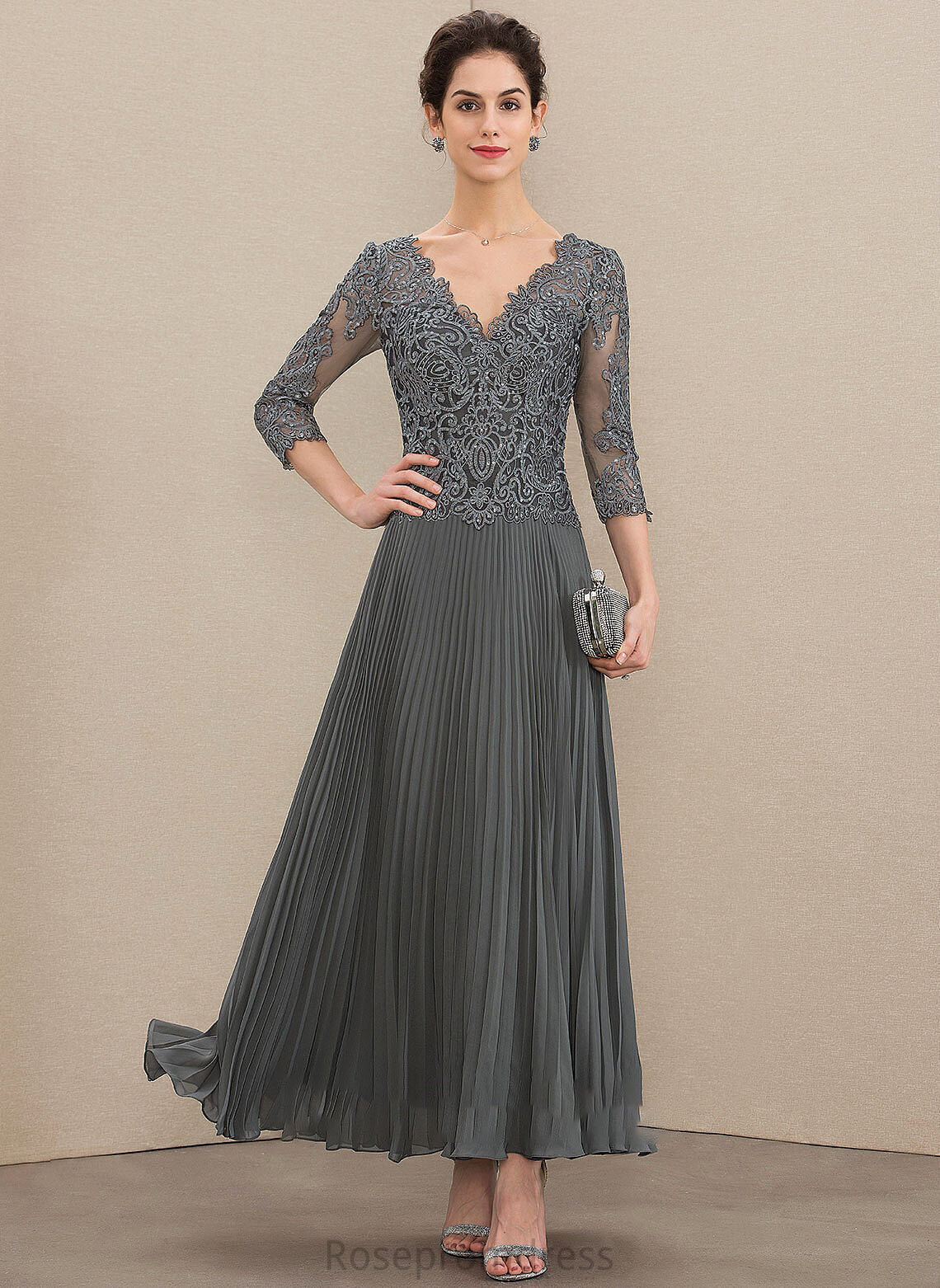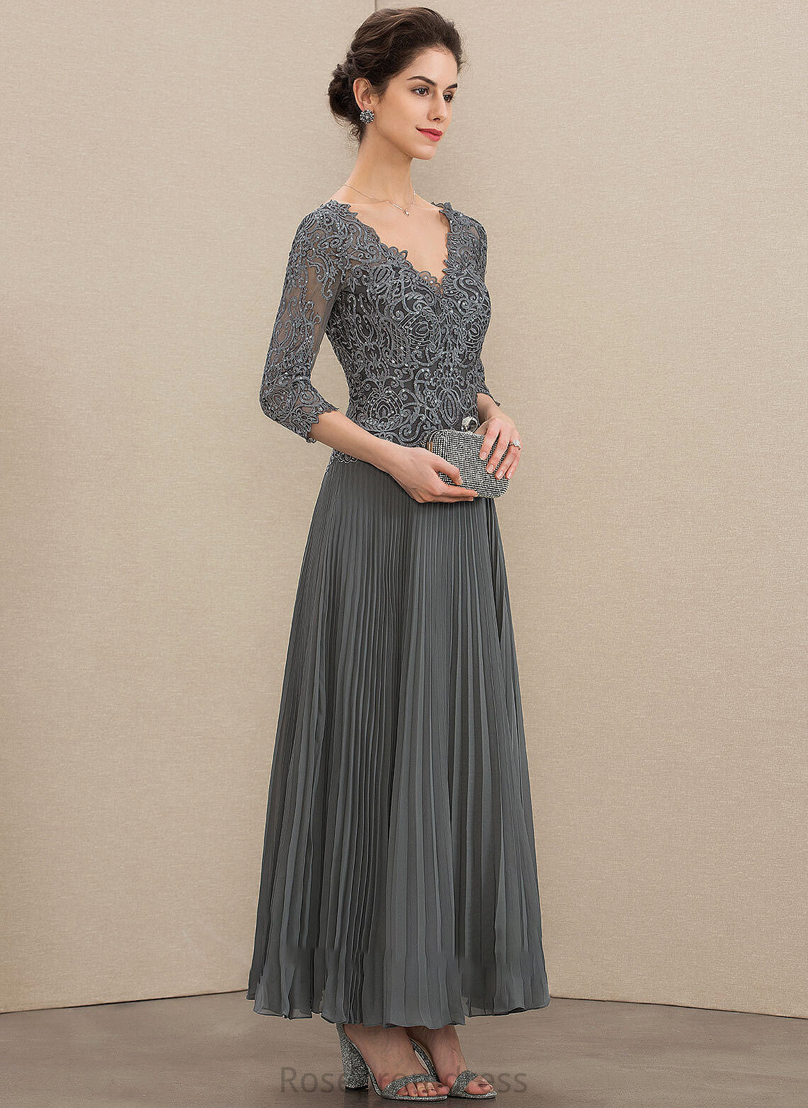 Mother of the Bride Dresses Mother Lace Bride Chiffon Dress V-neck A-Line Cristina Ankle-Length the Pleated Sequins of With