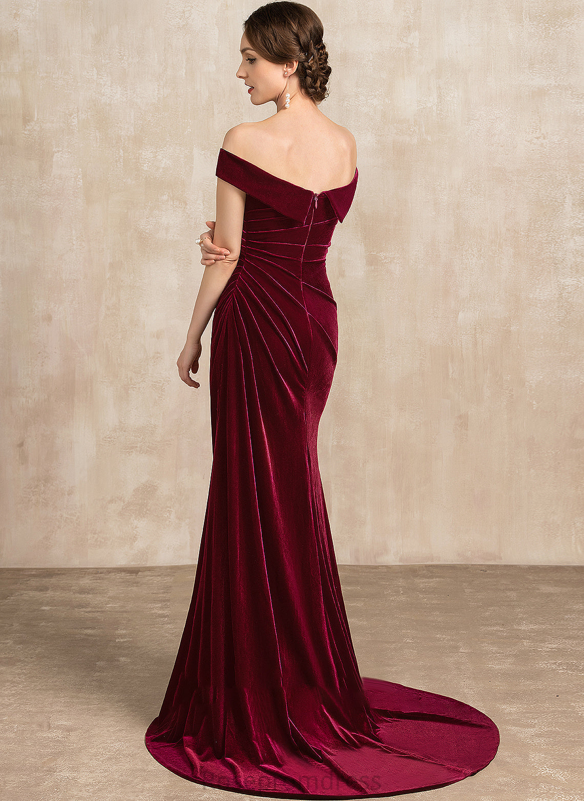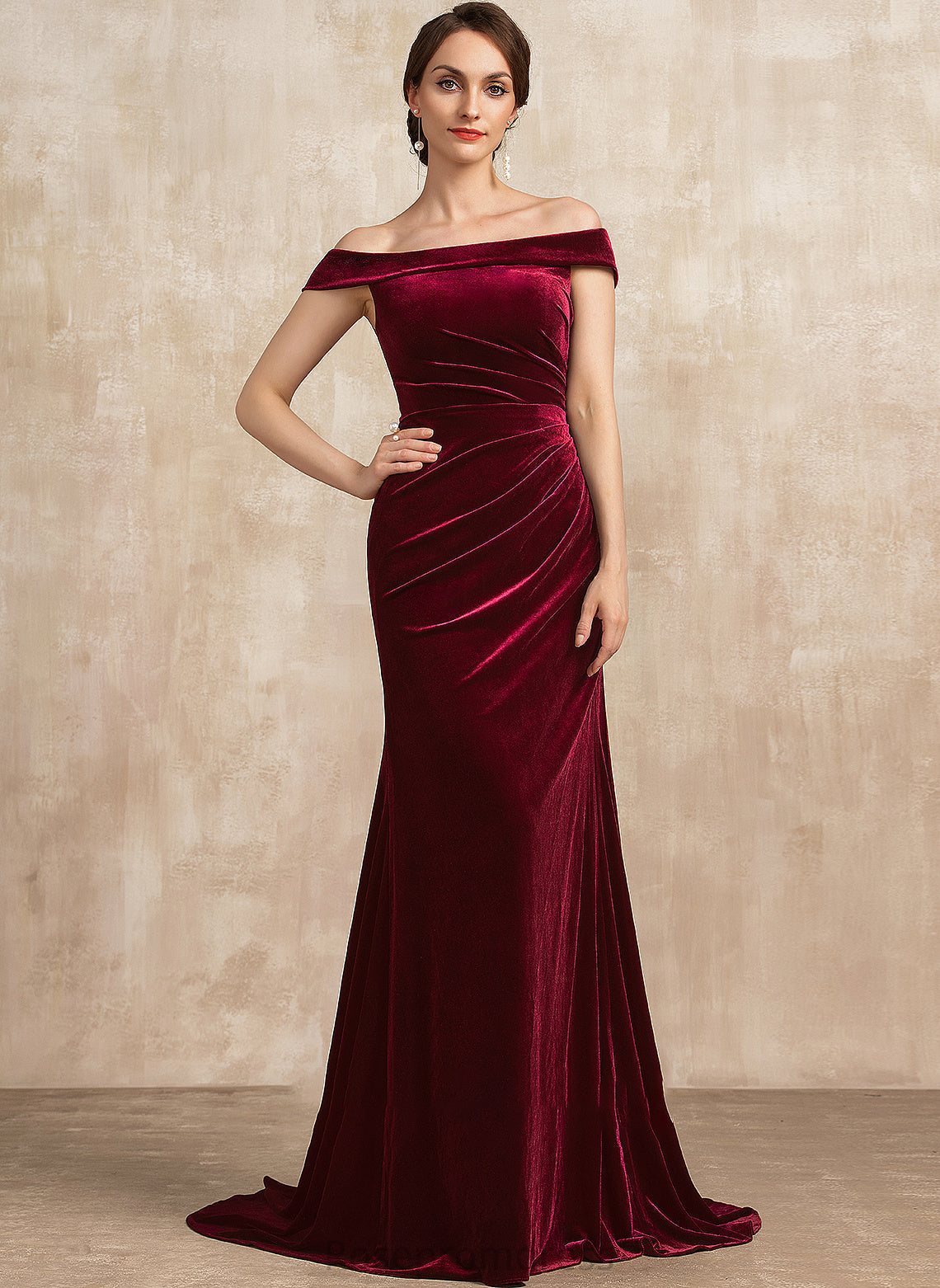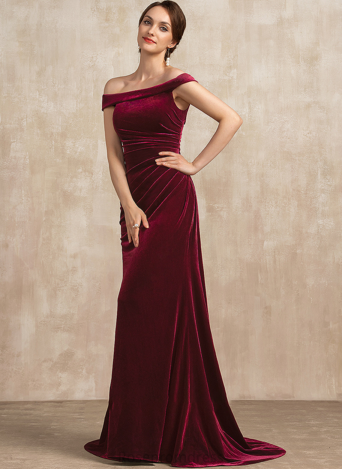 Mother of the Bride Dresses of Izabella Mother Dress the With Trumpet/Mermaid Train Velvet Off-the-Shoulder Bride Ruffle Sweep