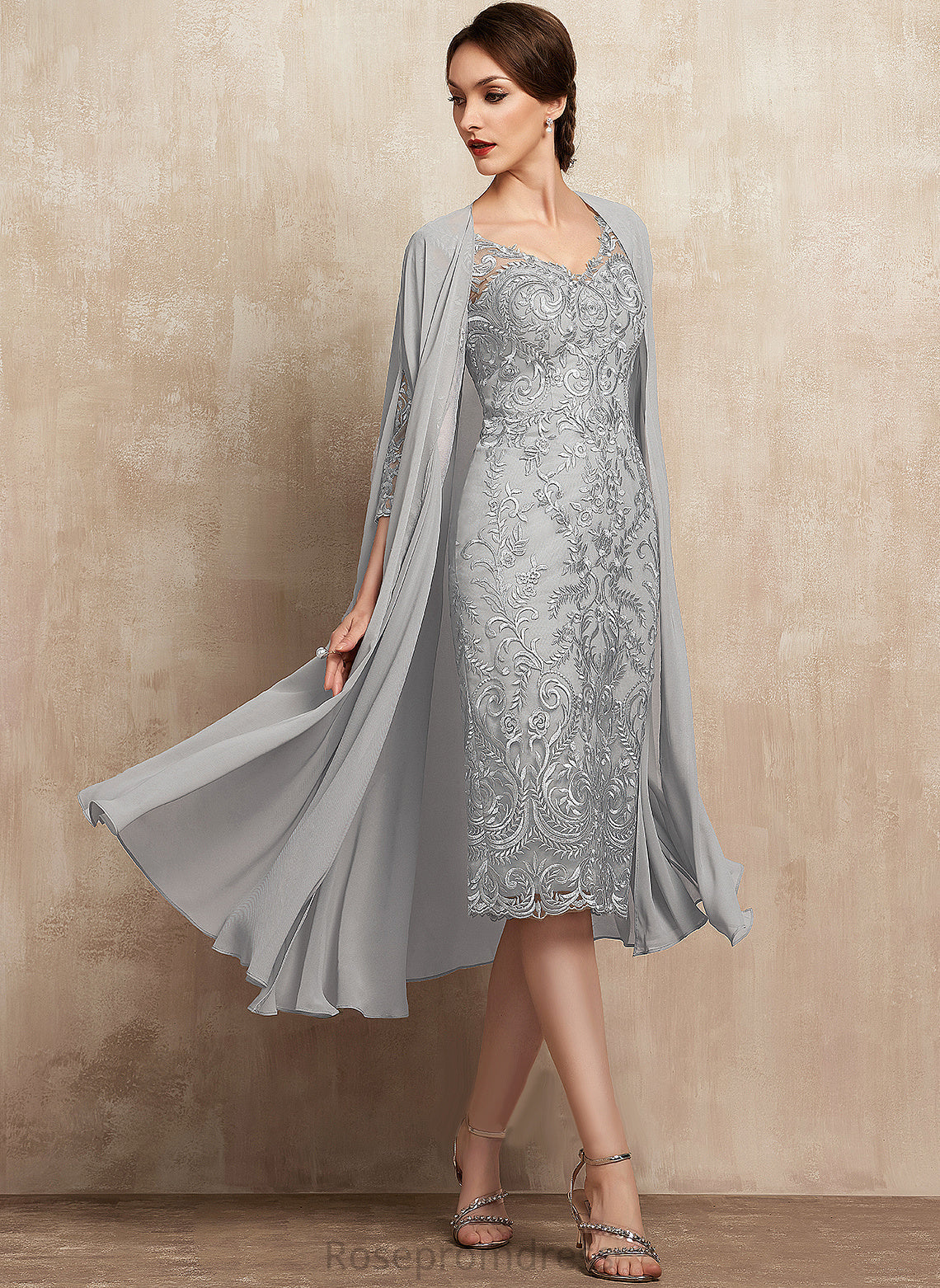Mother of the Bride Dresses Sheath/Column Renata Bride V-neck Knee-Length Dress Lace Mother of the