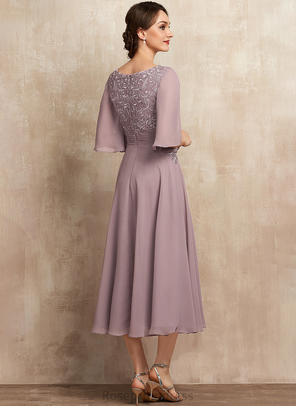 Mother of the Bride Dresses the of Tea-Length Mother Chiffon Bride Lace Scoop Dress A-Line Neck Meghan