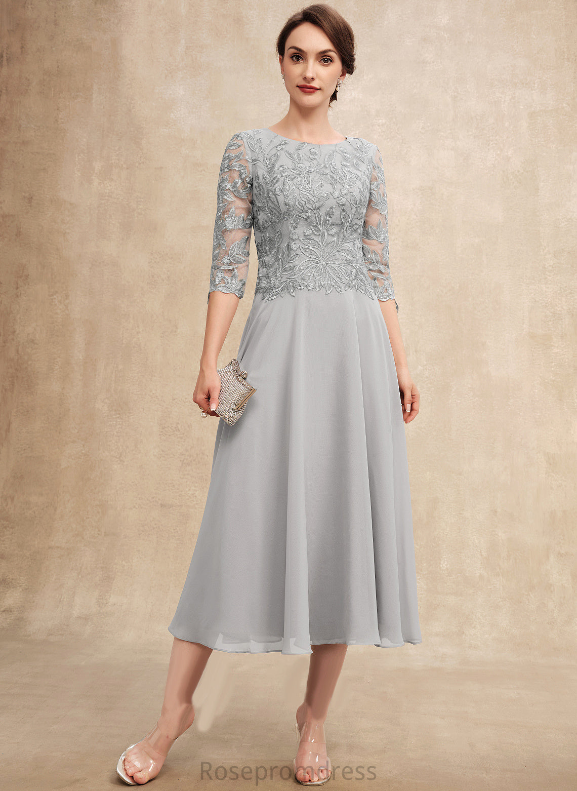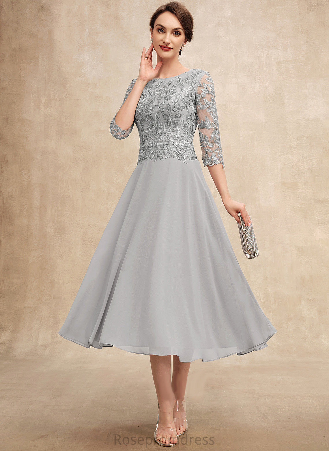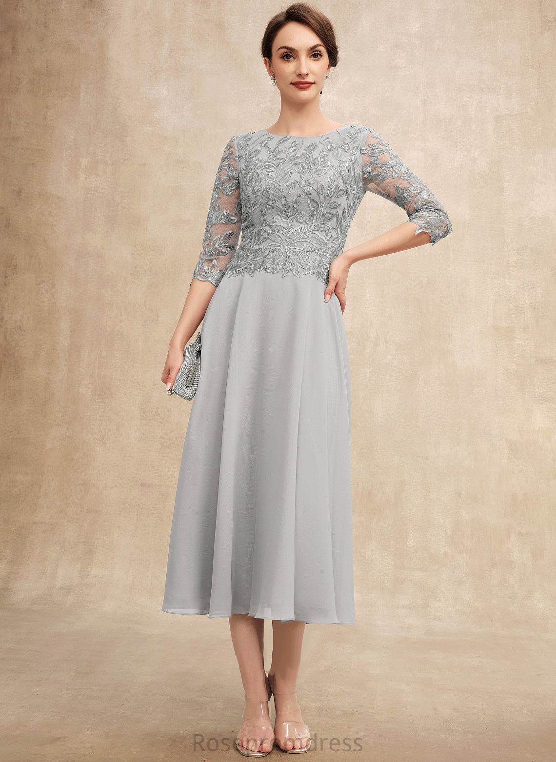 Mother With Bride Scoop of Chiffon Mother of the Bride Dresses Jeanie Sequins Lace the A-Line Tea-Length Dress Neck