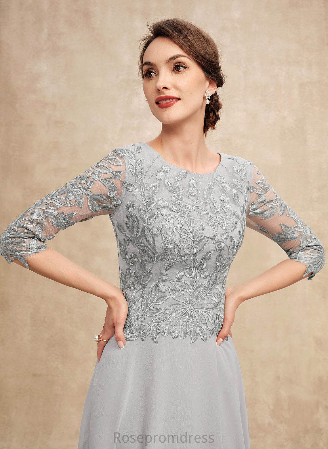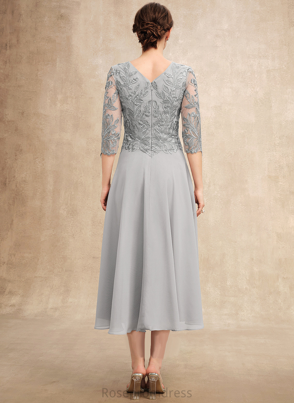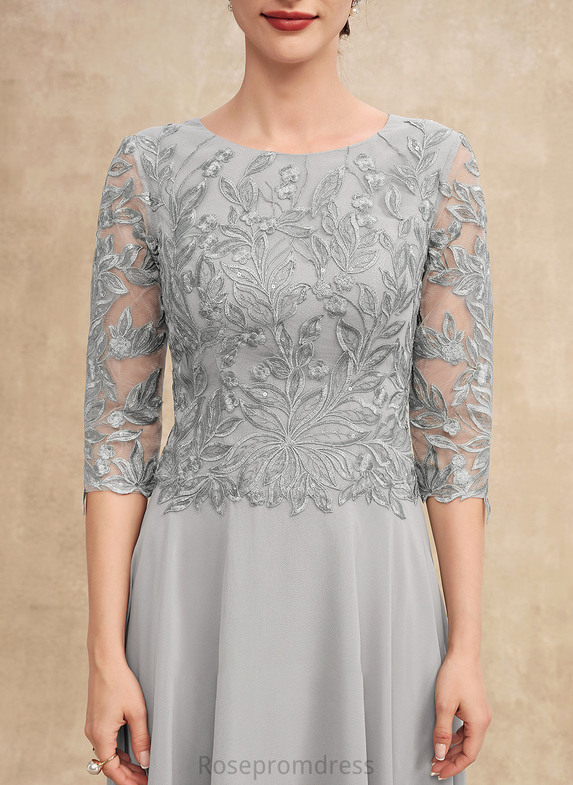 Mother With Bride Scoop of Chiffon Mother of the Bride Dresses Jeanie Sequins Lace the A-Line Tea-Length Dress Neck