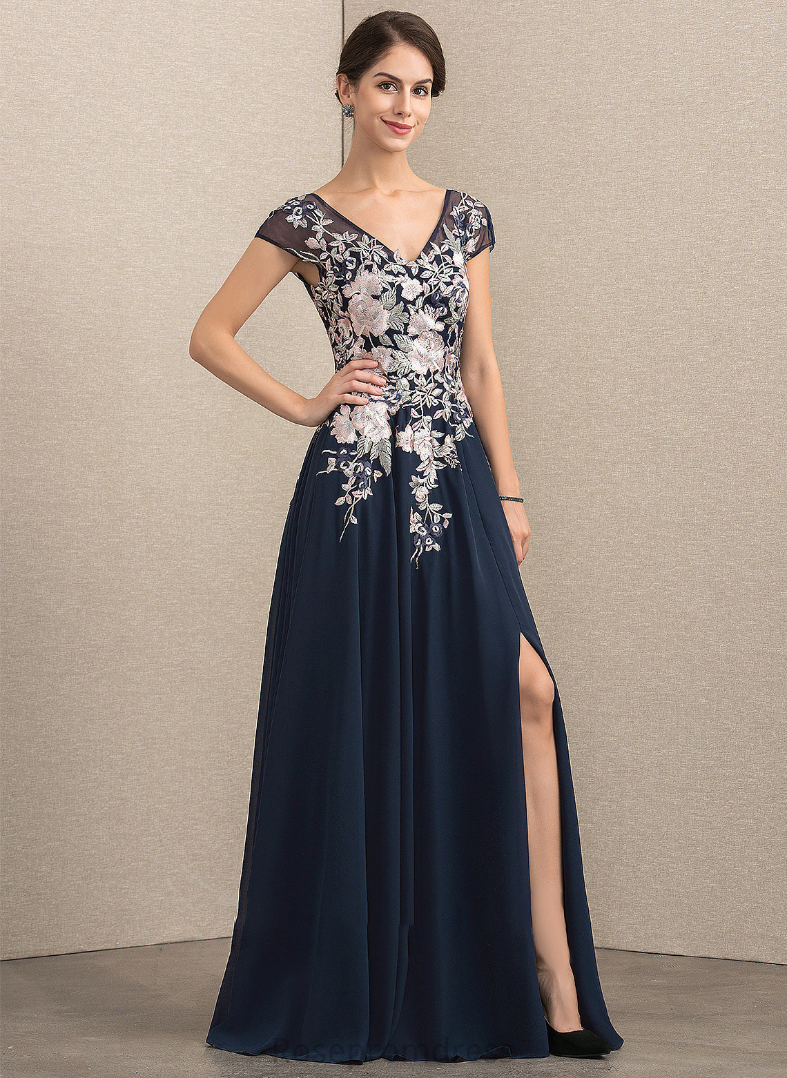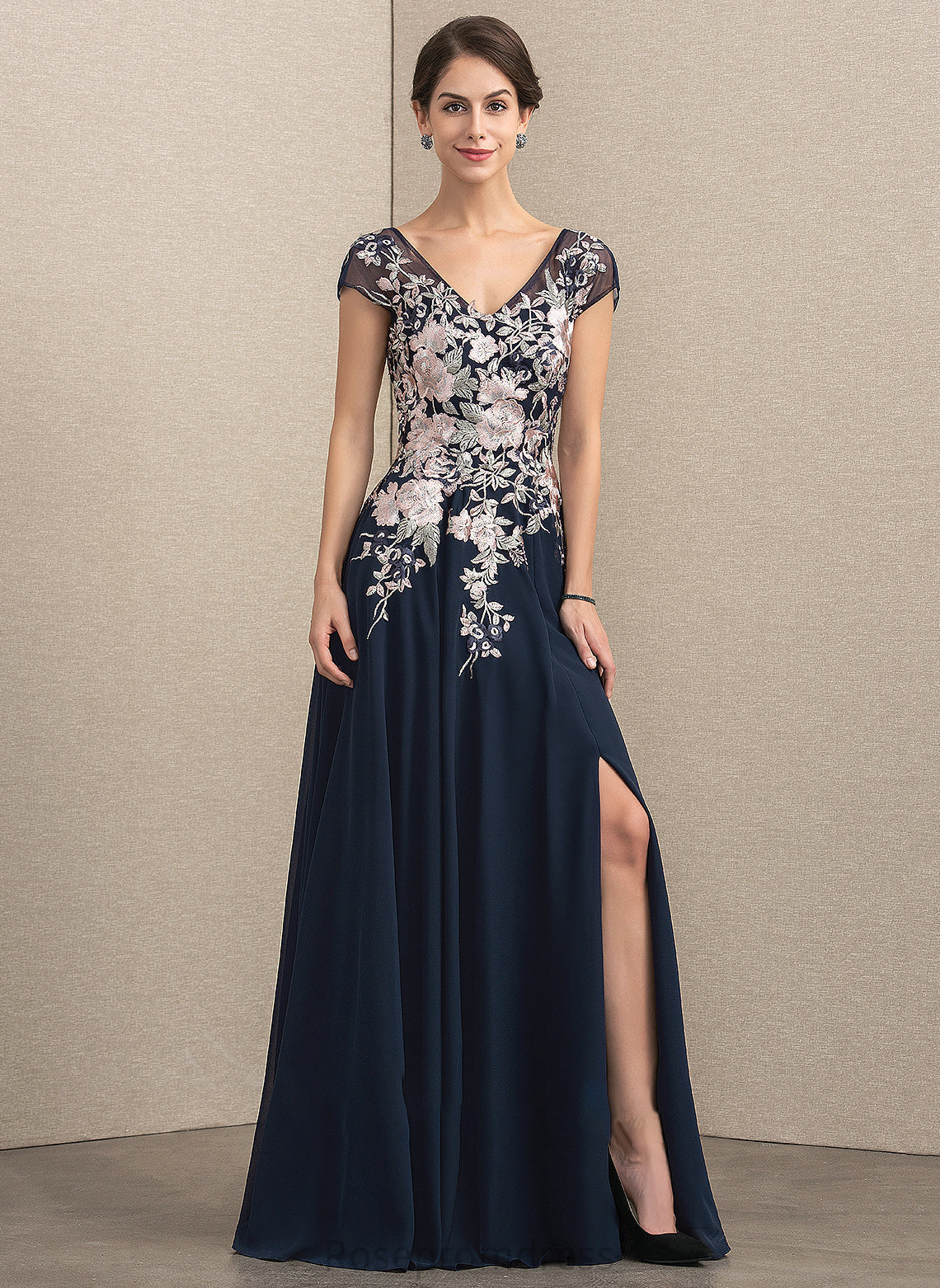 Mother With Floor-Length Split Mother of the Bride Dresses Lace Vicky Chiffon Bride of V-neck Front the Dress A-Line