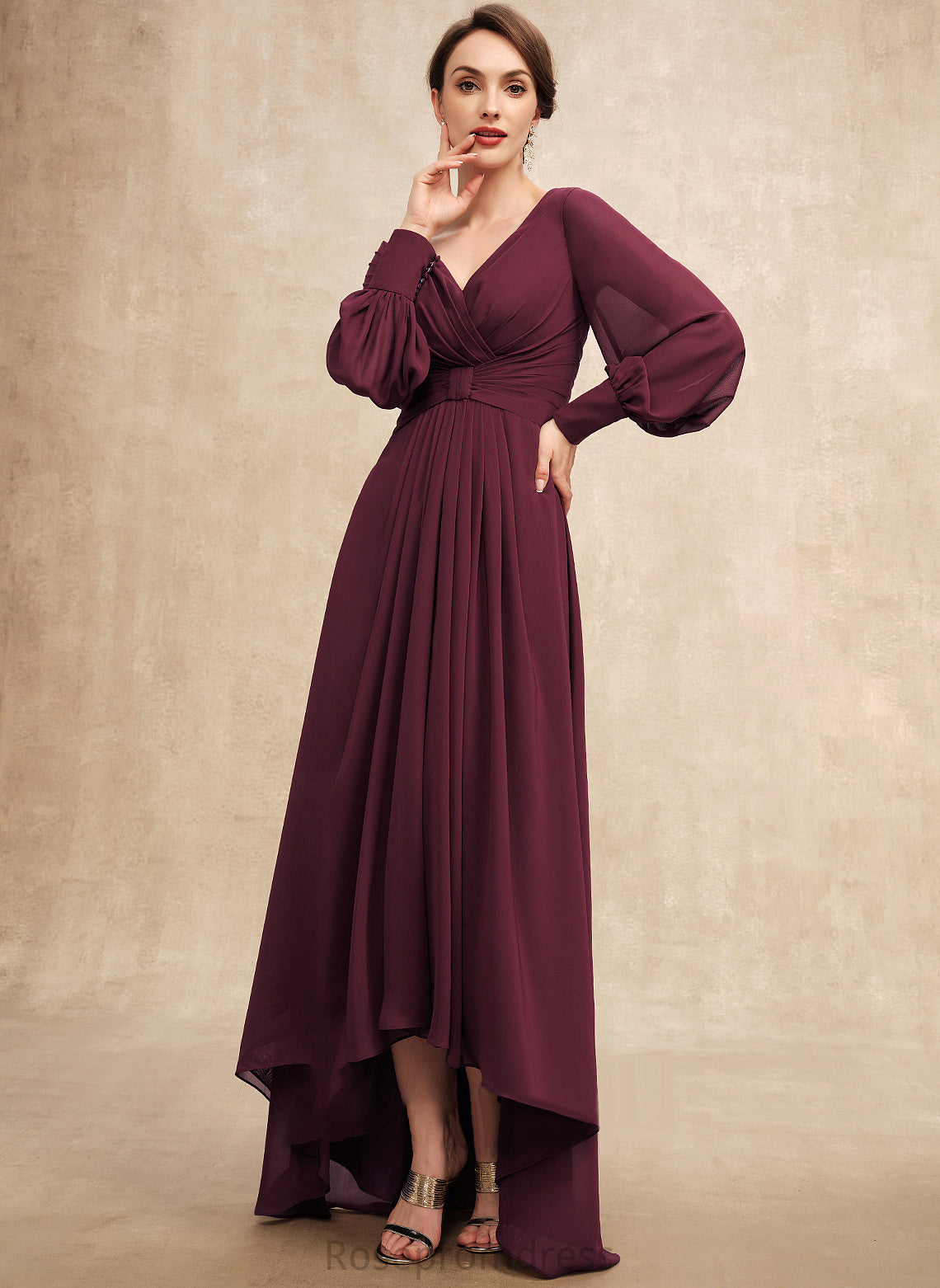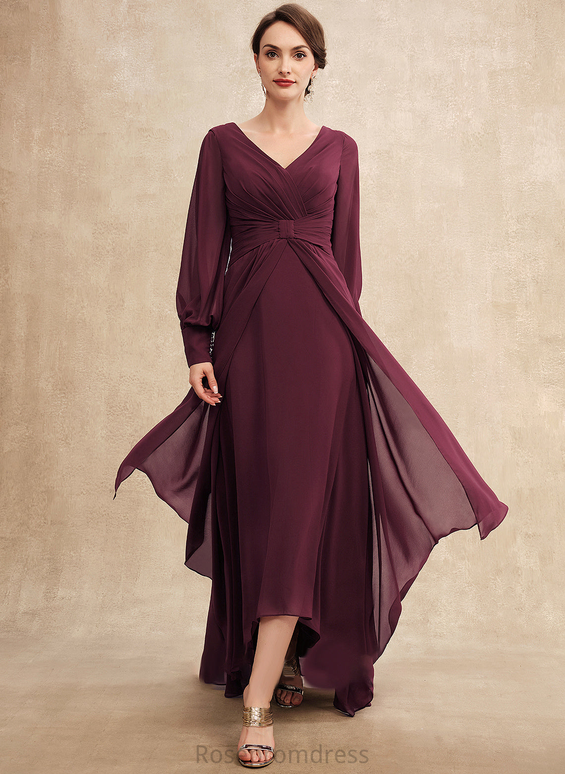Mother With Iris the Dress Ruffle Bride Mother of the Bride Dresses V-neck Chiffon A-Line Asymmetrical of