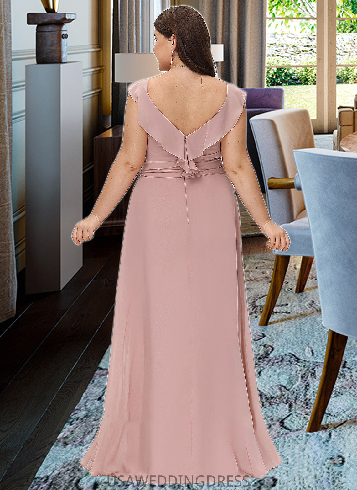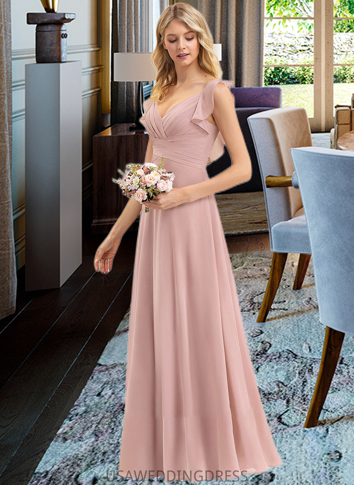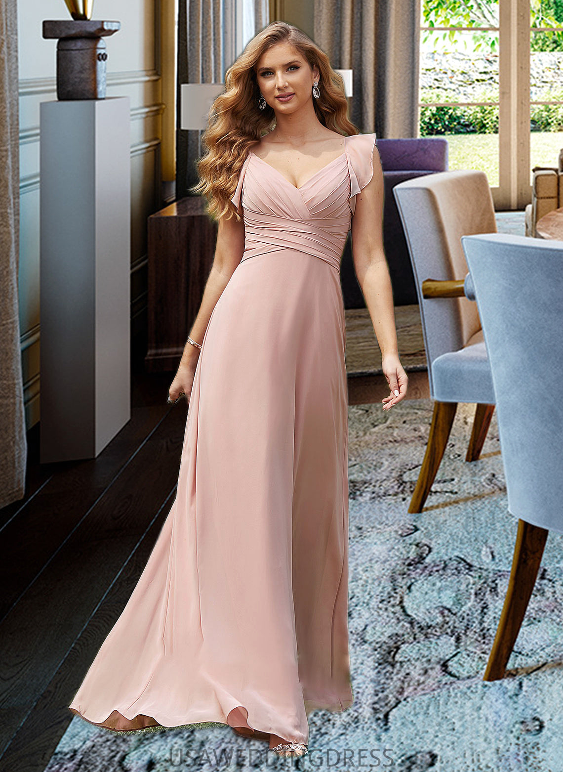 Naima Empire V-Neck Floor-Length Chiffon Bridesmaid Dress With Cascading Ruffles DSP0012790