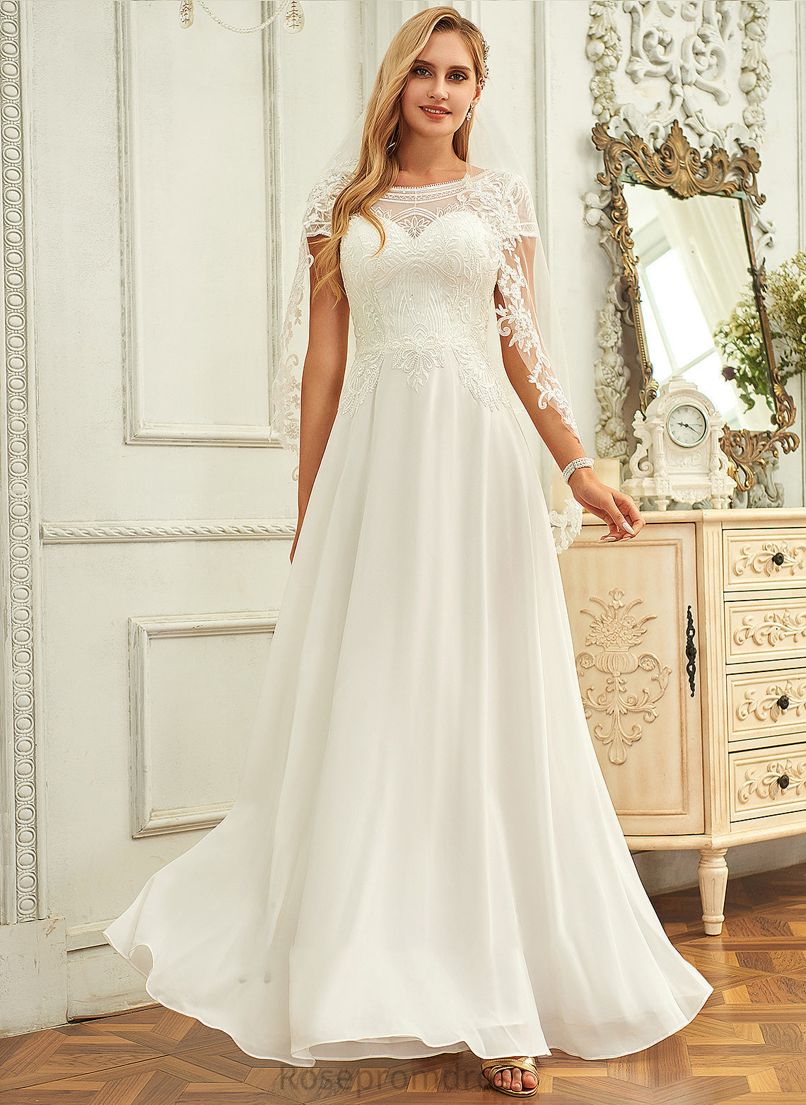 Naima Floor-Length Lace Chiffon Neck Sequins With Dress Wedding A-Line Wedding Dresses Scoop