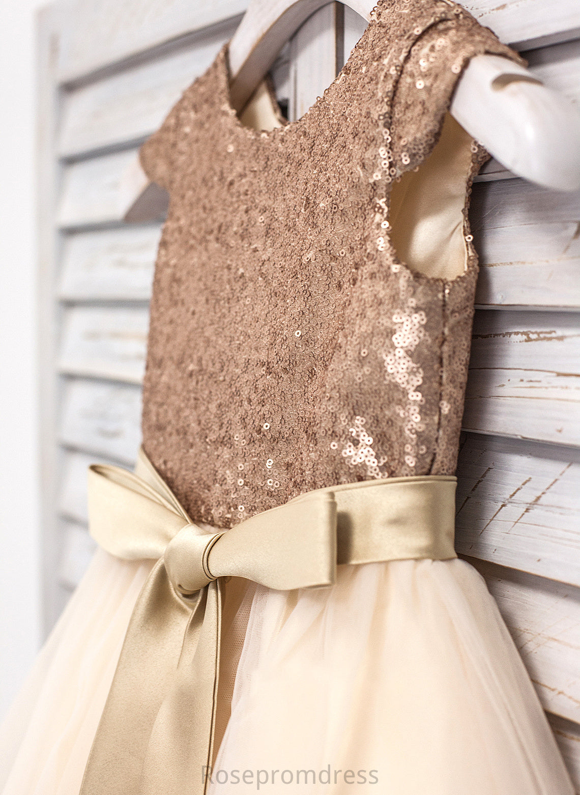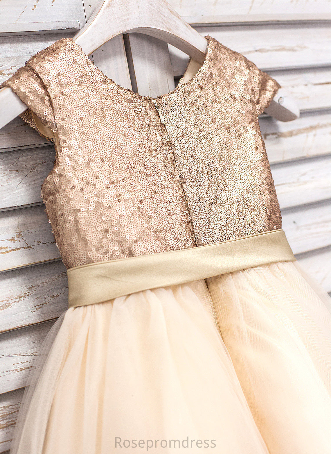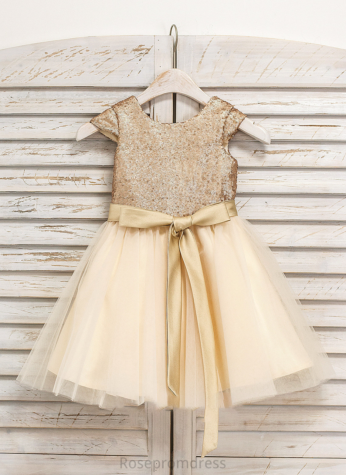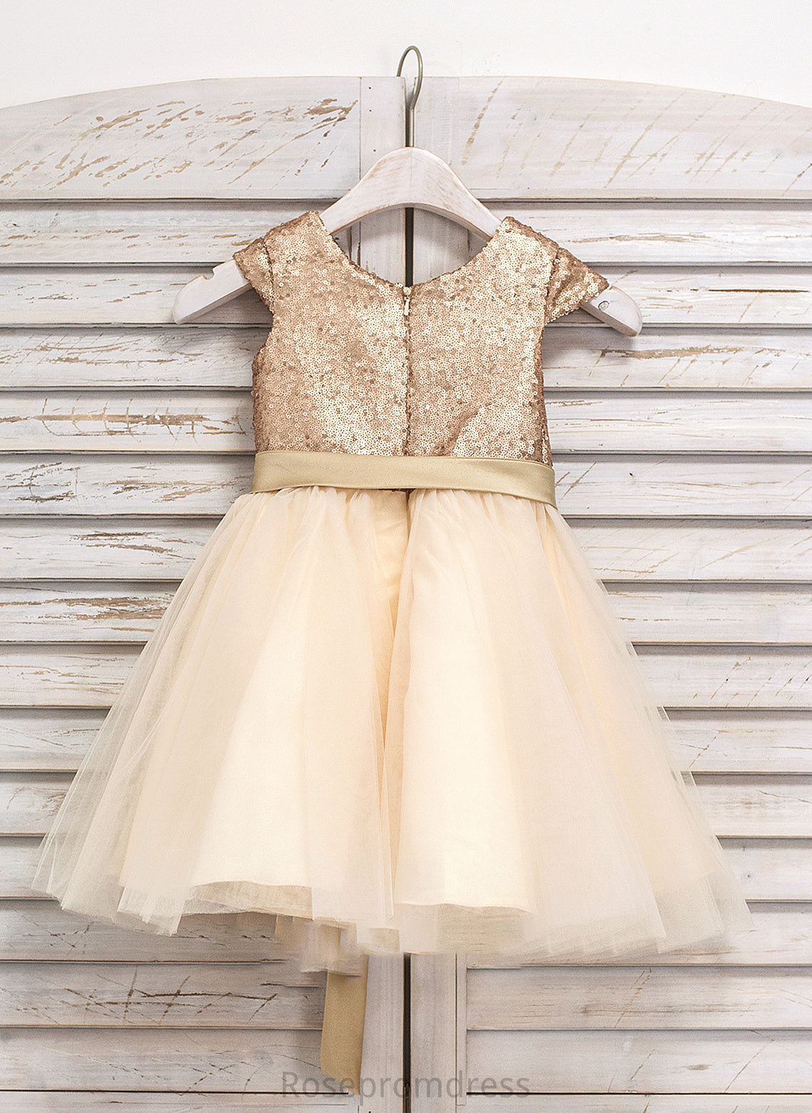 Naima Junior Bridesmaid Dresses With Sash Tulle Knee-Length A-Line Neck Scoop