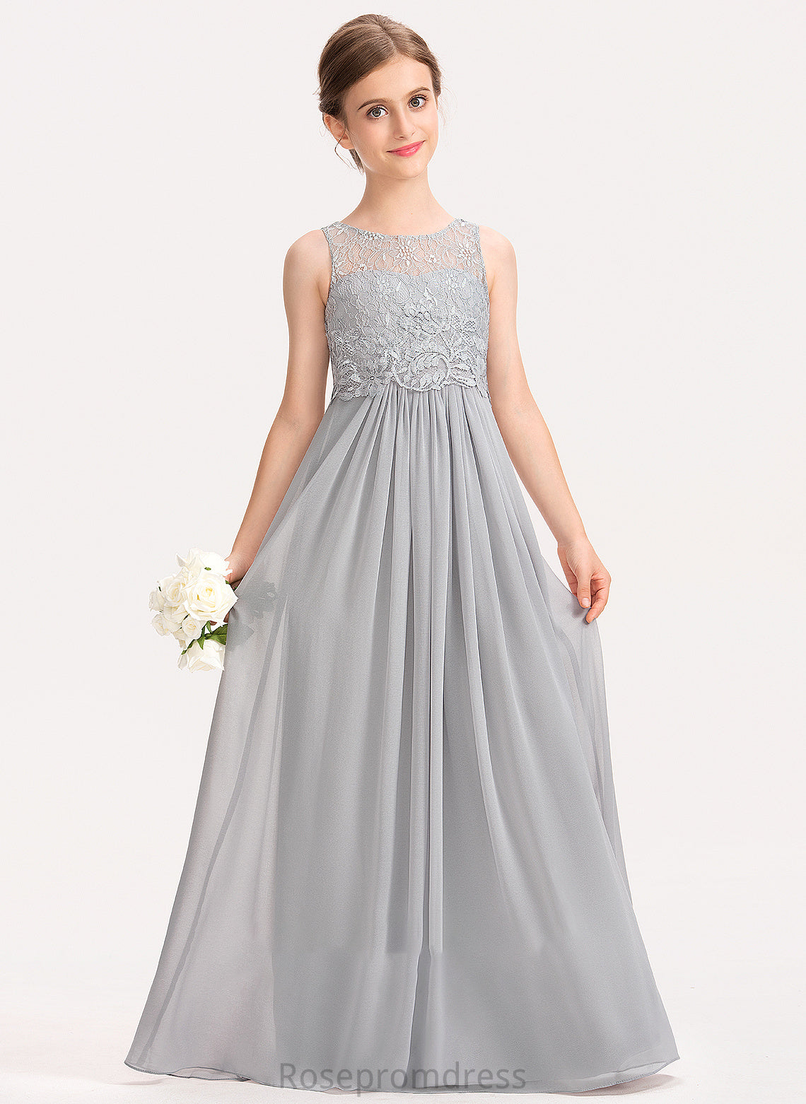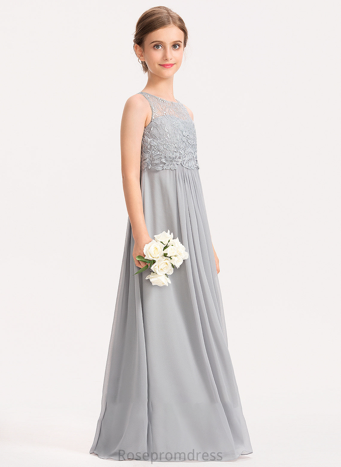 Natalya Lace Scoop Floor-Length Junior Bridesmaid Dresses Neck Chiffon A-Line