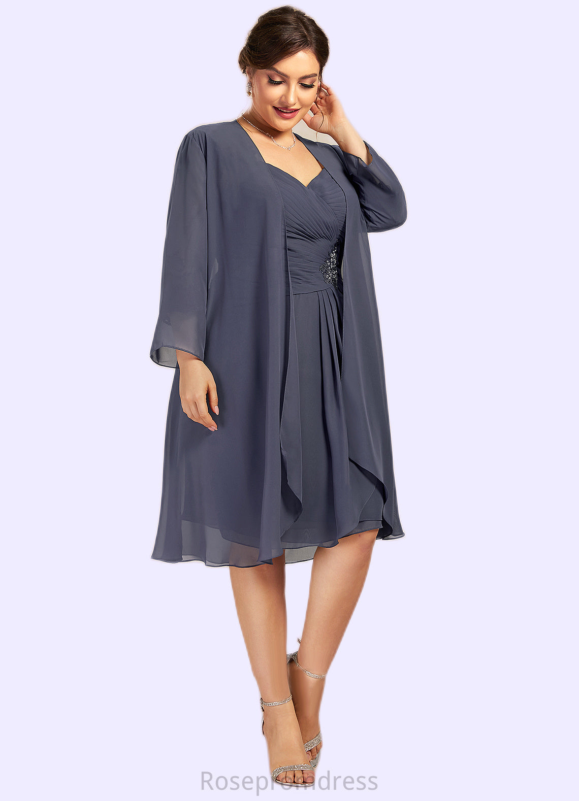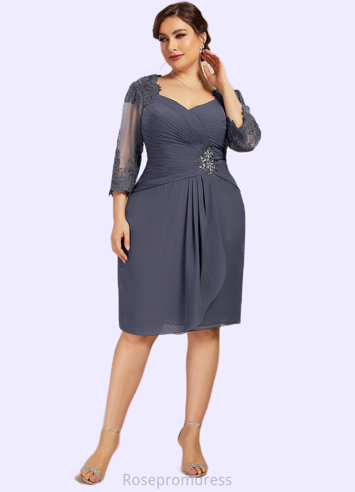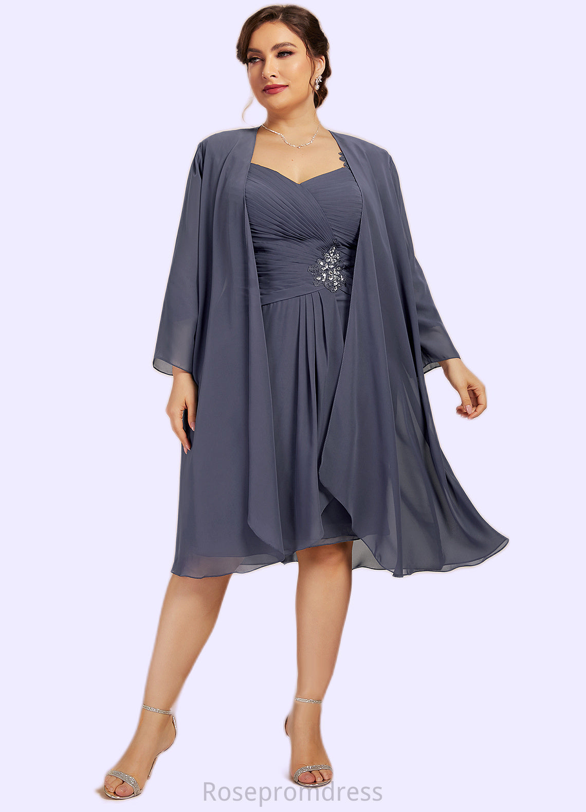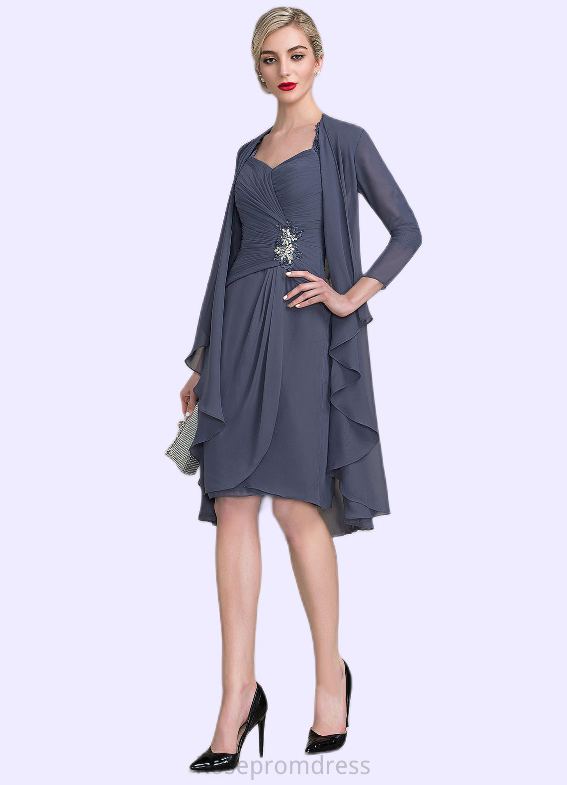 Natalya Sheath/Column Sweetheart Knee-Length Chiffon Mother of the Bride Dress With Ruffle Beading Appliques Lace Sequins SRSP0014572