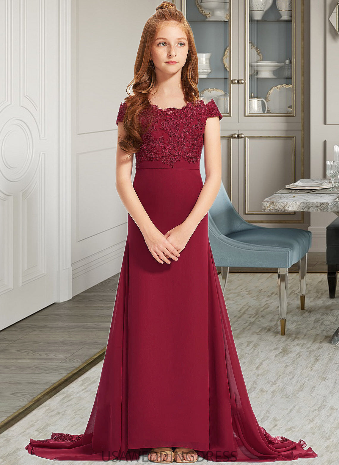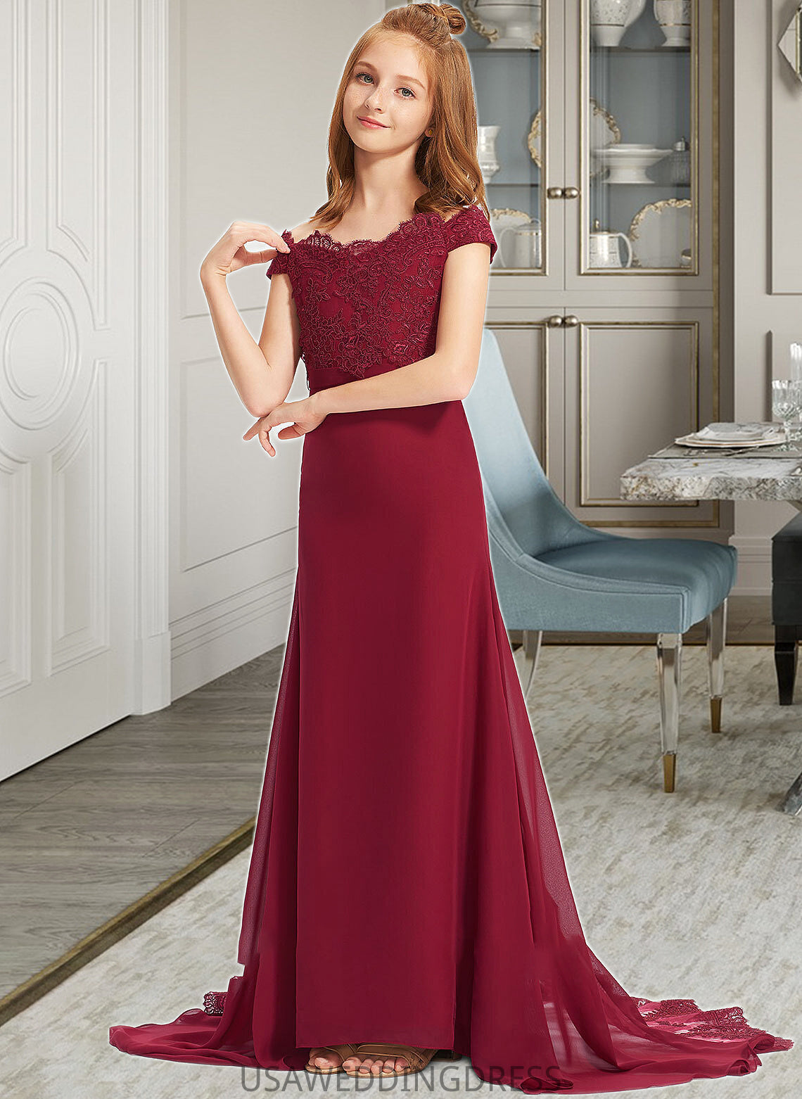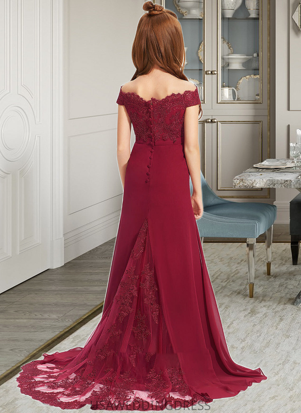 Natasha Trumpet/Mermaid Off-the-Shoulder Court Train Chiffon Lace Junior Bridesmaid Dress DSP0013330
