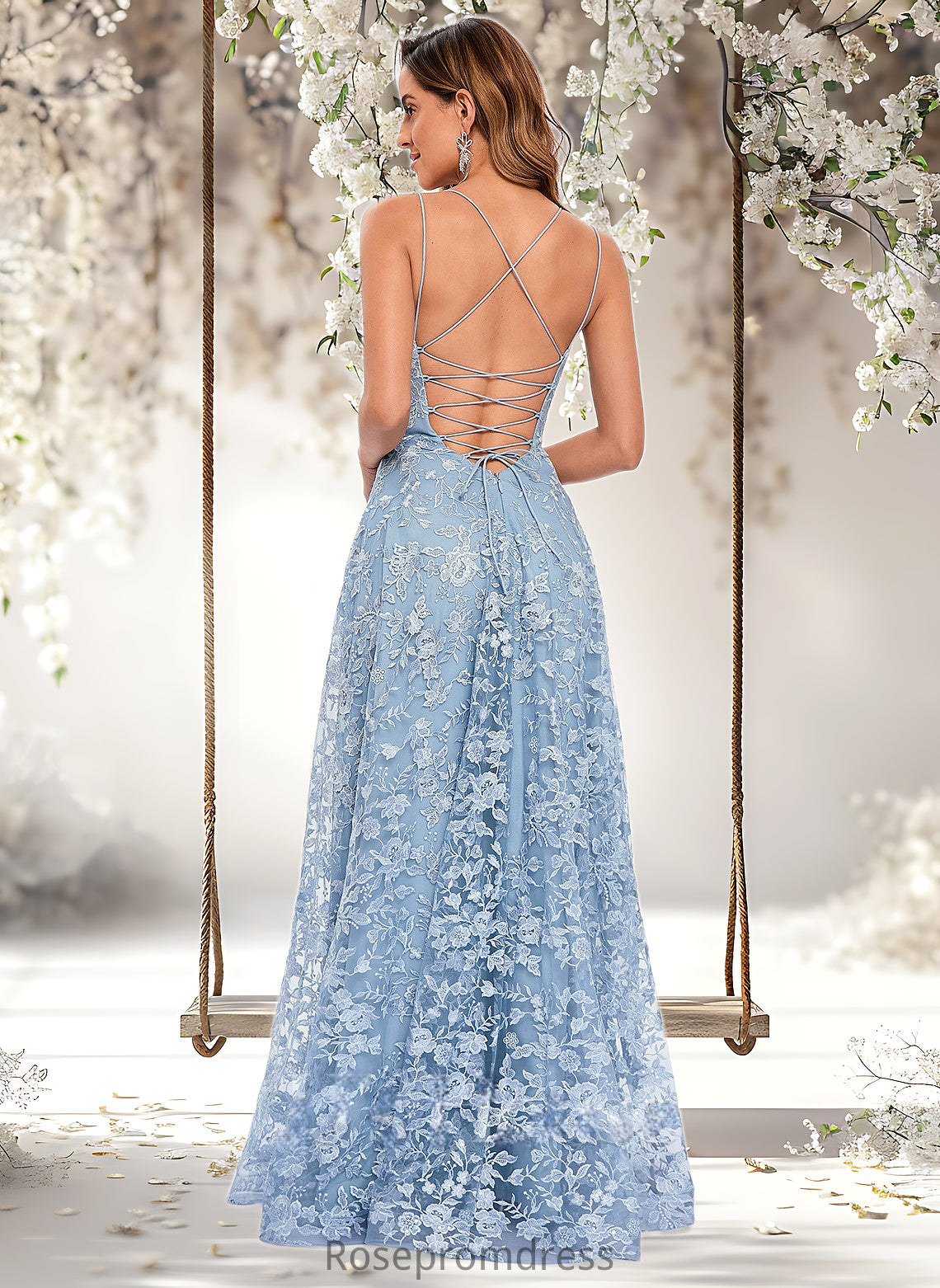 Nathaly A-line Scoop Floor-Length Lace Floral Prom Dresses DSP0025847